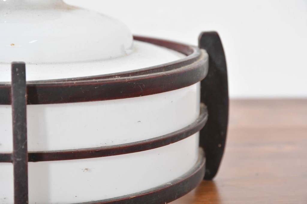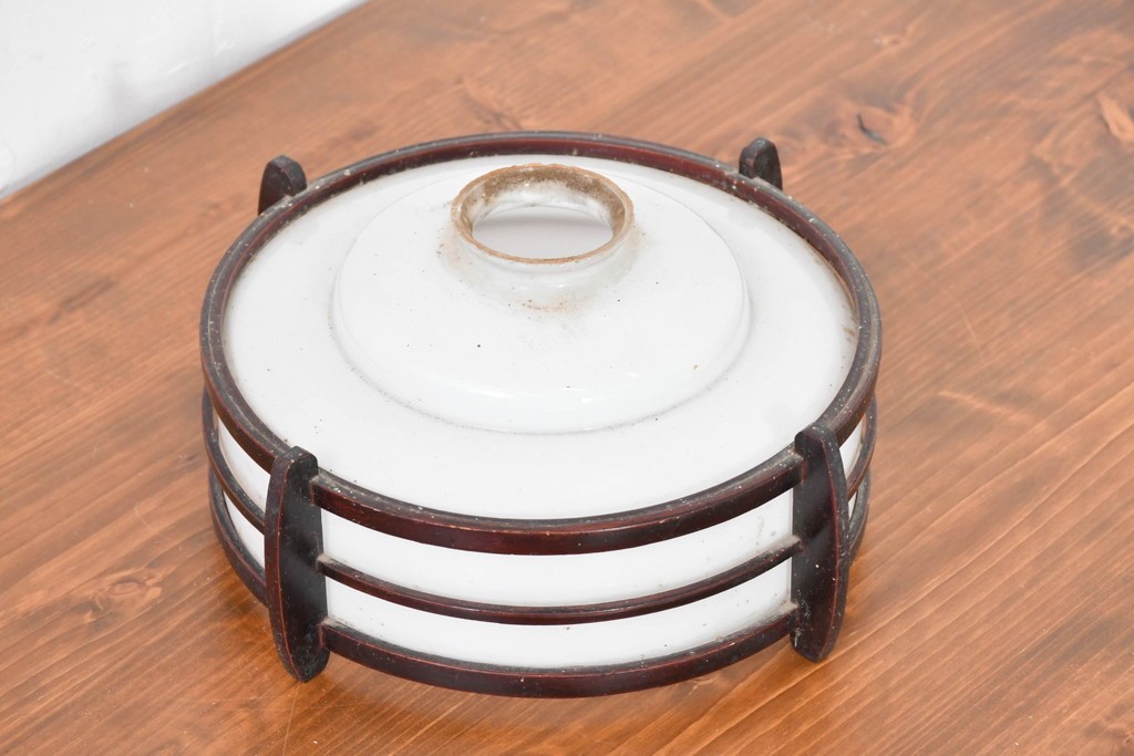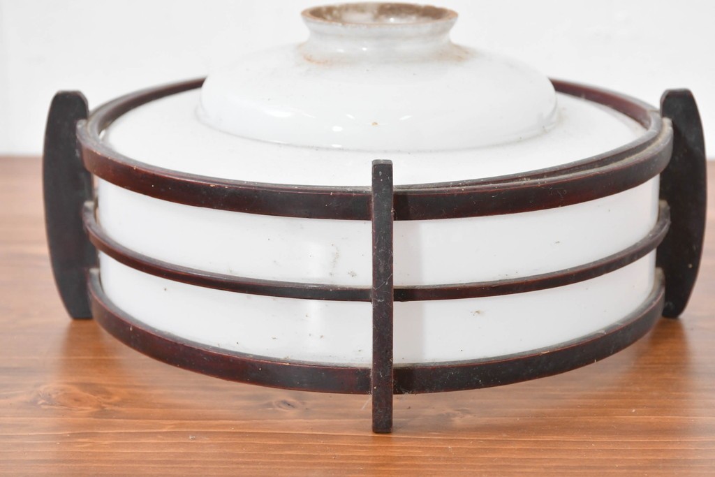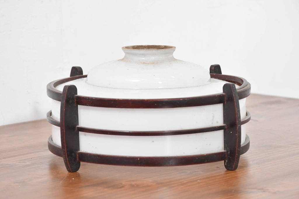 和製アンティークならではの落ち着きと味わいを感じさせる、木製装飾のペンダントライトです。