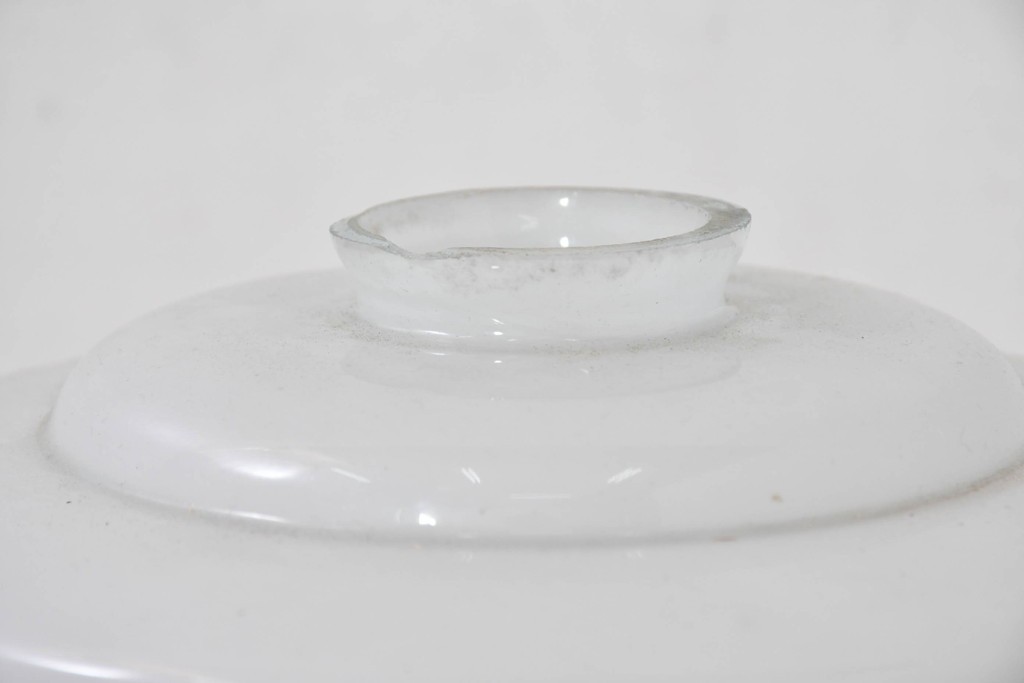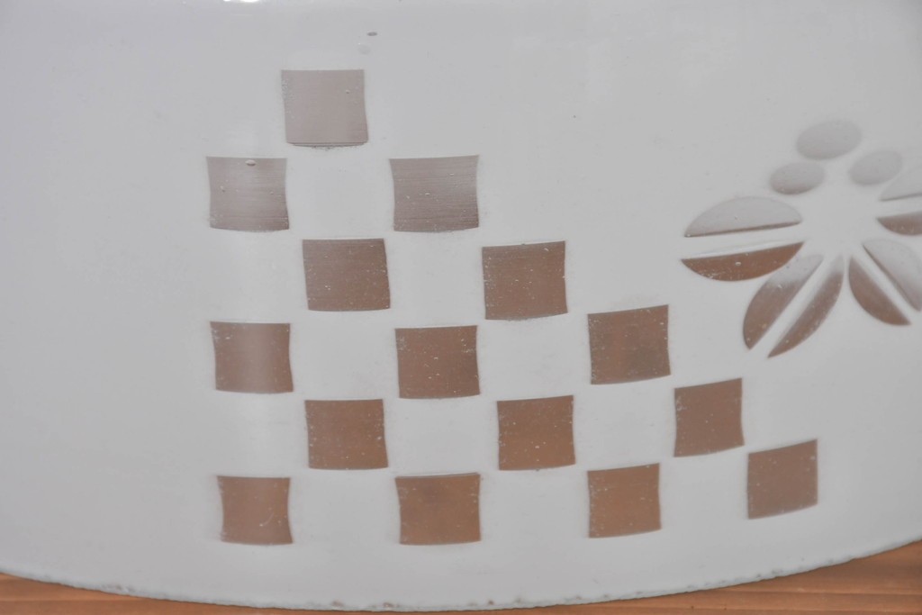 柔らかな白ガラスに切子細工が施された、上品な雰囲気のペンダントライトです。