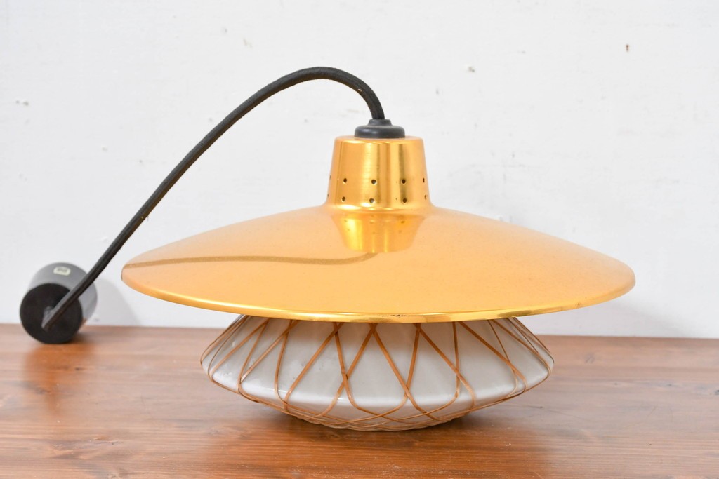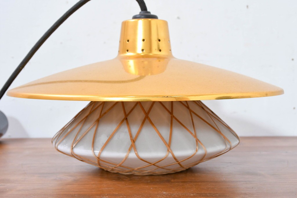 当時らしい意匠の工夫が感じられるつくりで、照明としての実用性とともにインテリア性も楽しめる一点です。