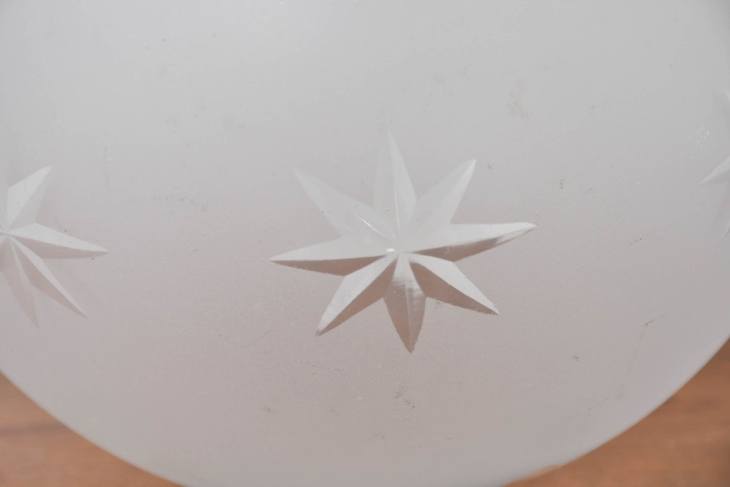 ガラス表面には美しい星模様のカットが施され、点灯時には光が繊細に反射し、幻想的な雰囲気を演出します。