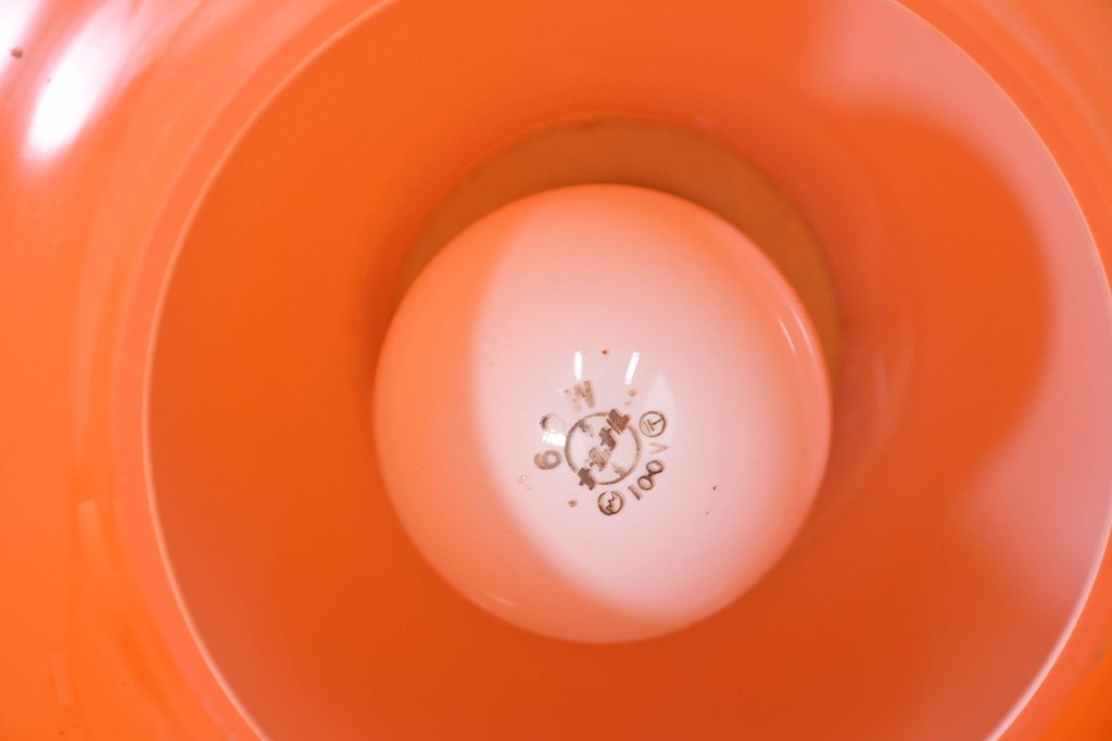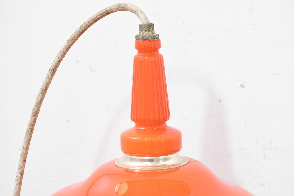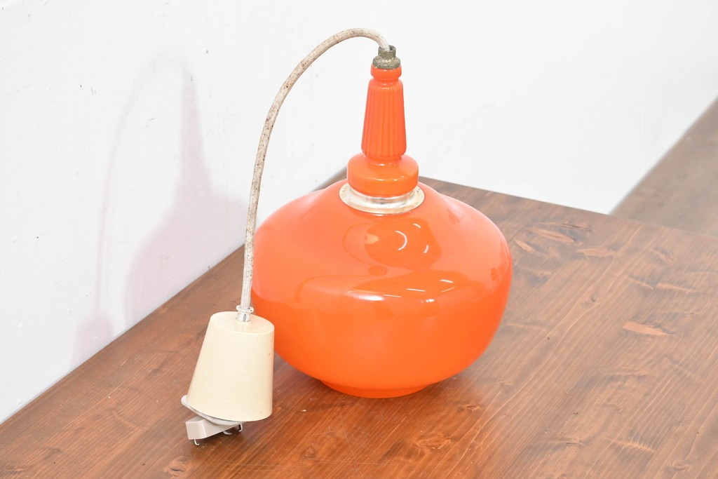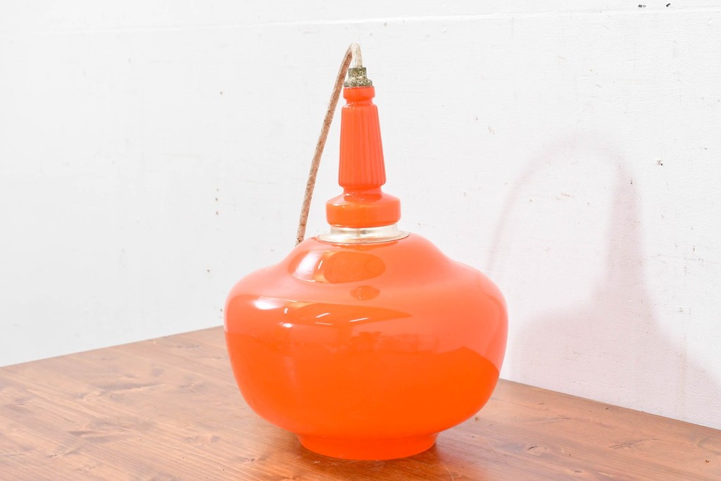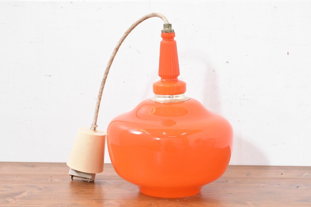 鮮やかなオレンジガラスシェードが印象的な和製ヴィンテージの天井照明です。
