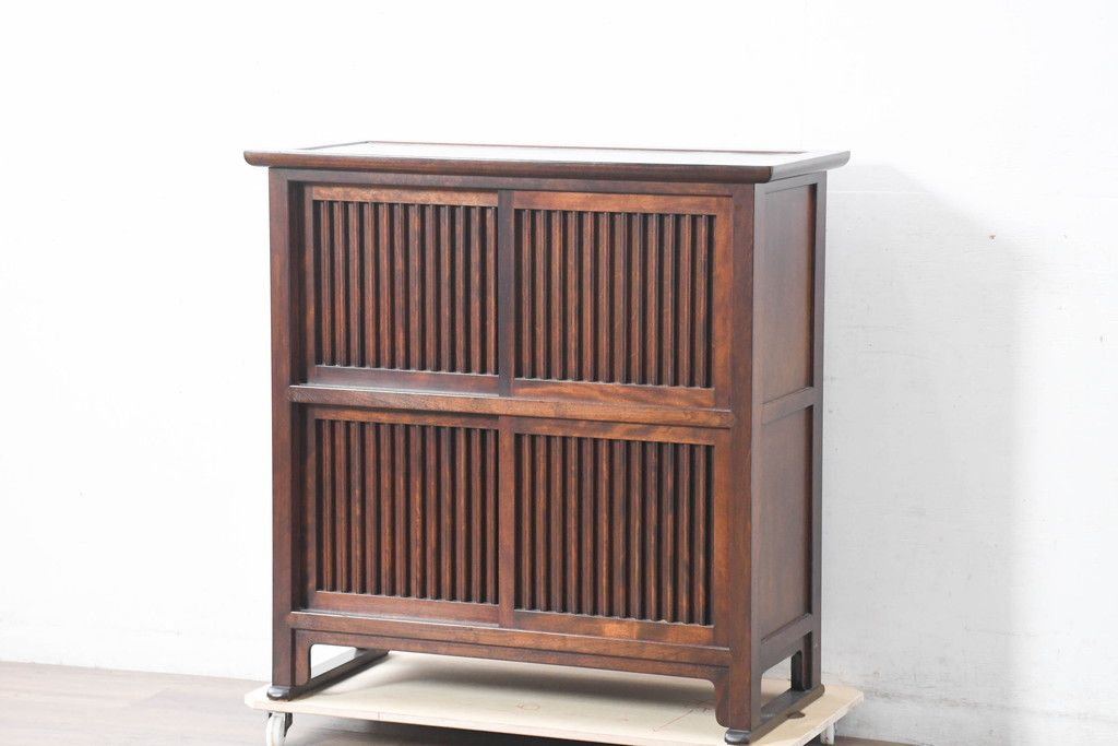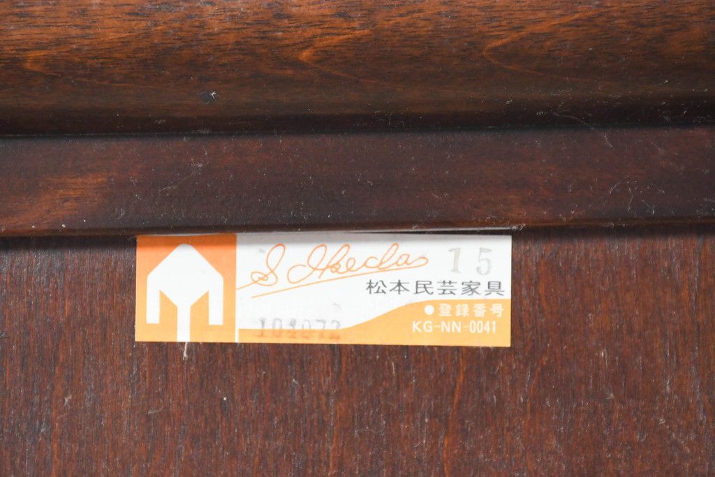 中古 美品 松本民芸家具 A型舞良茶タンス 洗練された佇まいの収納棚(下駄箱、靴箱、本箱、戸棚、食器棚、サイドボード)(R-084125)です。