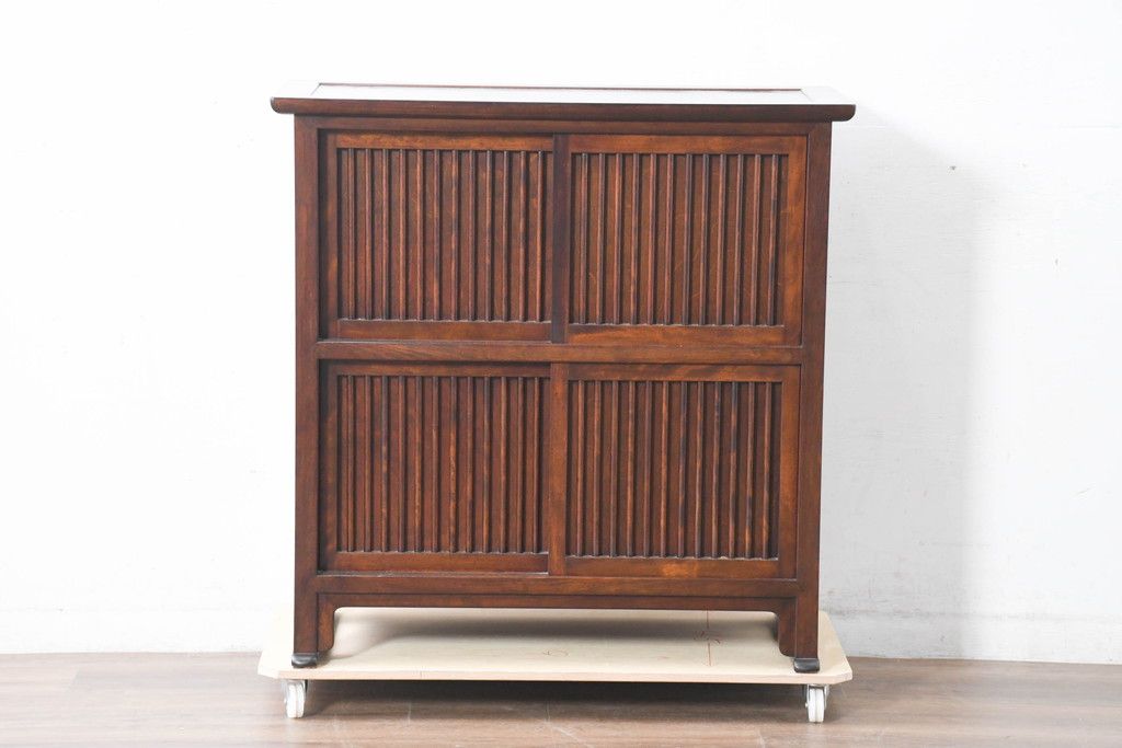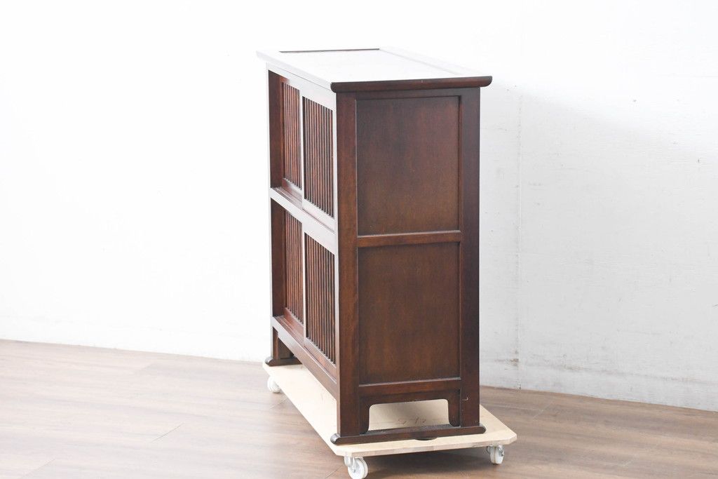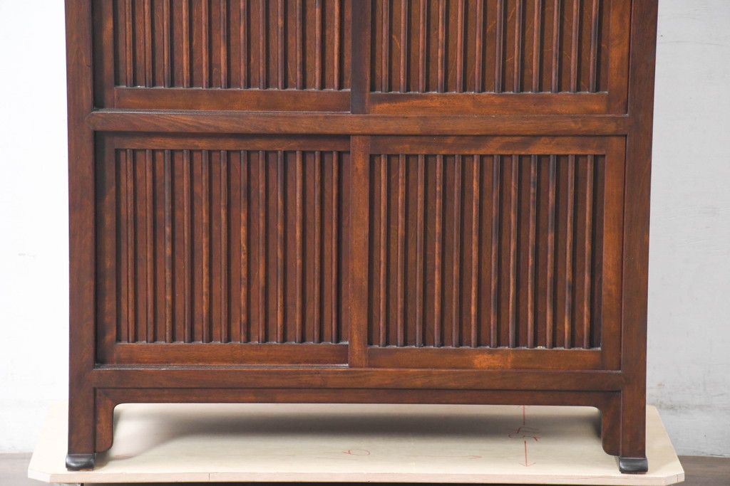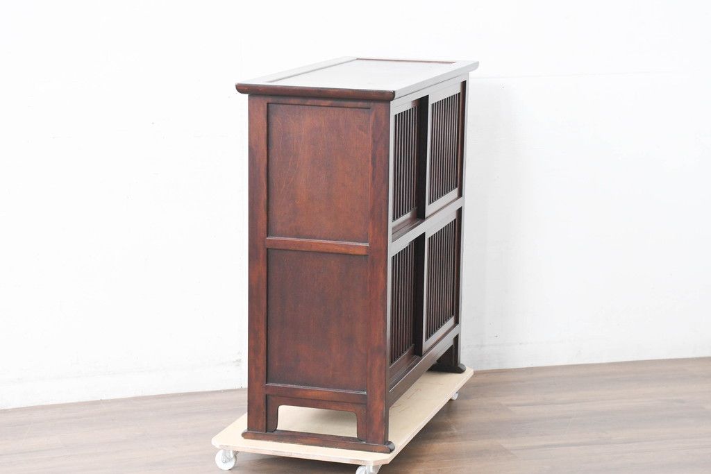 中古 美品 松本民芸家具 A型舞良茶タンス 洗練された佇まいの収納棚(下駄箱、靴箱、本箱、戸棚、食器棚、サイドボード)(R-084125)