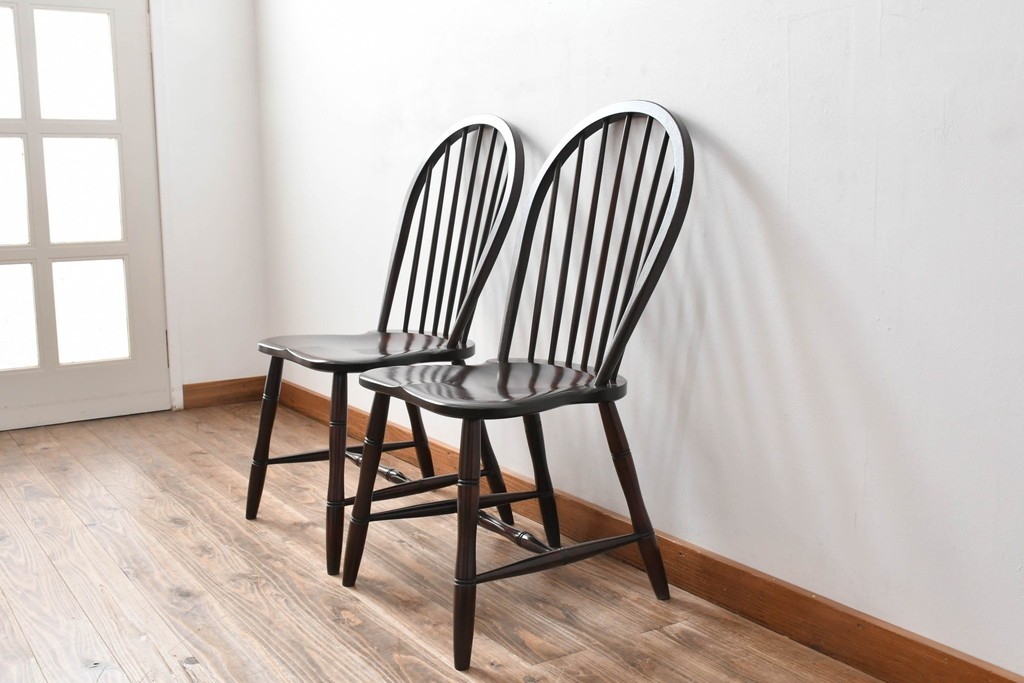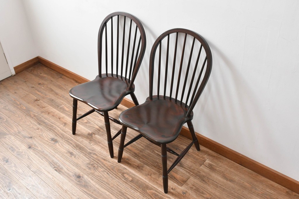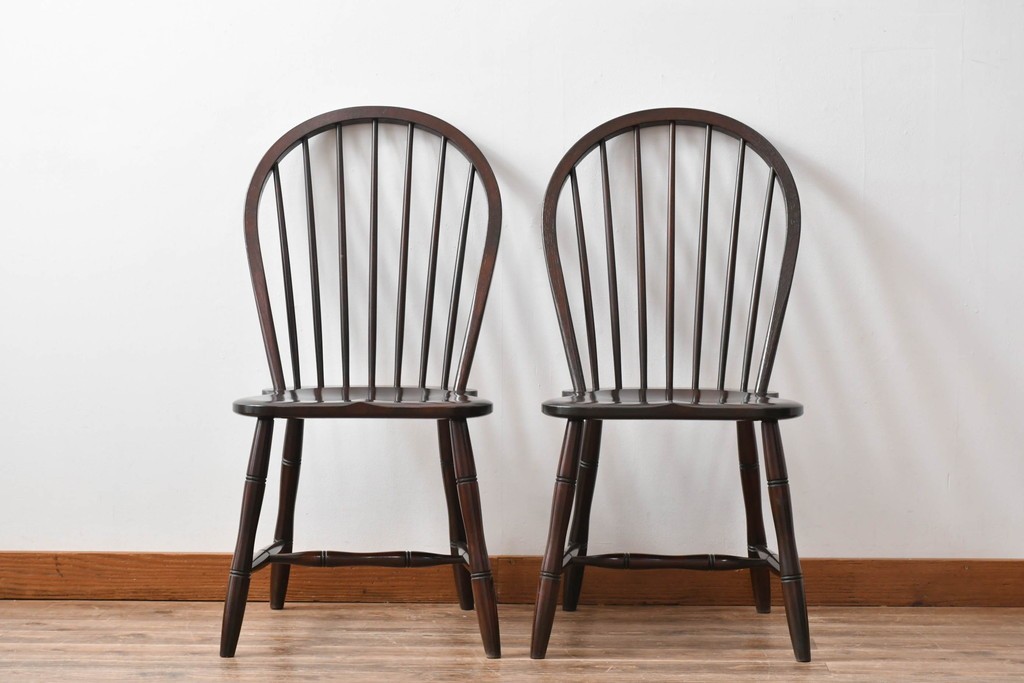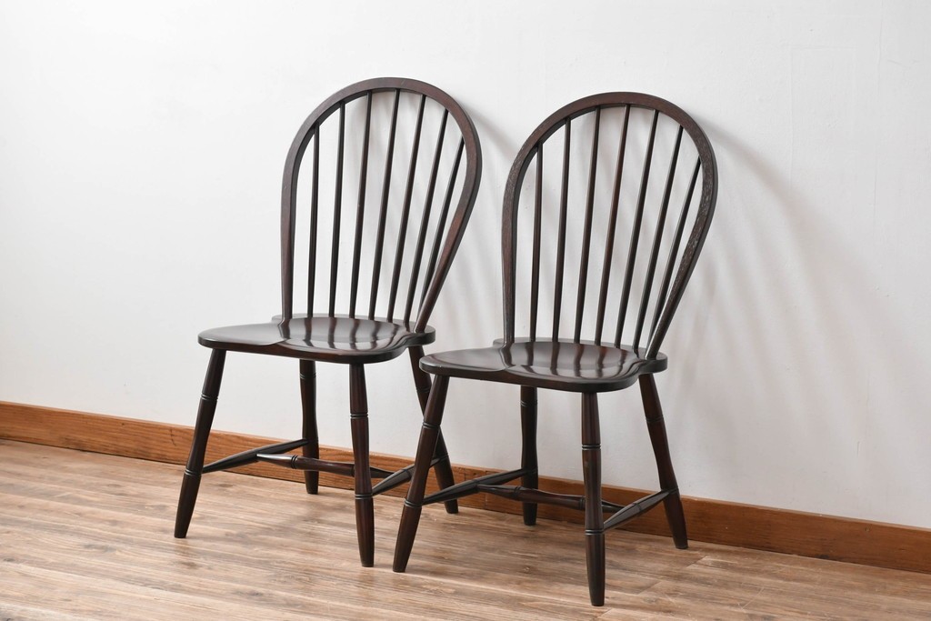 椅子・ベンチ> ウィンザーチェア > 中古 美品 松本民芸家具 シックな佇まいが魅力的な#72型・リーチチェア2脚セット 定価約196000円相当 (R-084128)
