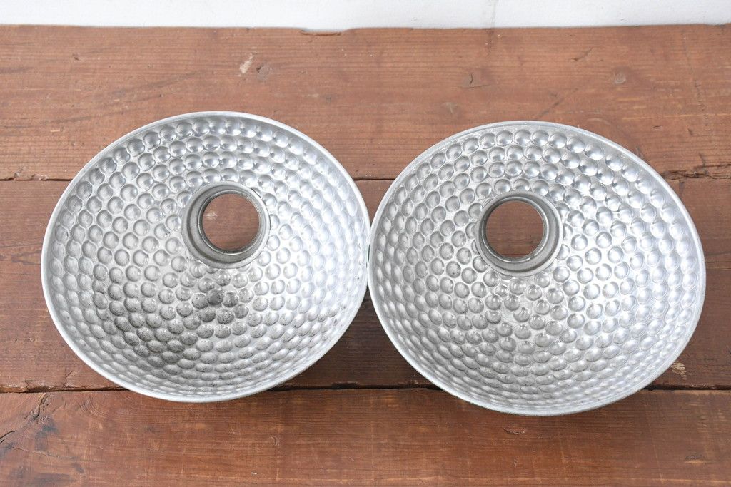 照明・ランプ> ペンダントライト > 《引っ掛けシーリング式ペンダントライト加工費込み》 和製アンティーク 個性的なデザインで存在感抜群!アルミ製のランプシェード2個セット(ペンダントライト、吊り下げ照明、天井照明、電笠)(R-084136)