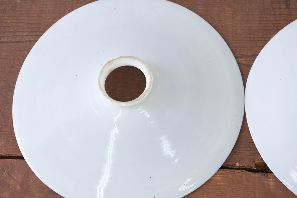 照明・ランプ> ペンダントライト > 《引っ掛けシーリング式ペンダントライト加工費込み》 和製アンティーク シンプルなフォルムで使いやすい平笠照明2個セット(天井照明、吊り下げ照明、ペンダントライト、シェード、電笠)(R-084144)
