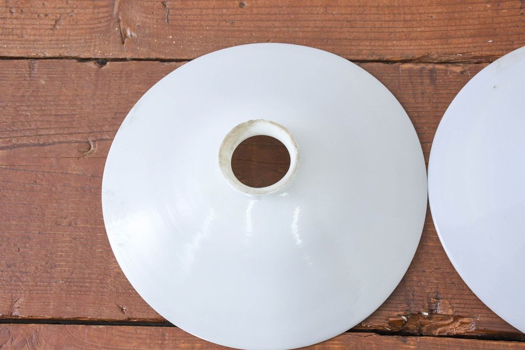 照明・ランプ> ペンダントライト > 《引っ掛けシーリング式ペンダントライト加工費込み》 和製アンティーク シンプルなフォルムで使いやすい平笠照明2個セット(天井照明、吊り下げ照明、ペンダントライト、シェード、電笠)(R-084149)