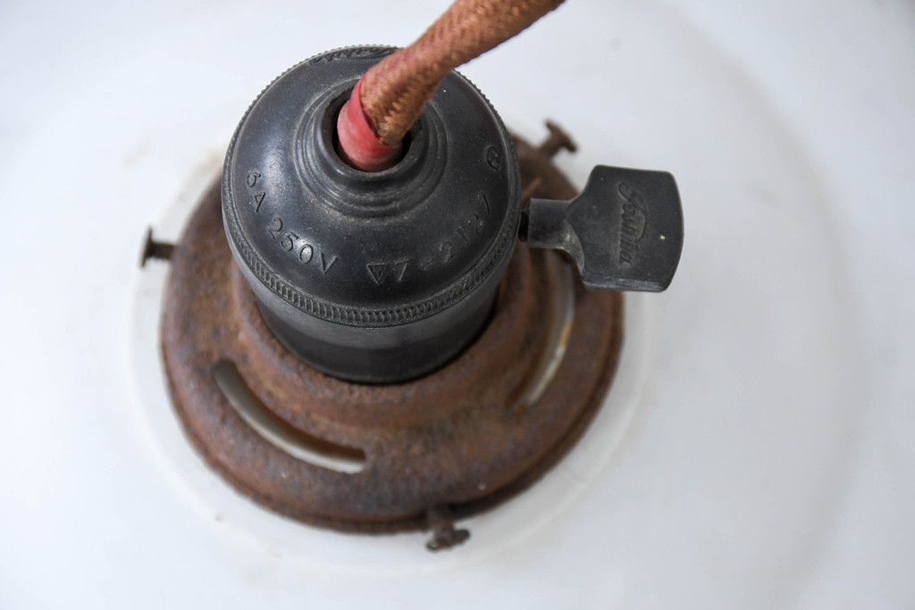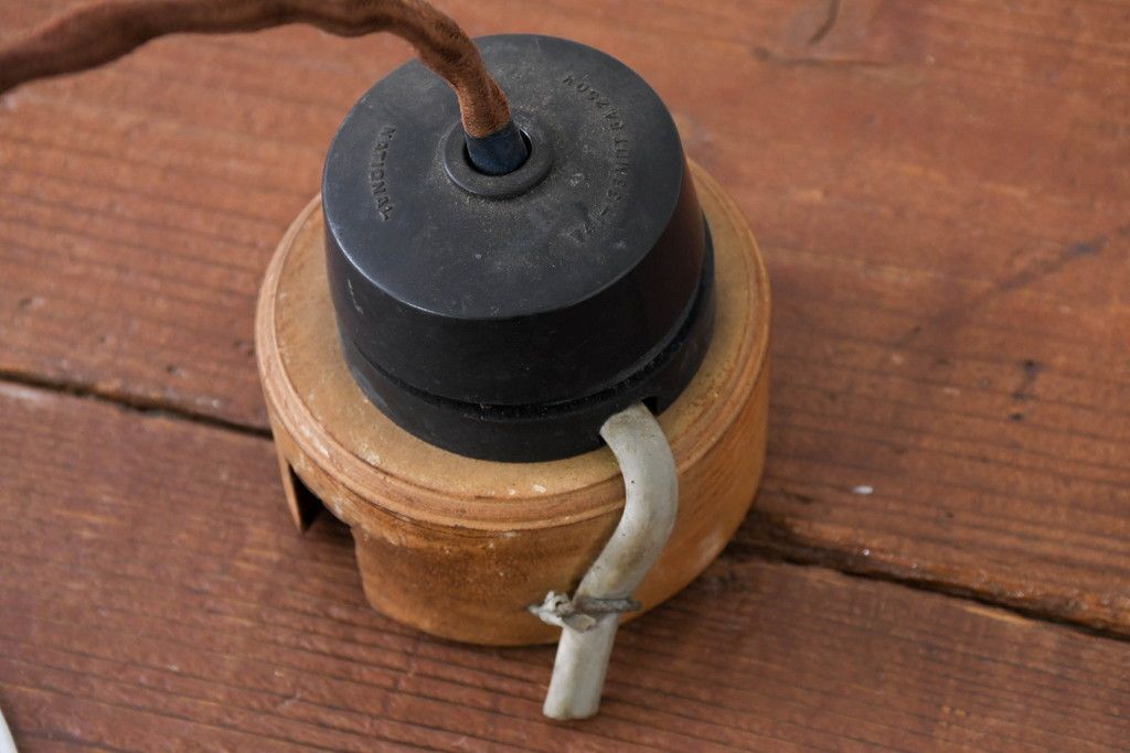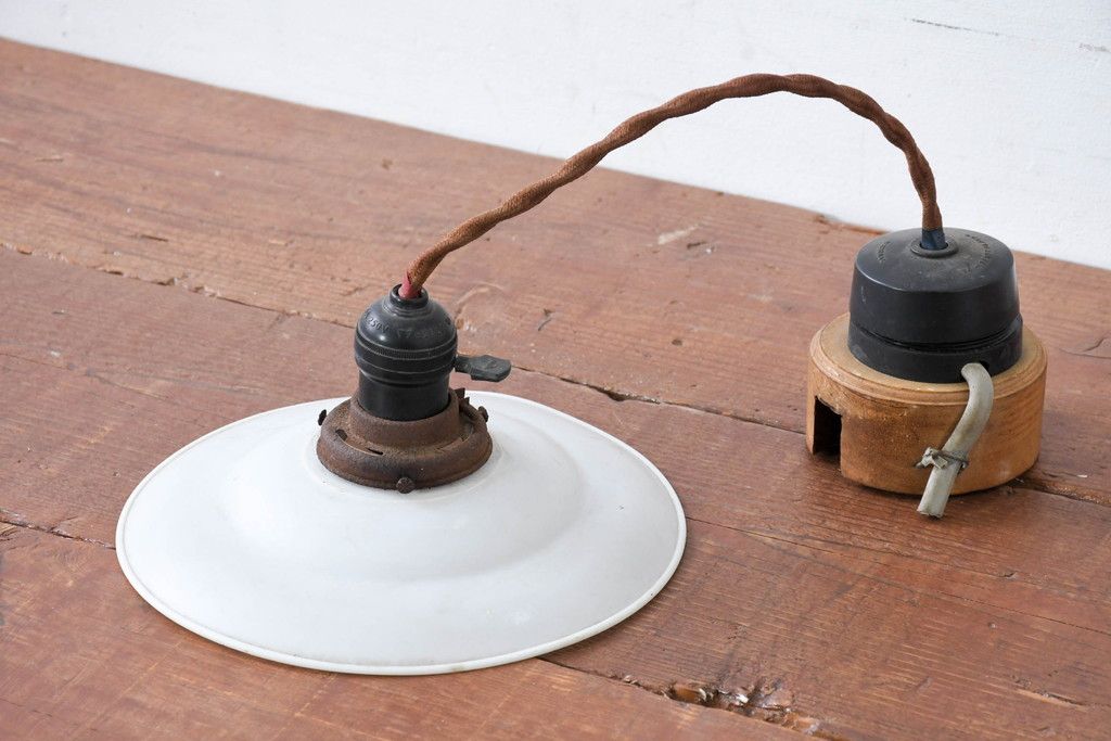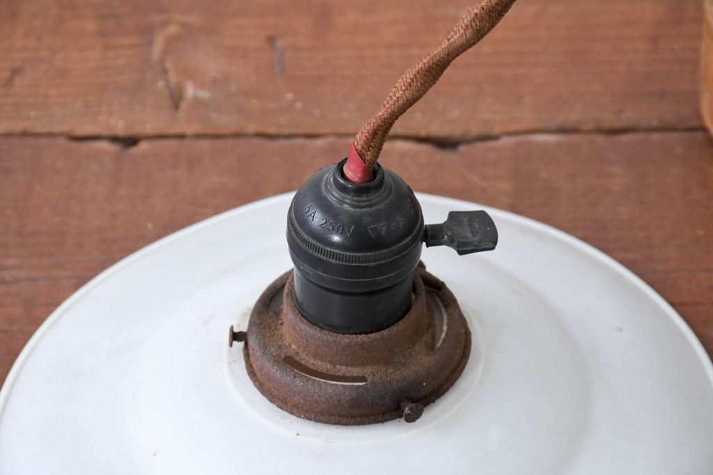 リペアの際に引っ掛けシーリング式に仕上げます。 コードと取付具の色は電笠の形状に合わせた当店指定のものとなります。 コードの長さは商品により異なります(400mm前後)。コードと取付具の色や長さにご希望がございましたら、お気軽にご相談ください。
