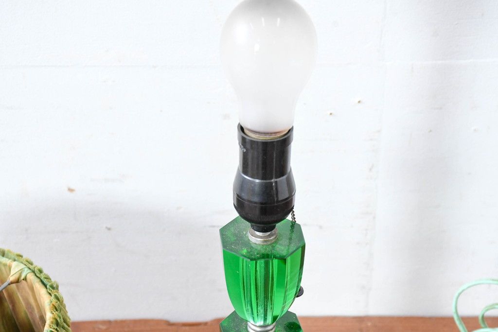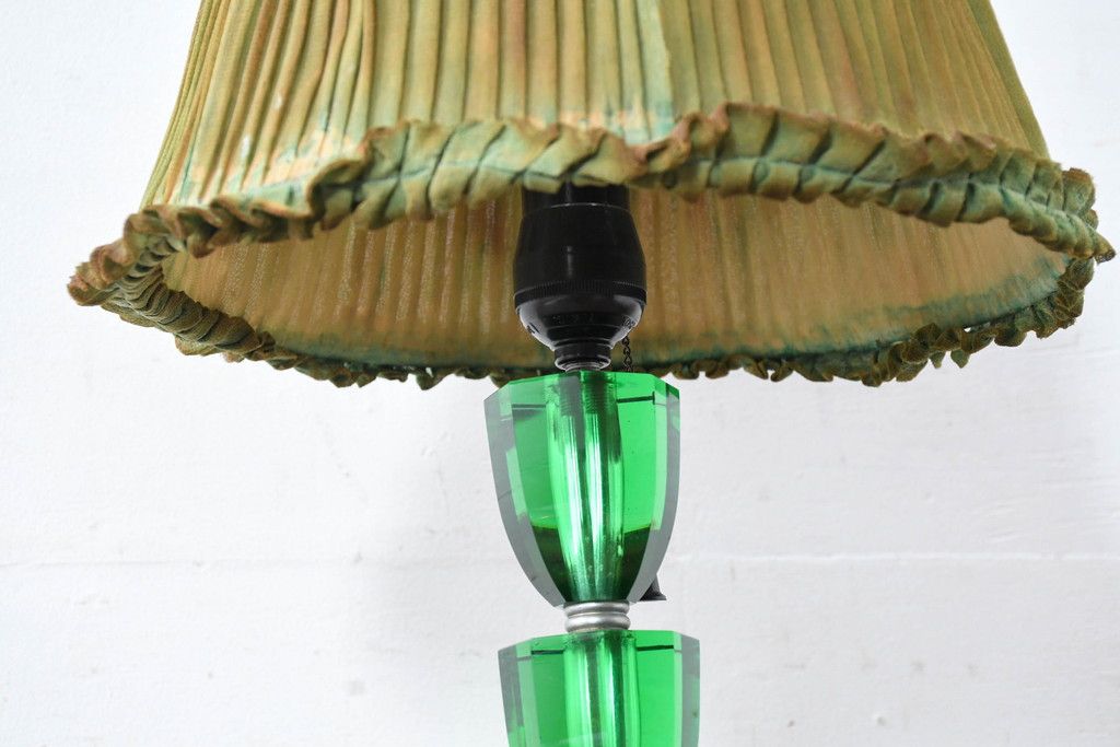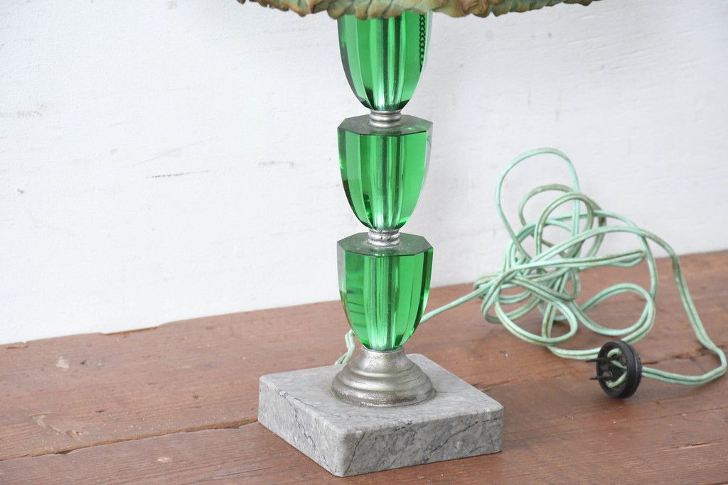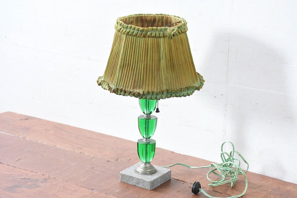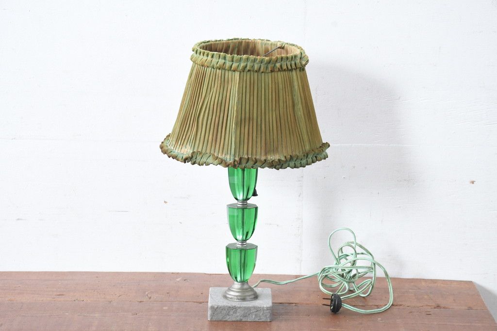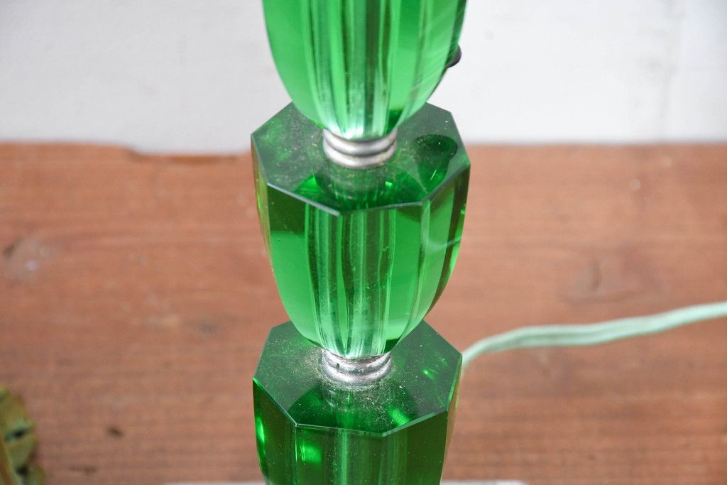和製ビンテージ 透明感あるグリーンガラスが映える!ノスタルジックな雰囲気のテーブルスタンド(テーブルランプ、テーブル照明、テーブルライト、デスクライト、デスクスタンド、卓上照明、ヴィンテージ)(R-084166)