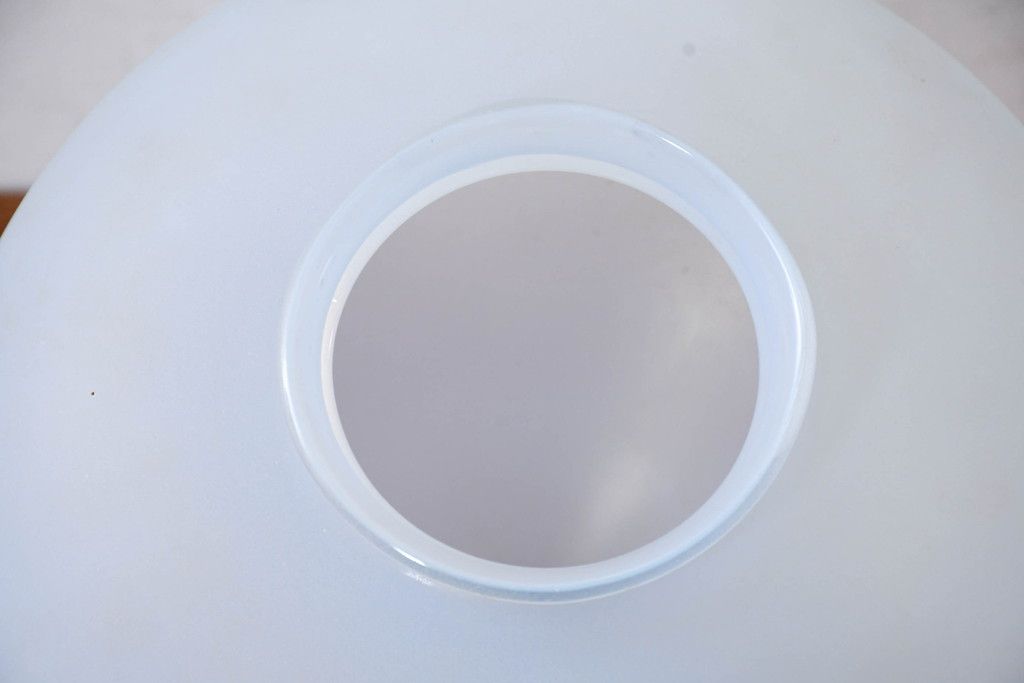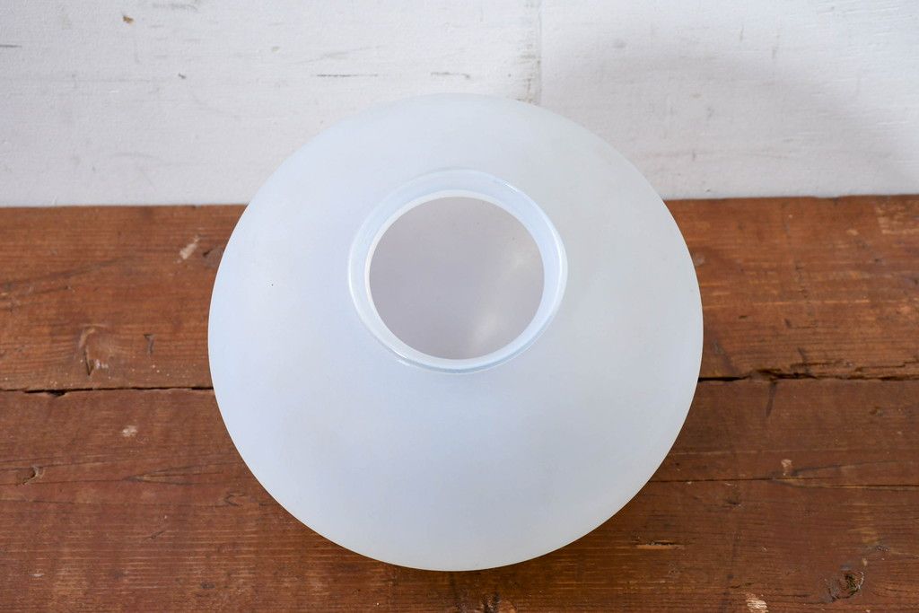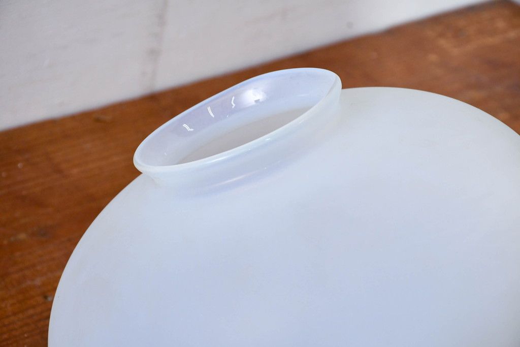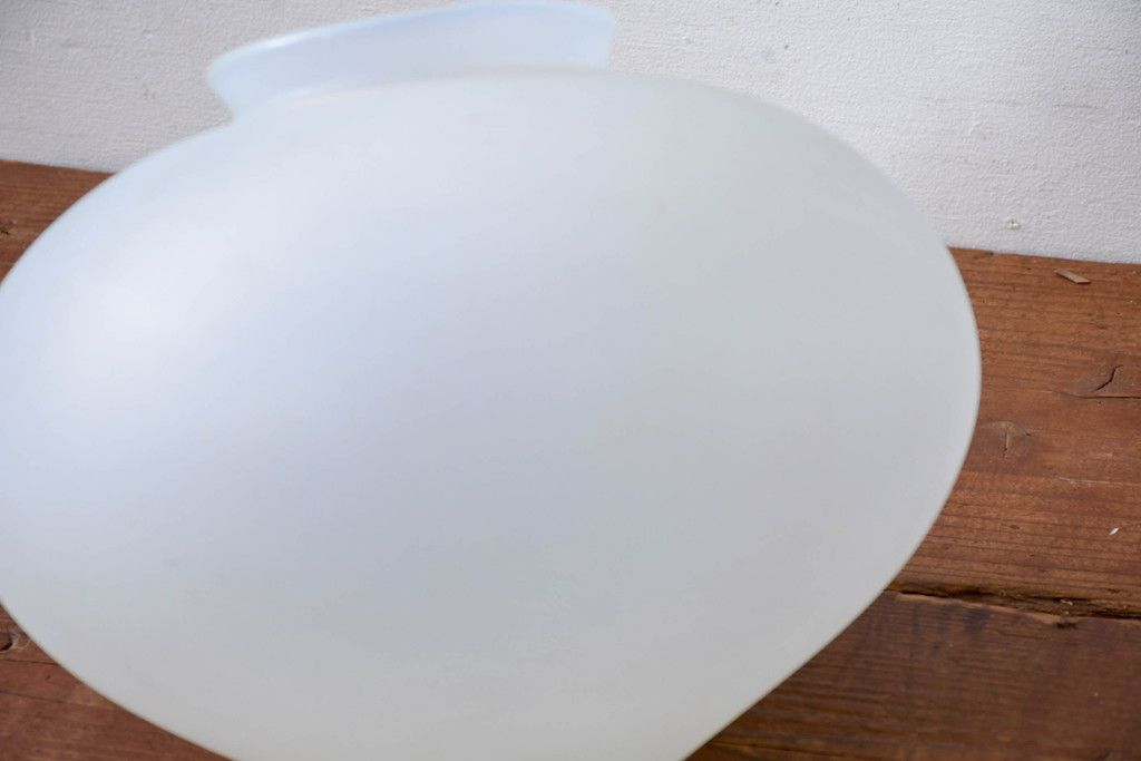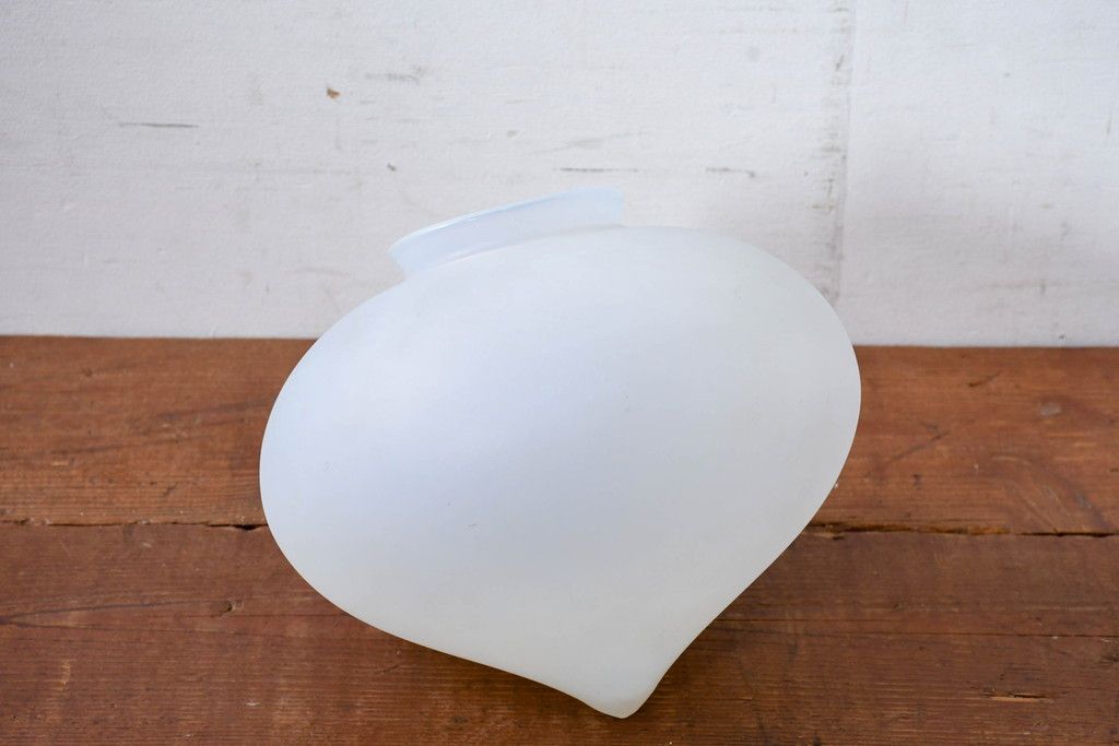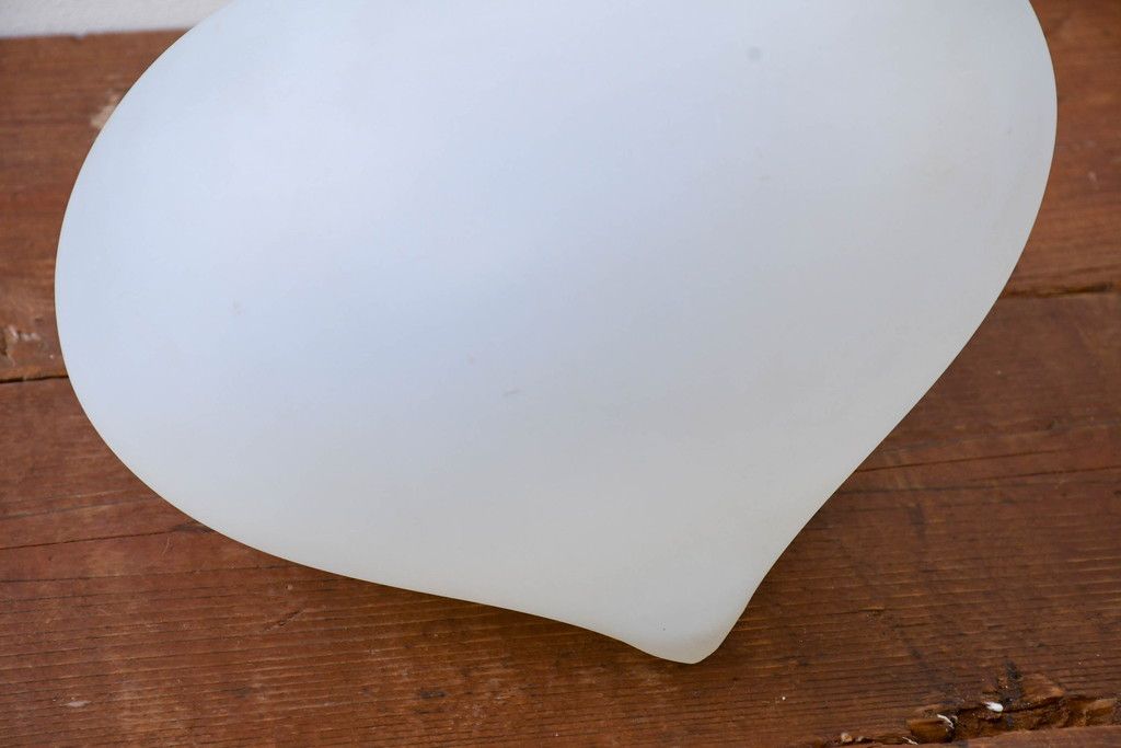 照明・ランプ> ペンダントライト > 《引っ掛けシーリング式ペンダントライト加工費込み》 和製アンティーク 珍品 オパールガラス 先が細く丸みのあるフォルムがしずくのようにも見える変形オーバル型のペンダントライト(吊り下げ照明、天井照明、シェード、電笠、照明カバー、洋梨型)(R-084178)