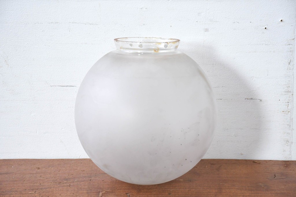 ラフジュ工房> 照明・ランプ > 《引っ掛けシーリング式ペンダントライト加工費込み》 和製アンティーク 球体型 温もりを感じる丸いすりガラスのペンダントライト (R-084180)