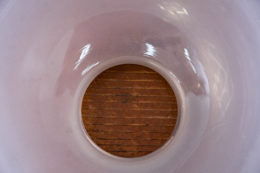 ラフジュ工房> 照明・ランプ> ペンダントライト > 《引っ掛けシーリング式ペンダントライト加工費込み》 和製アンティーク レトロな雰囲気が魅力のオパールガラスのエッチング入り天井照明 (R-084192)