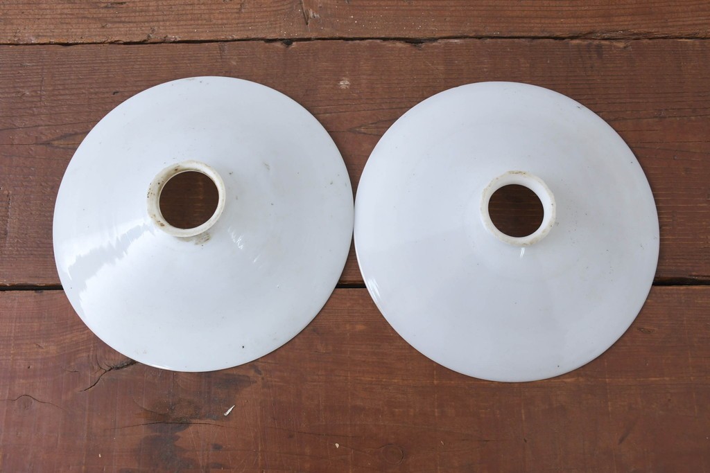 ラフジュ工房> 照明・ランプ> ペンダントライト > 《引っ掛けシーリング式ペンダントライト加工費込み》 和製アンティーク 広がりフォルムが美しい平笠照明2個セット (R-084199)