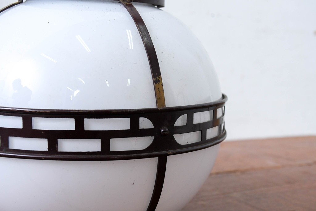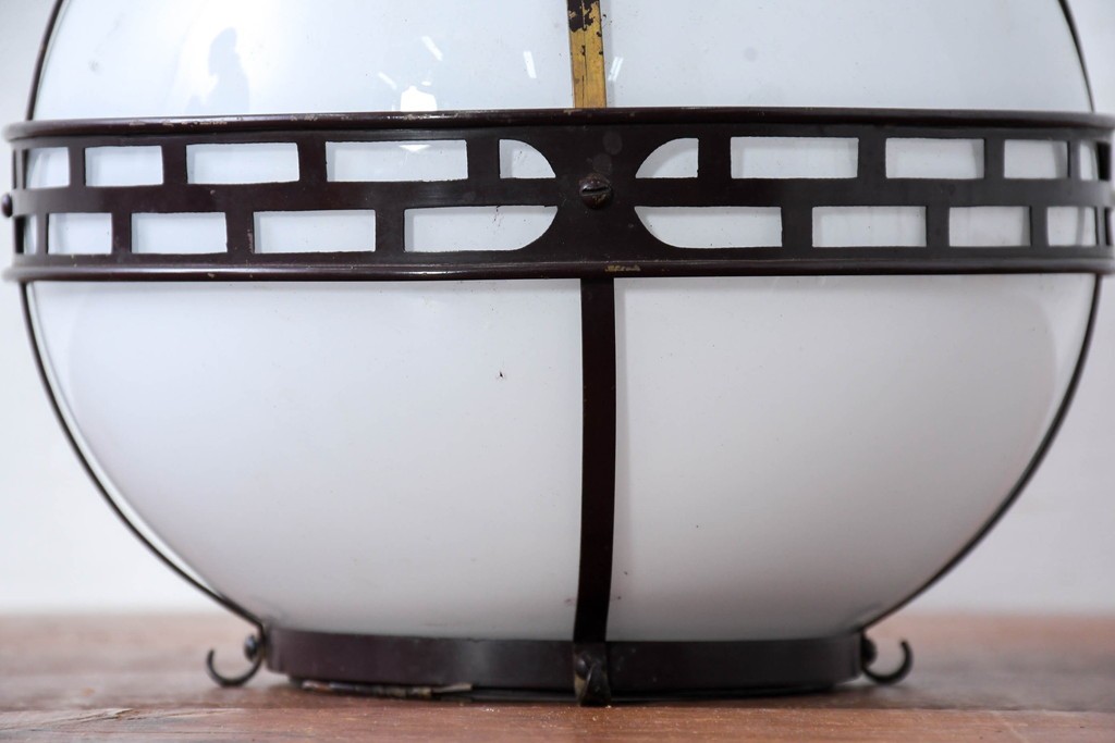 • 《引っ掛けシーリング式ペンダントライト加工費込み》 和製アンティーク 真鍮(しんちゅう)飾り 大正ロマンの雰囲気を高める天井照明 (R-084201)