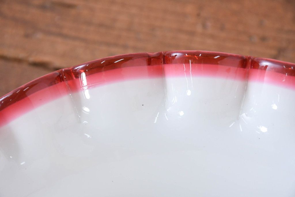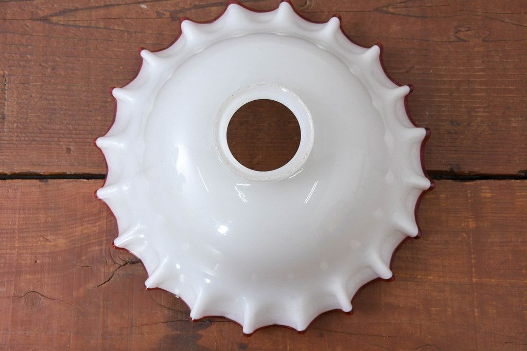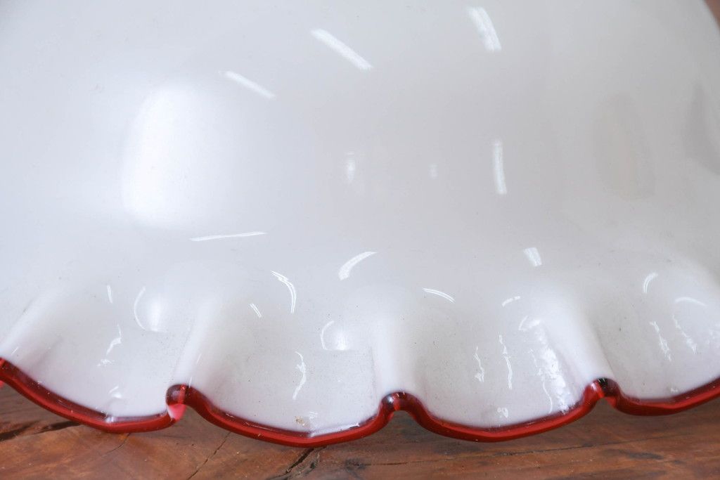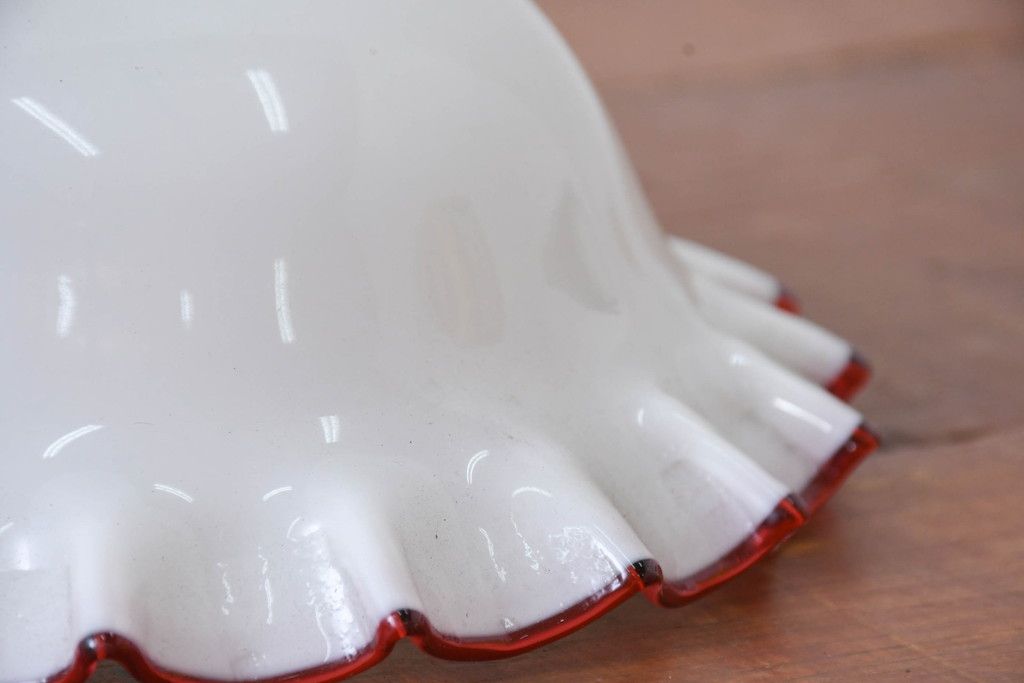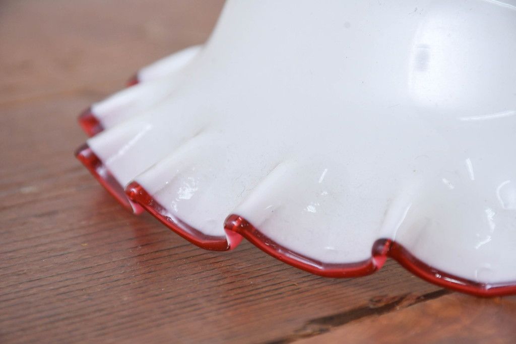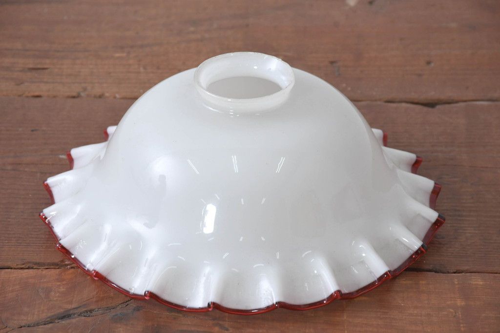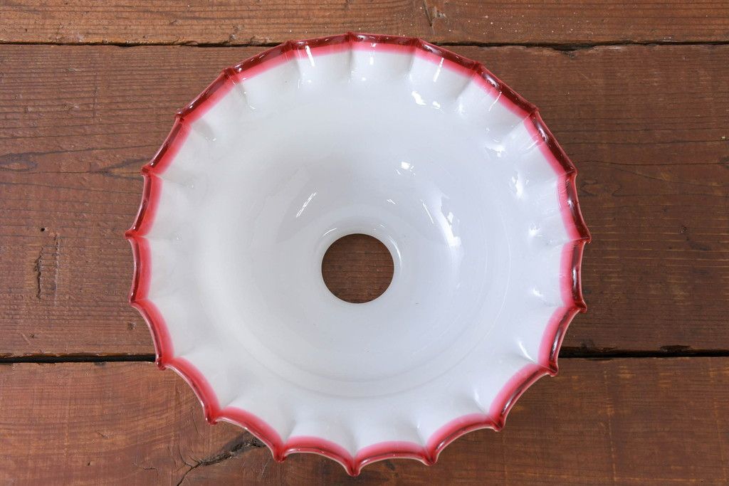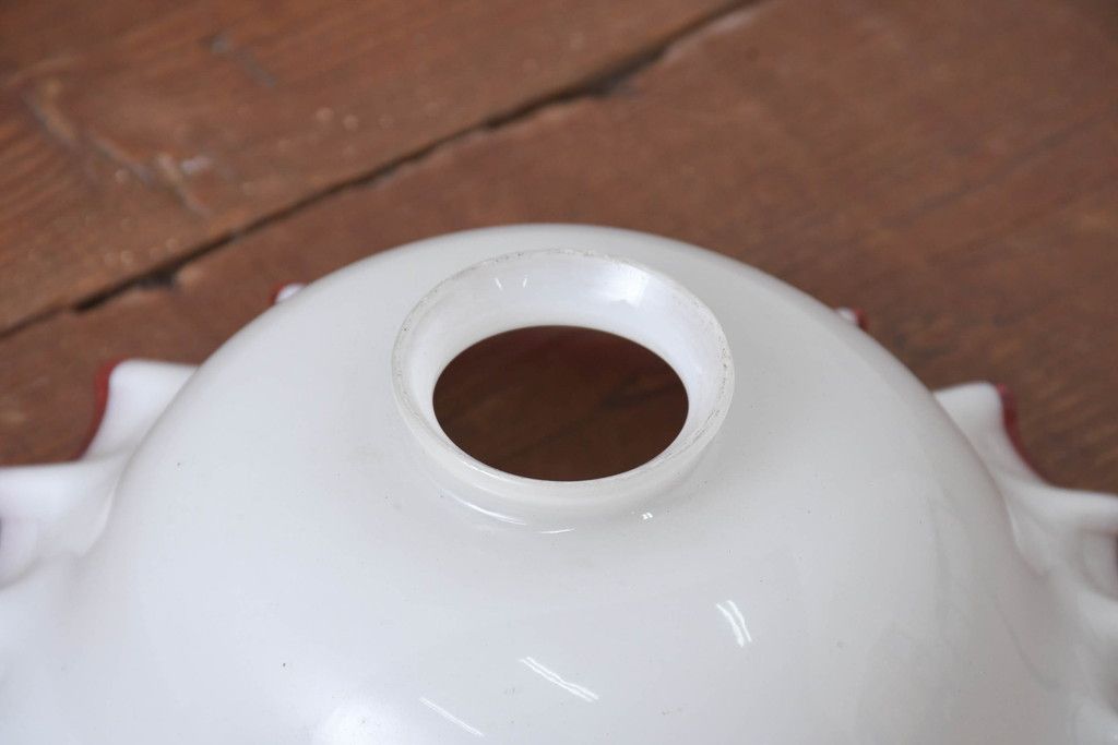 照明・ランプ> ペンダントライト > 《引っ掛けシーリング式ペンダントライト加工費込み》 和製アンティーク 赤縁フリルのデザインが可愛らしいペンダントライト(吊り下げ照明、天井照明、シェード、電笠)(R-084205)