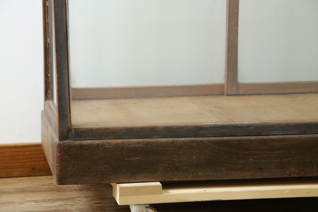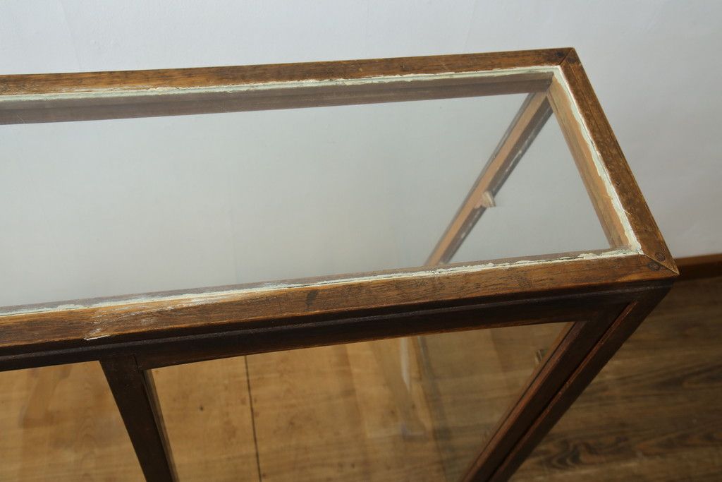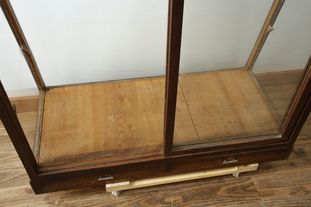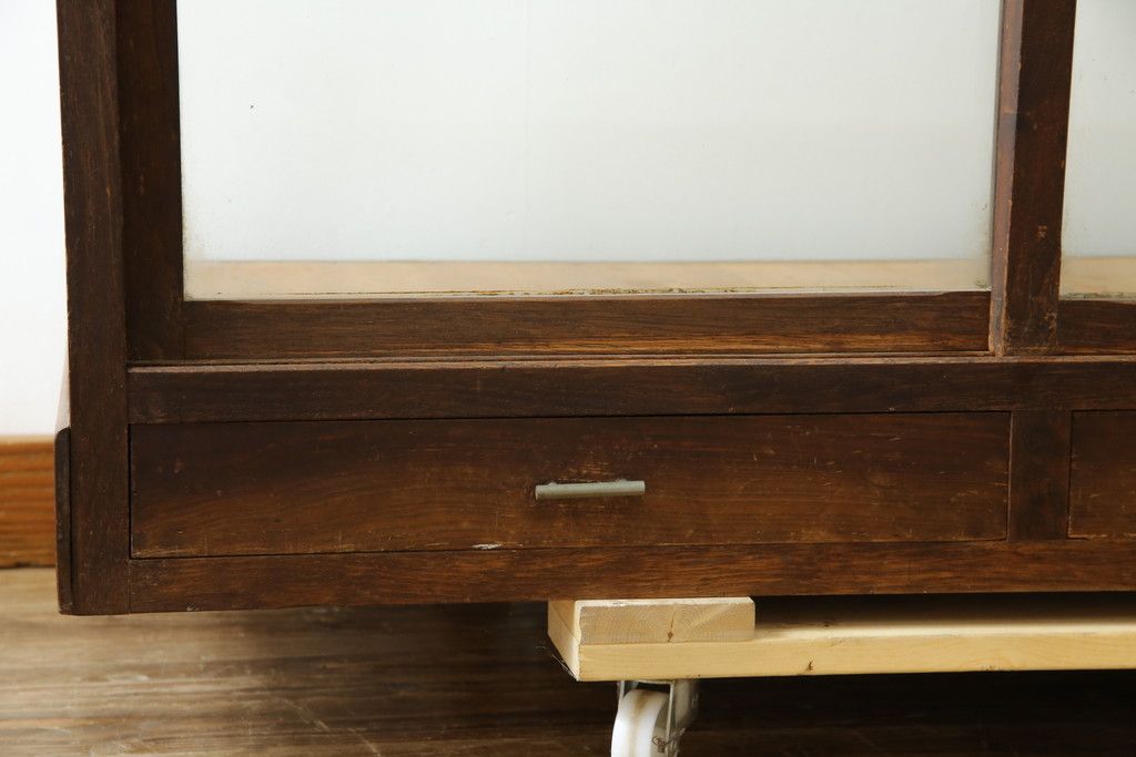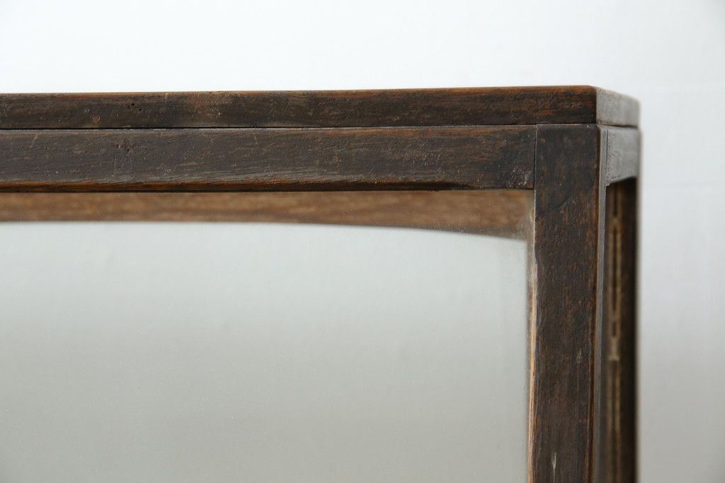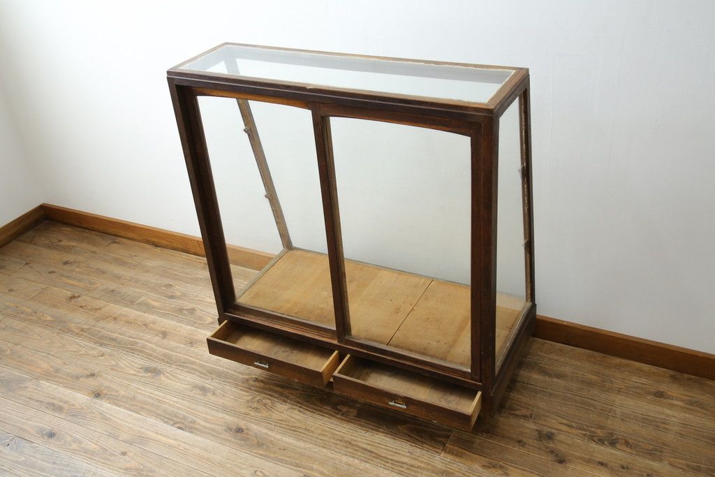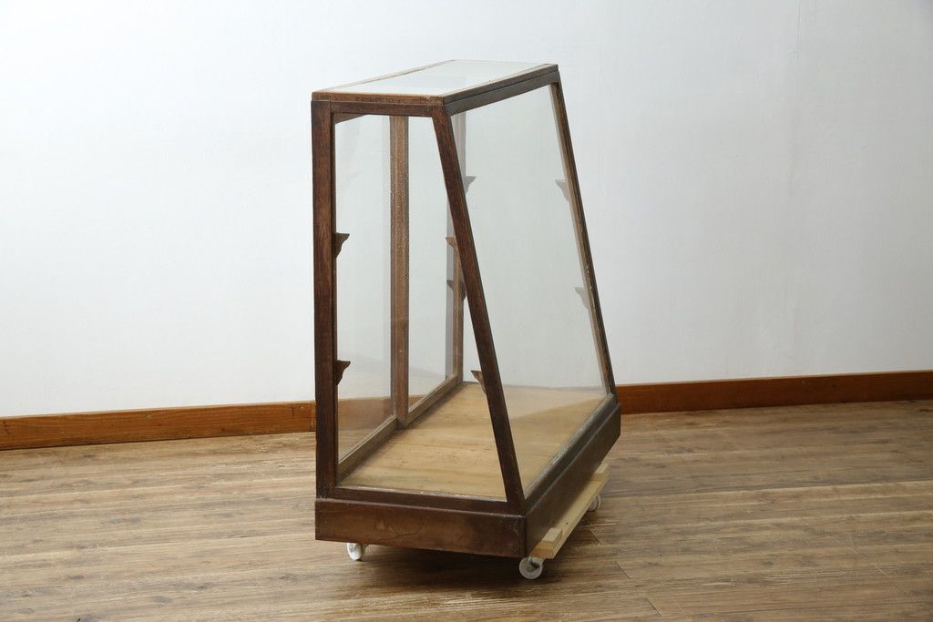 和製アンティーク 人気の台形型!! 引き出し付き 栗材木枠のガラスケース(ショーケース、陳列棚、店舗什器)(R-084245)