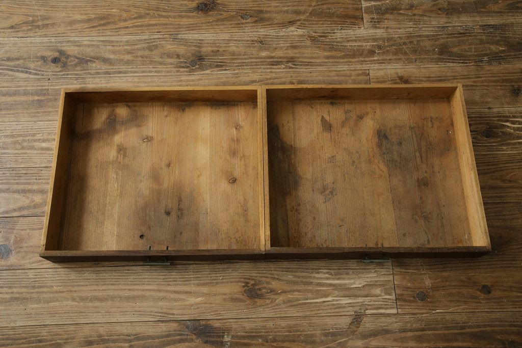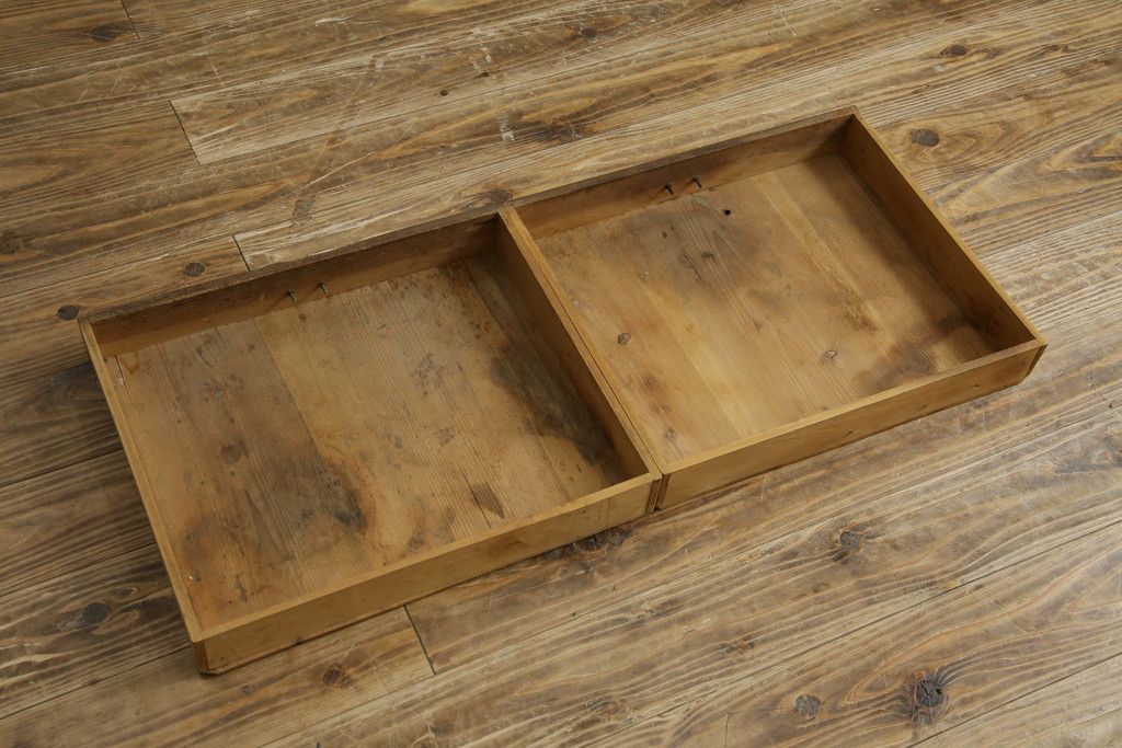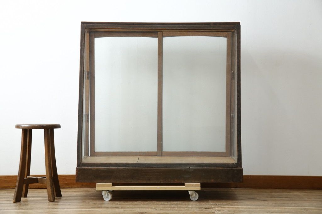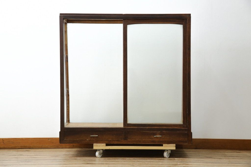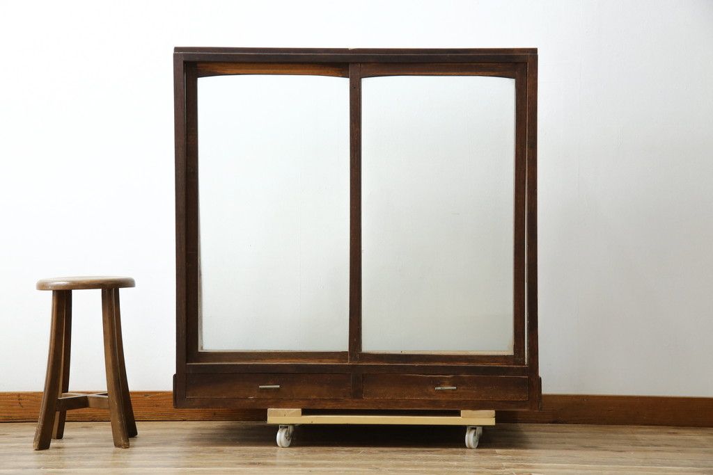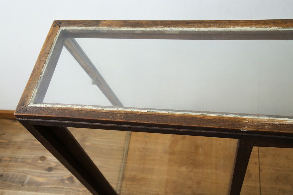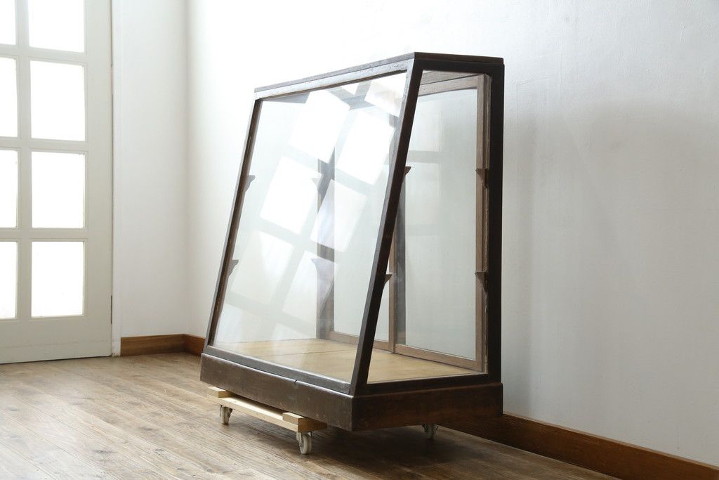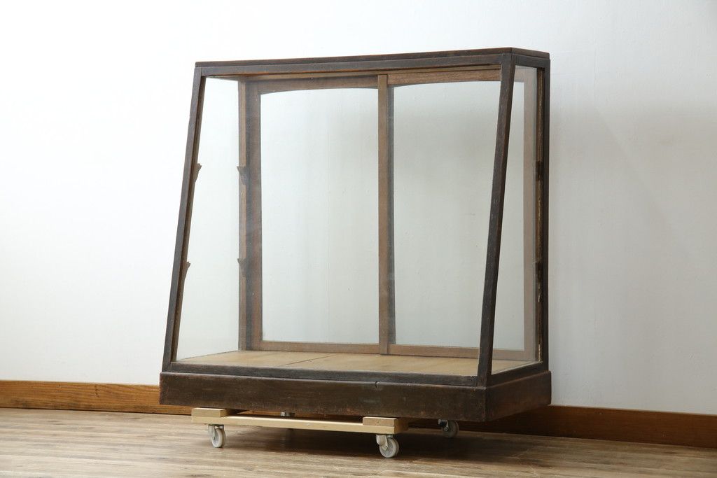 和製アンティーク 人気の台形型!! 引き出し付き 栗材木枠のガラスケース(ショーケース、陳列棚、店舗什器)(R-084245)