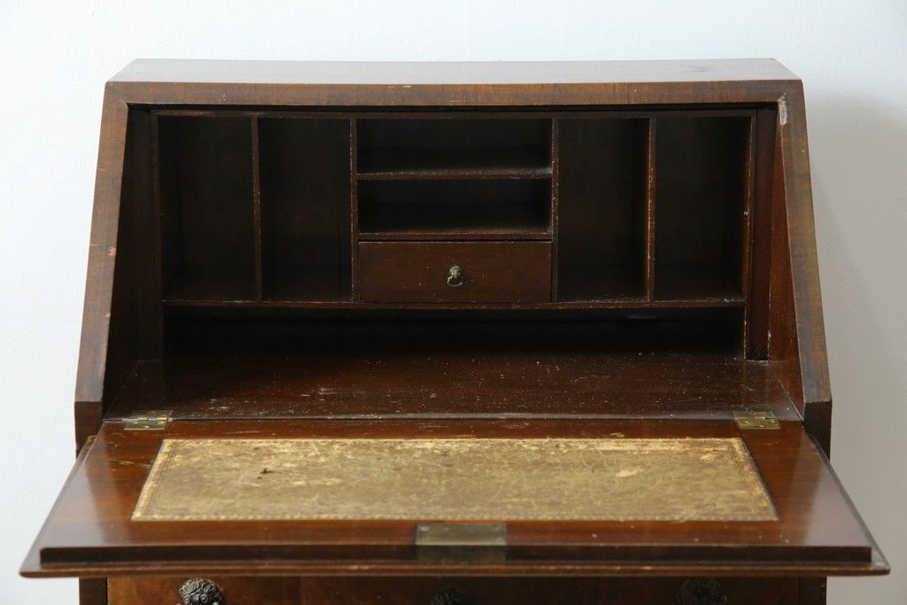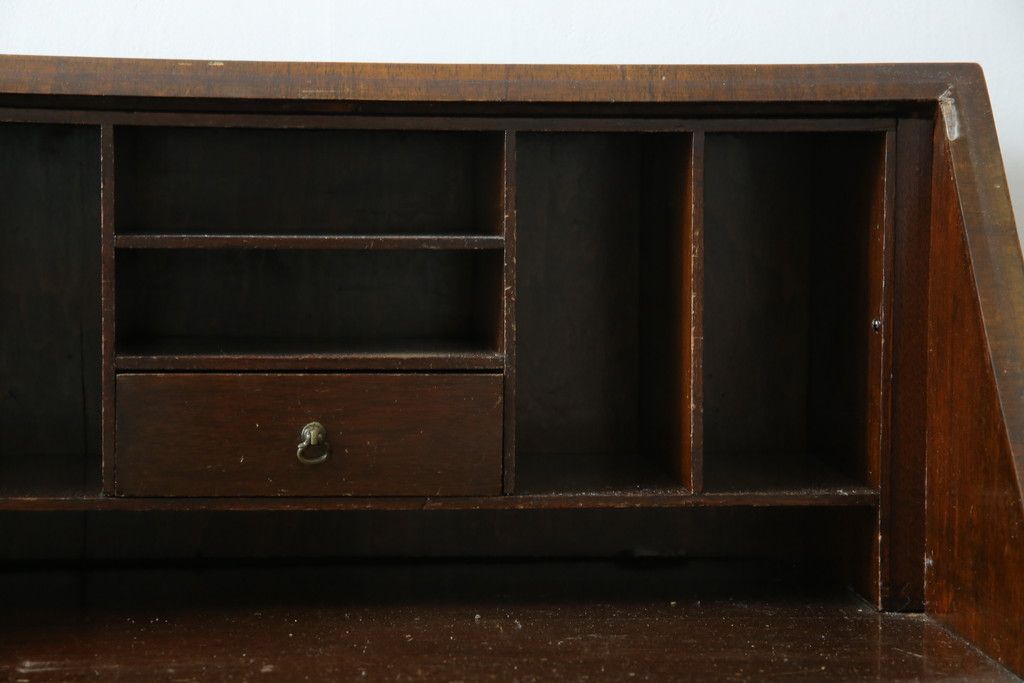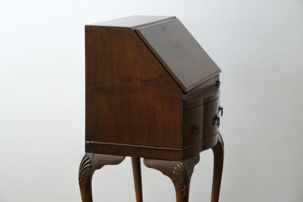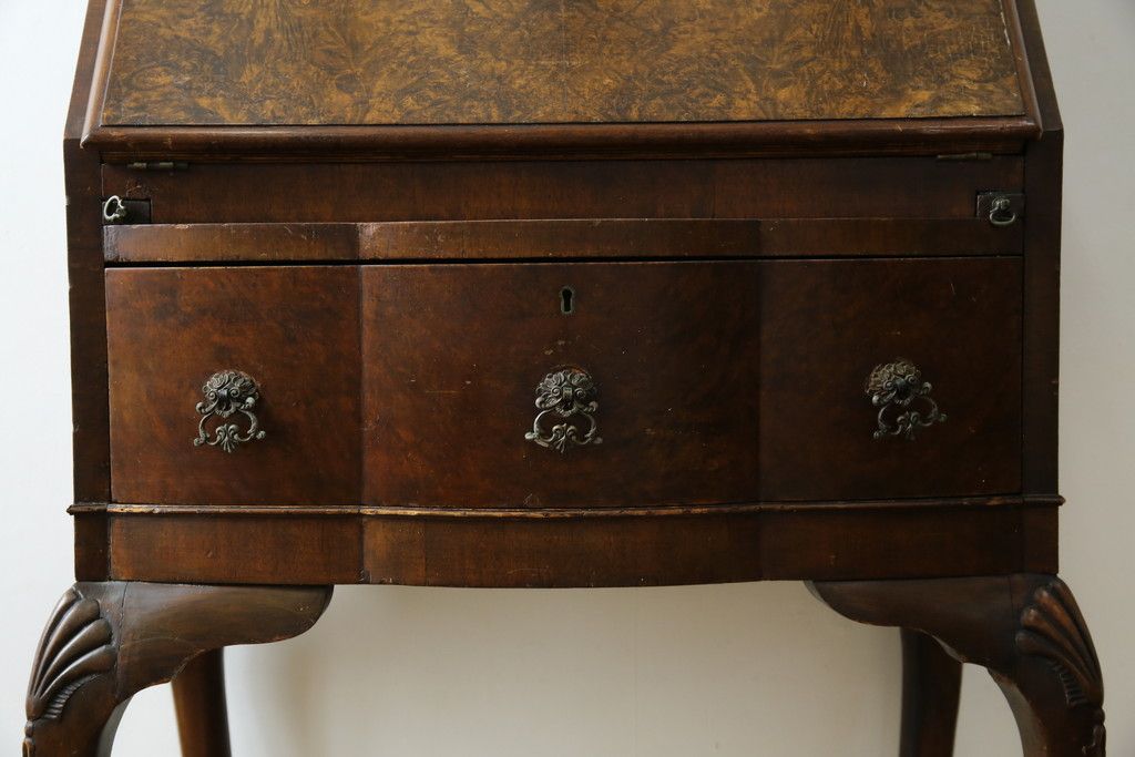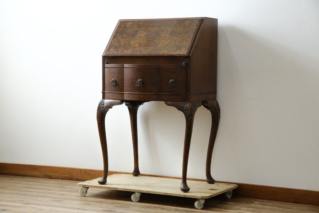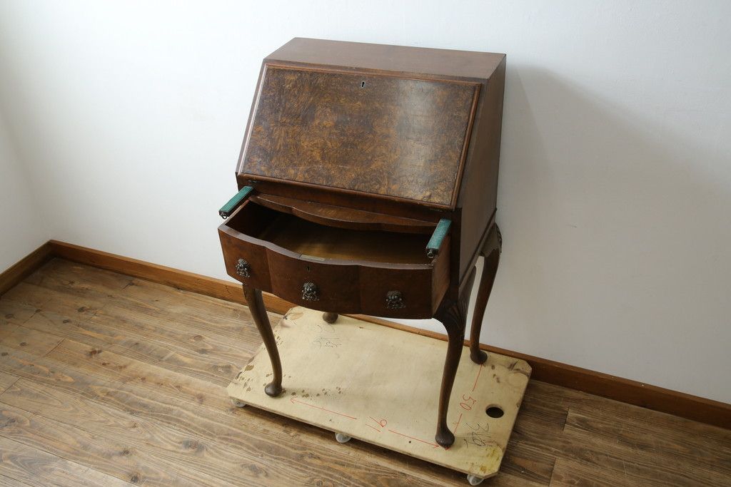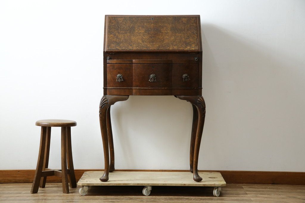 イギリスアンティーク 希少サイズ ウォールナットの杢目が美しい小振りなライティングビューロー(机、在宅用、在宅ワーク用、ワークデスク、英国)(R-084248)