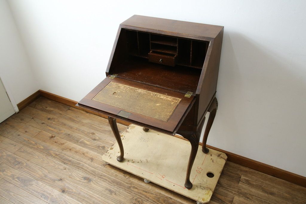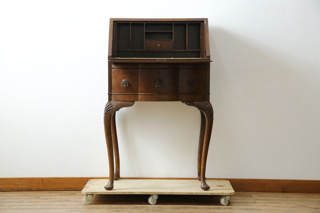 イギリスアンティーク 希少サイズ ウォールナットの杢目が美しい小振りなライティングビューロー(机、在宅用、在宅ワーク用、ワークデスク、英国)(R-084248)です。