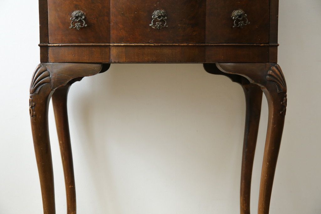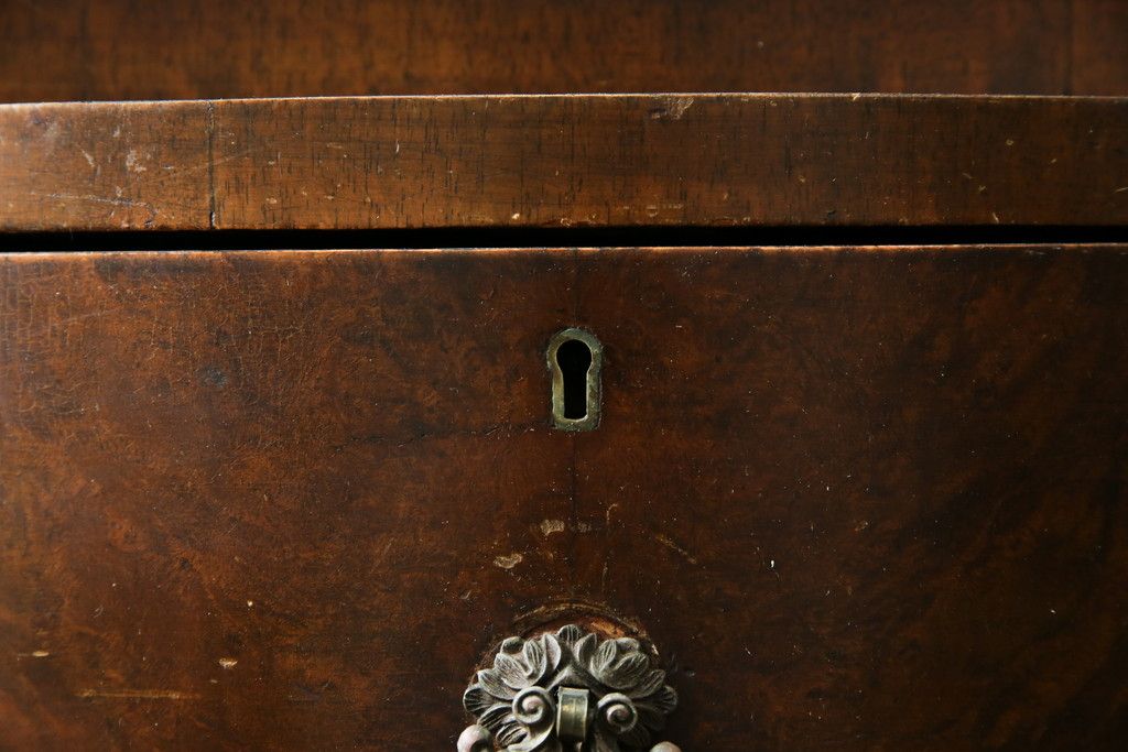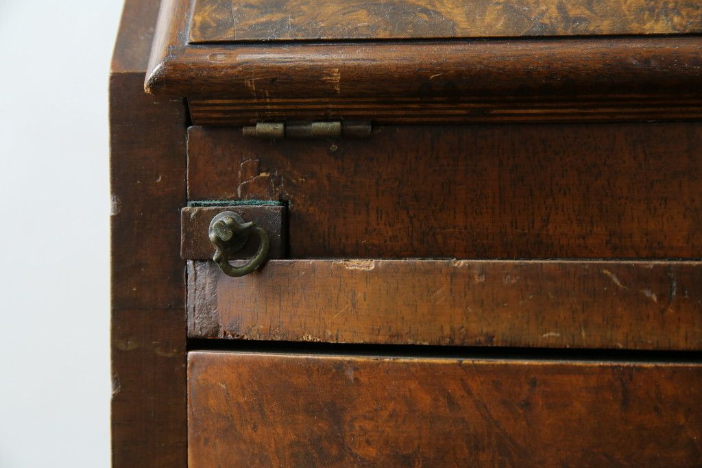 アンティーク商品では稀に引き出しや扉、つまみ等を動かすと鍵がかかる仕組みの商品があります。鍵閉じ込め防止のため、鍵は当該商品の引き出し、扉内ではなく別に保管してくださいますようお願い致します。