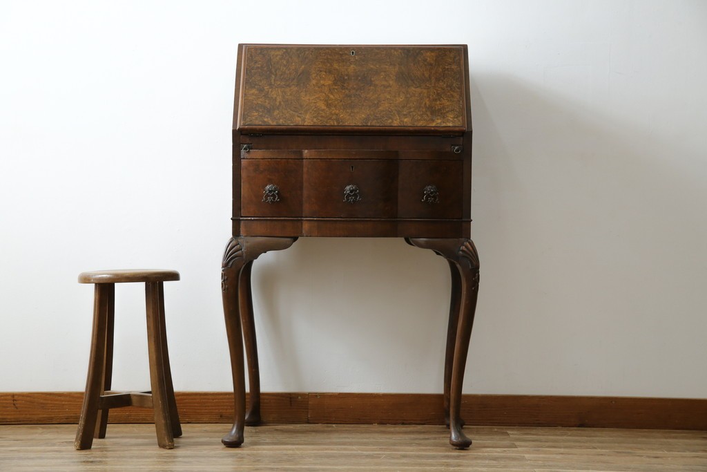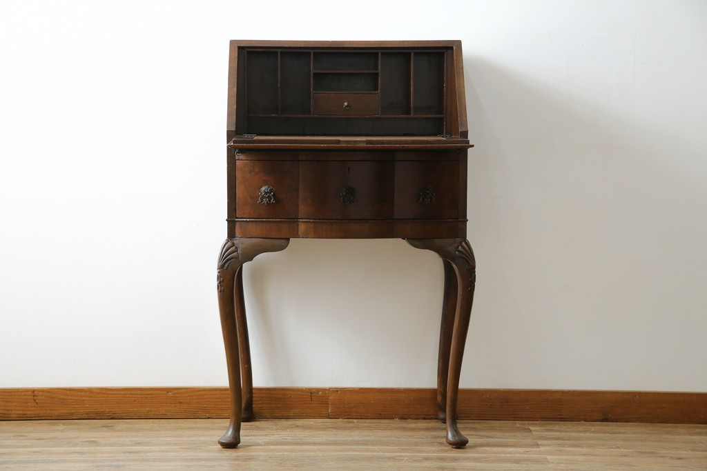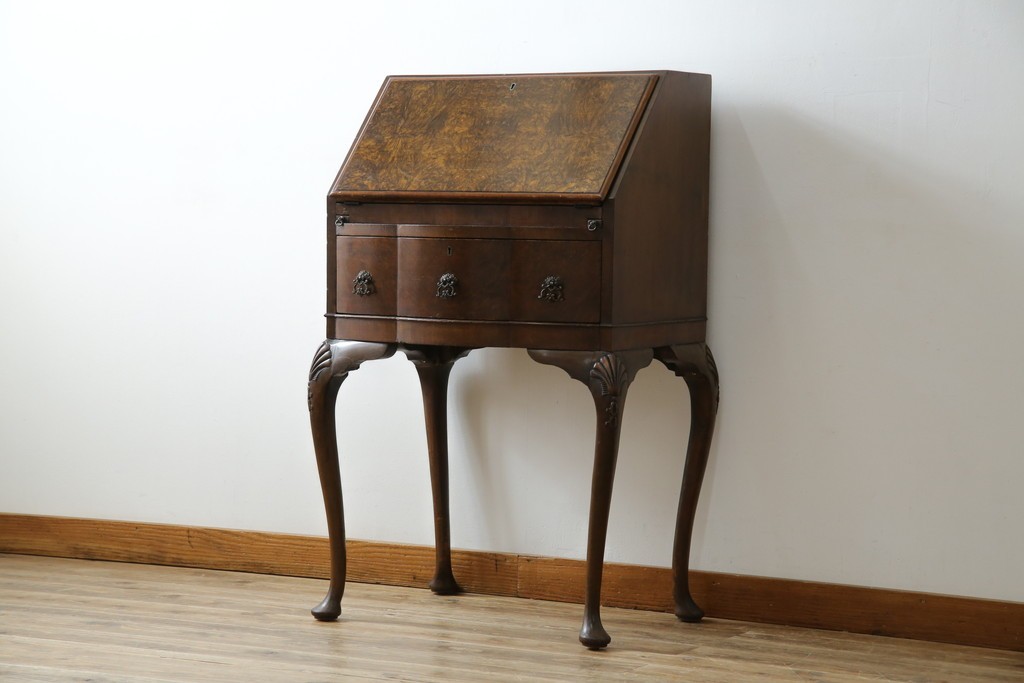 イギリスアンティーク 希少サイズ ウォールナットの杢目が美しい小振りなライティングビューロー (R-084248)