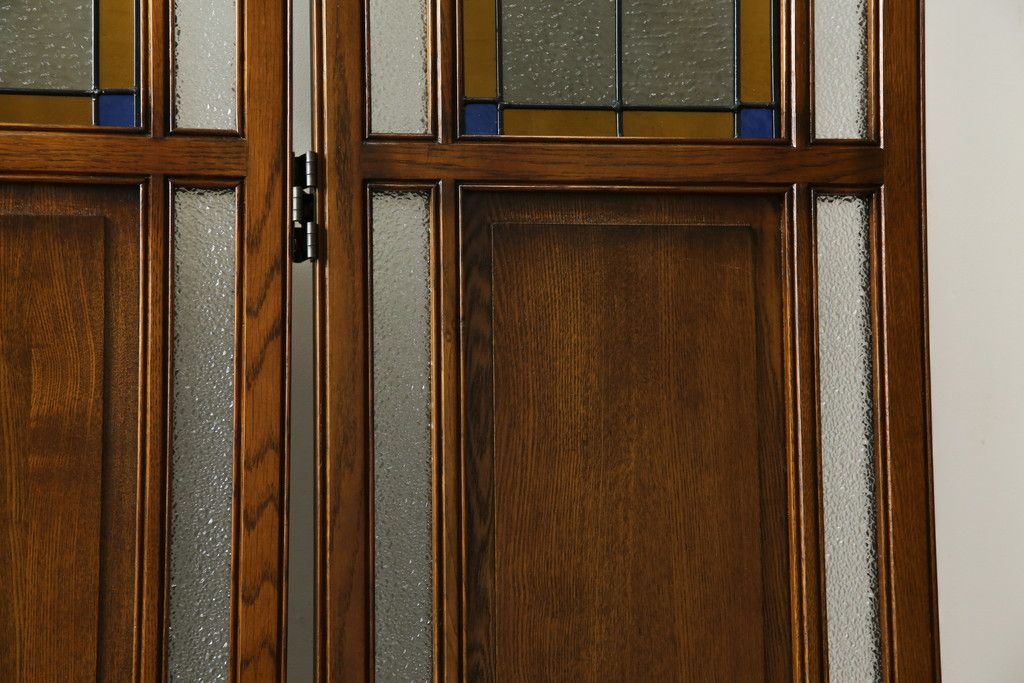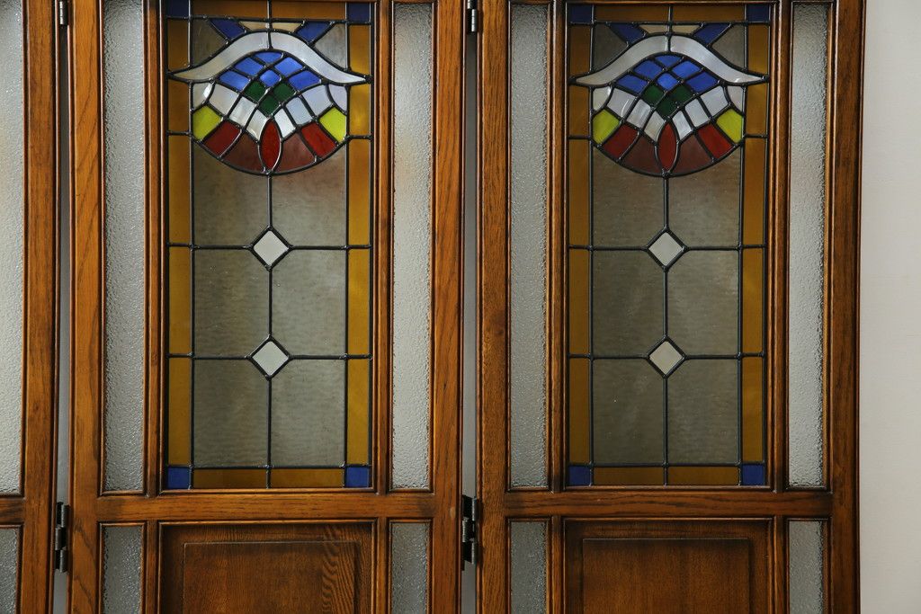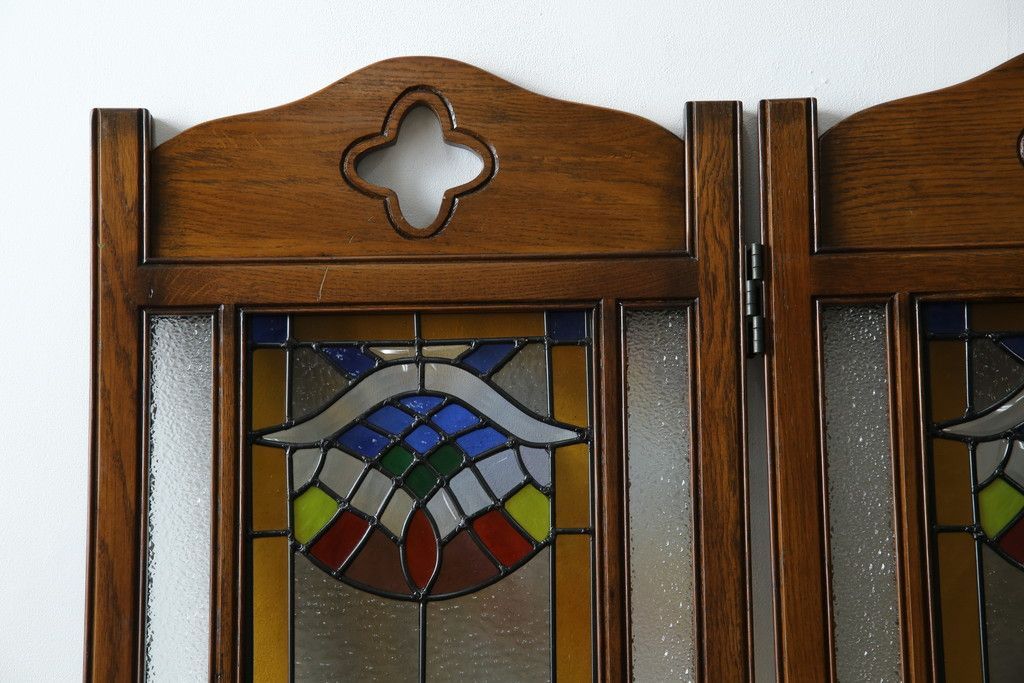 衝立・パーテーション> 折りたたみパーテーション > 中古 美品 鮮やかで美しいステンドグラス入りの3連衝立て(つい立て、衝い立て、パーテーション、スクリーン、間仕切り、店舗什器)(R-084251)