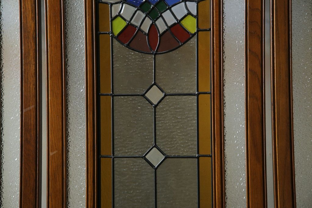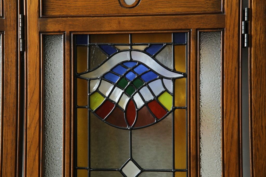 店舗什器 > 中古 美品 鮮やかで美しいステンドグラス入りの3連衝立て(つい立て、衝い立て、パーテーション、スクリーン、間仕切り、店舗什器)(R-084251)