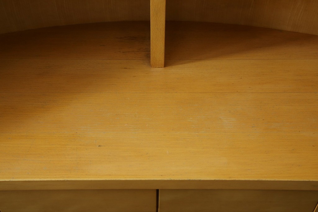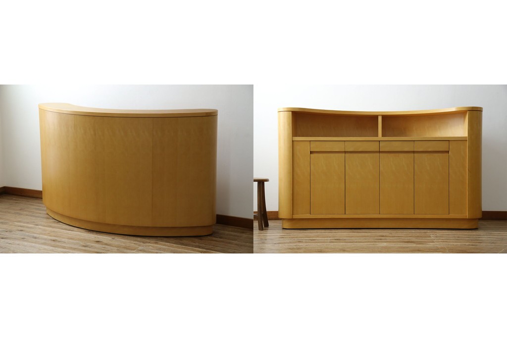 テーブル > 中古 希少な特注品 CONDE HOUSE(カンディハウス) ビーチ材 図書室の両面使いラウンドカウンターテーブル 製作費約90万円相当 (R-084266)