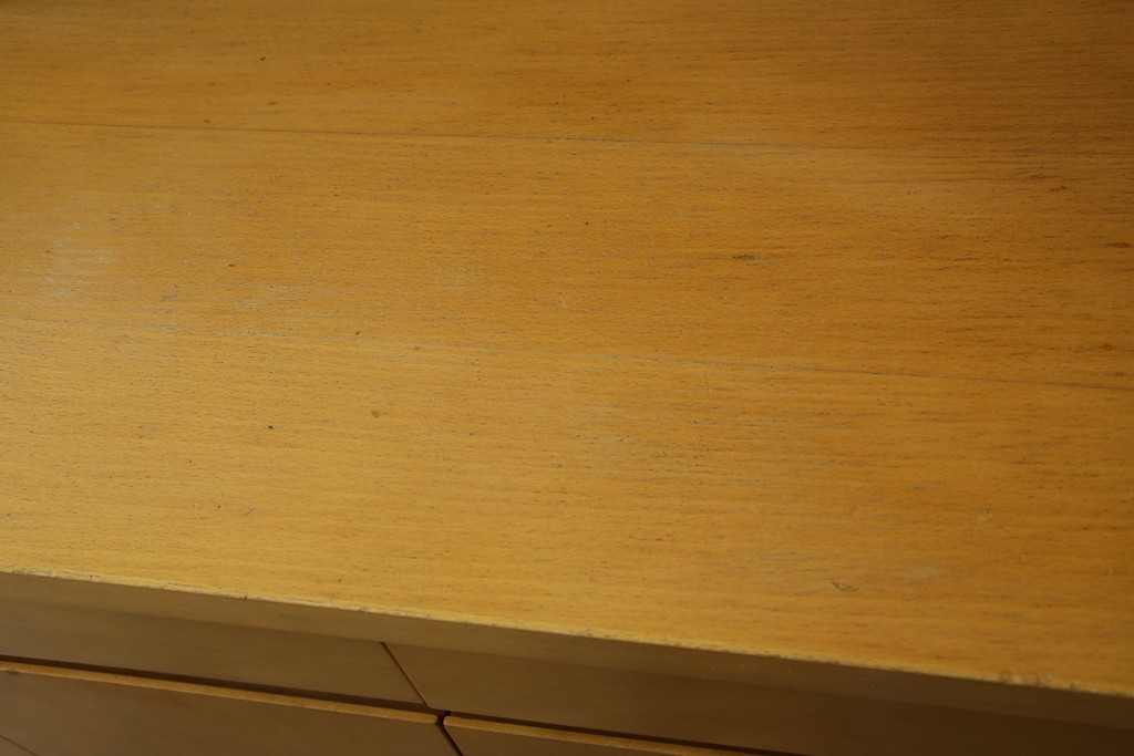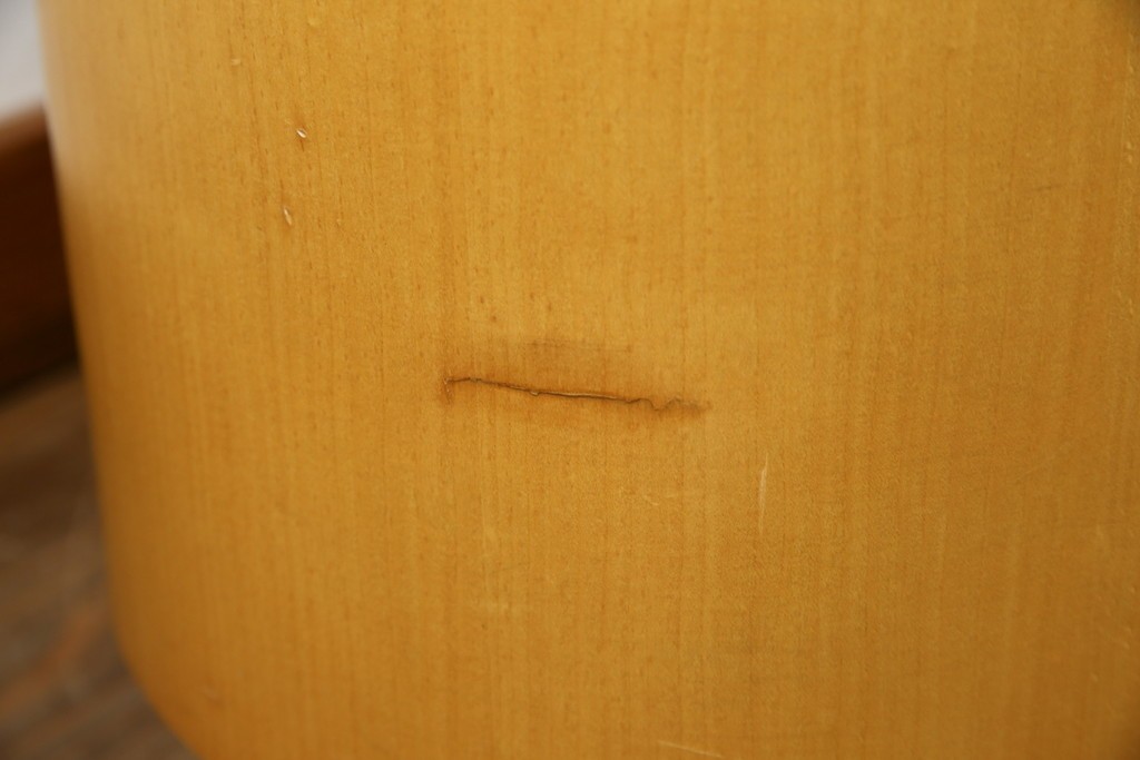 ・天板は当店でクリア塗装を施しております。小キズ等が目立ちにくく、耐水性と耐久性に優れたお手入れがしやすい仕上げです。