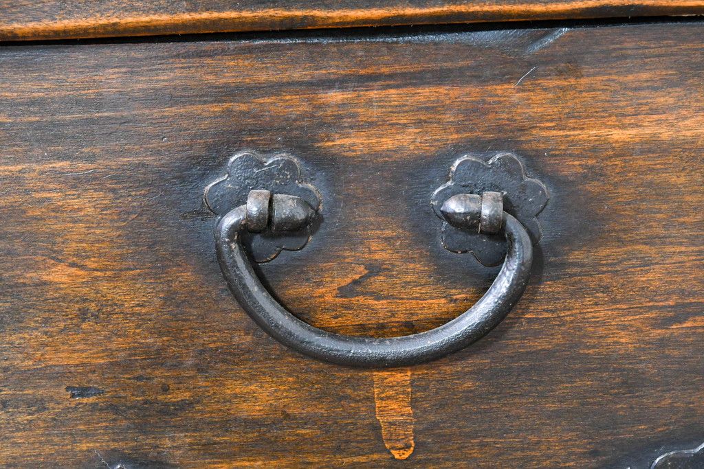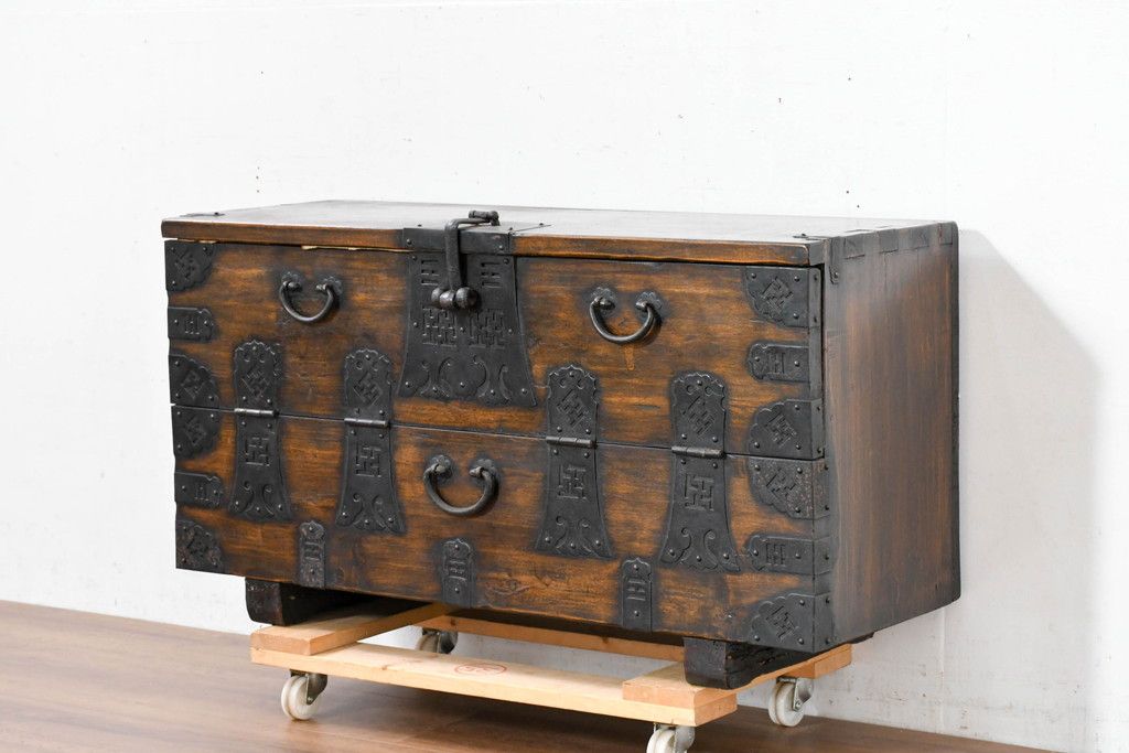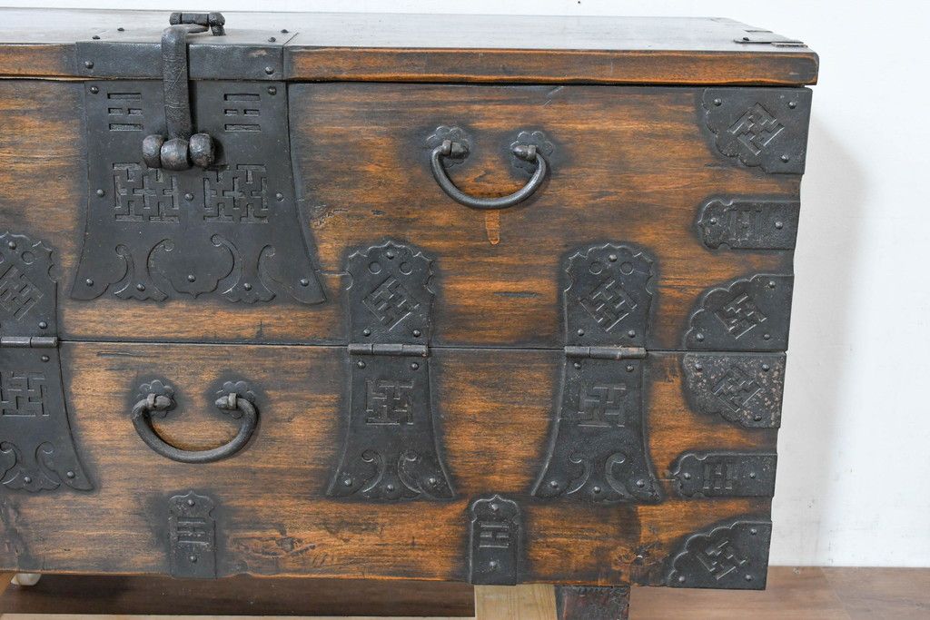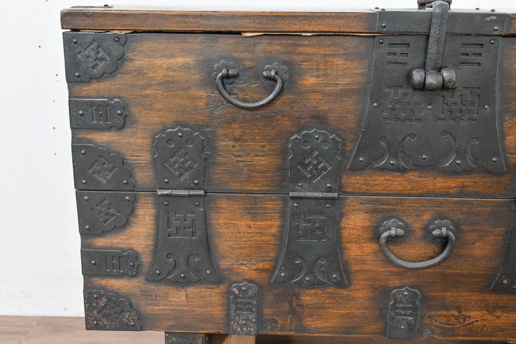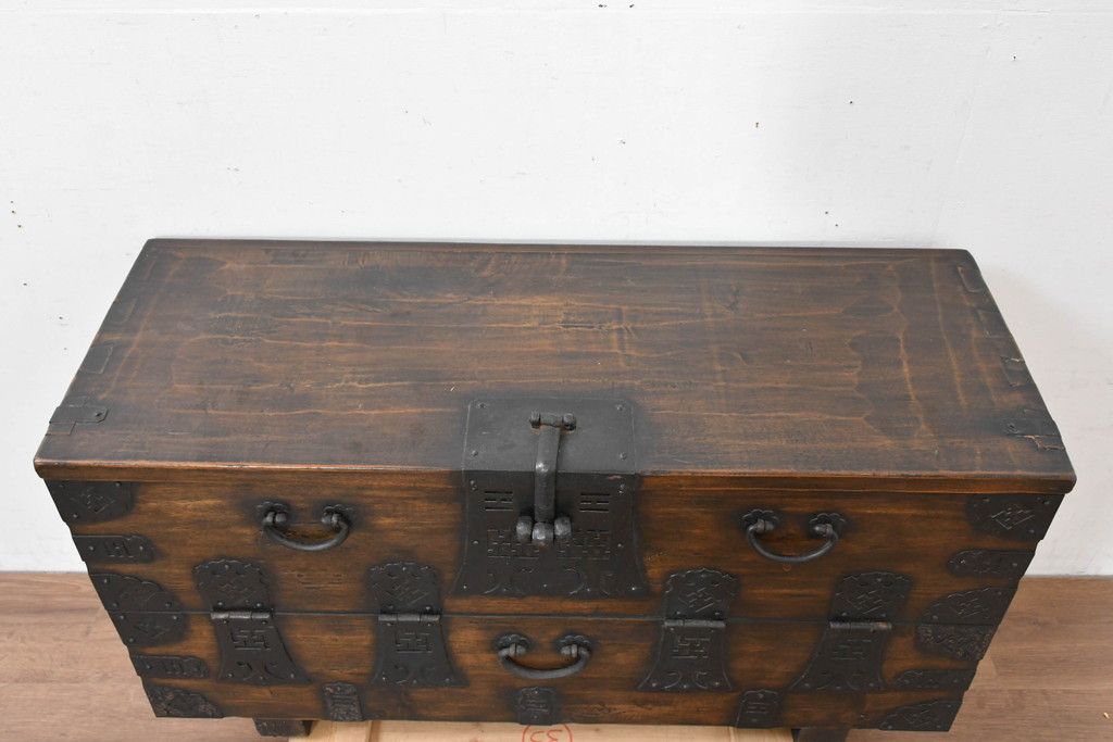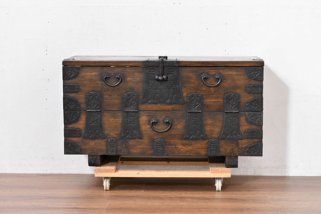李朝家具 > アジアンアンティーク 松材 金具が重厚な存在感を放つ!趣深い佇まいのバンダチ(バンダジ、半閉櫃、李朝家具、李朝タンス、収納箪笥)(R-084271)