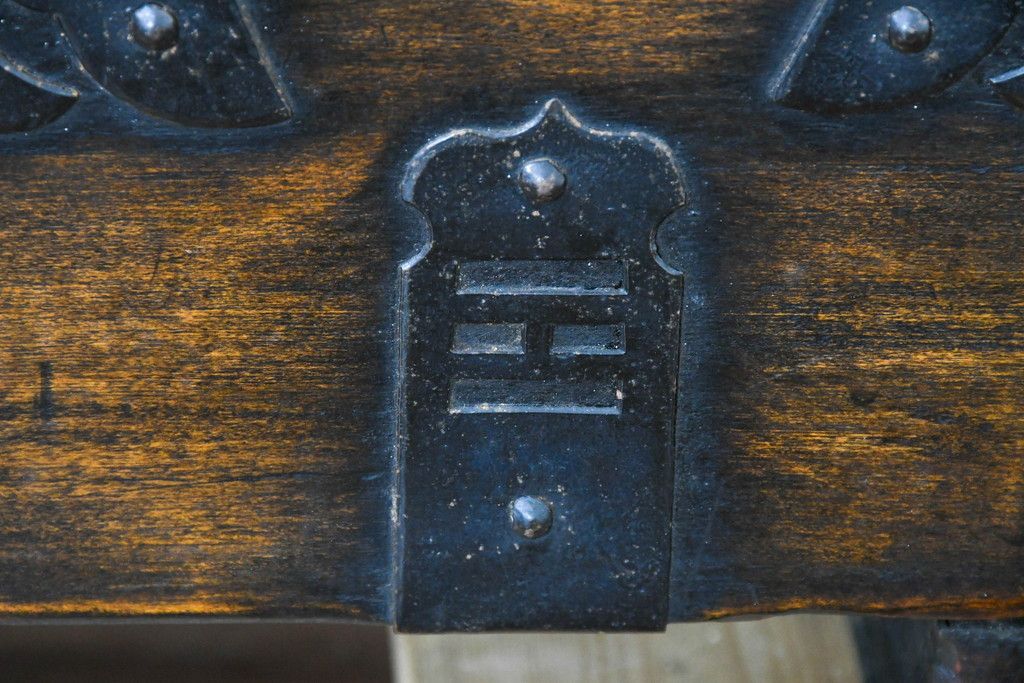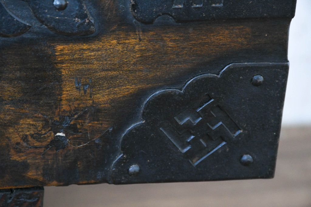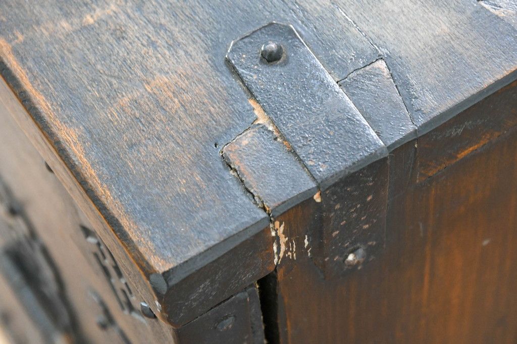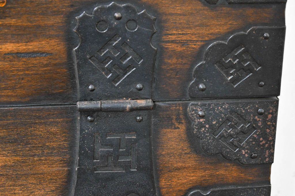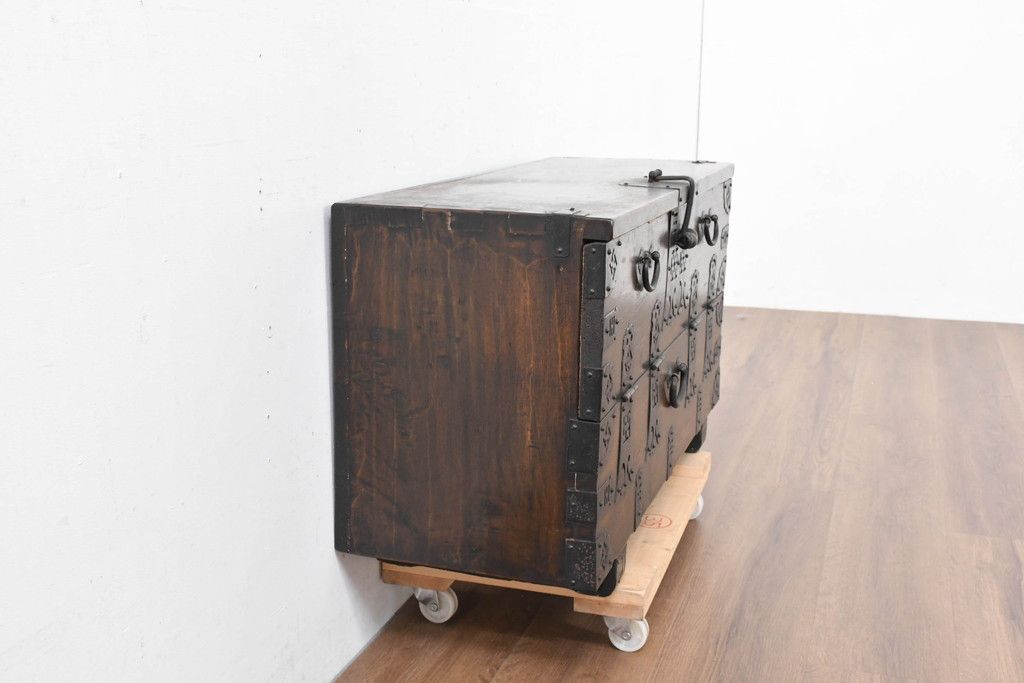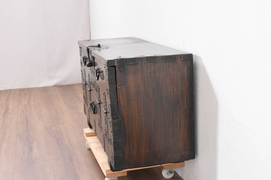 李朝家具 > アジアンアンティーク 松材 金具が重厚な存在感を放つ!趣深い佇まいのバンダチ(バンダジ、半閉櫃、李朝家具、李朝タンス、収納箪笥)(R-084271)