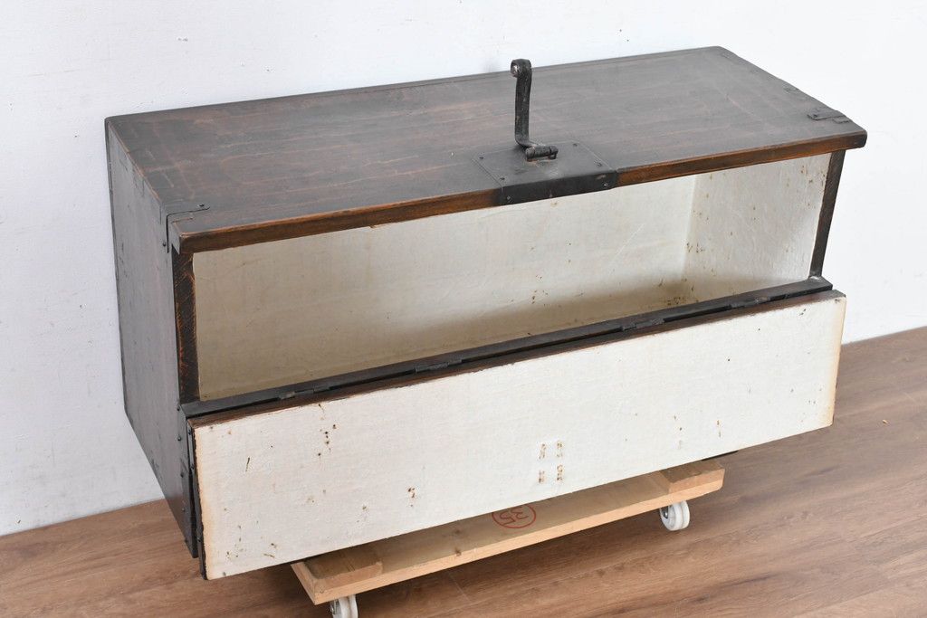 アンティーク商品では稀に引き出しや扉、つまみ等を動かすと鍵がかかる仕組みの商品があります。鍵閉じ込め防止のため、鍵は当該商品の引き出し、扉内ではなく別に保管してくださいますようお願い致します。
