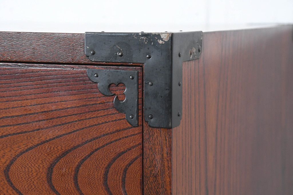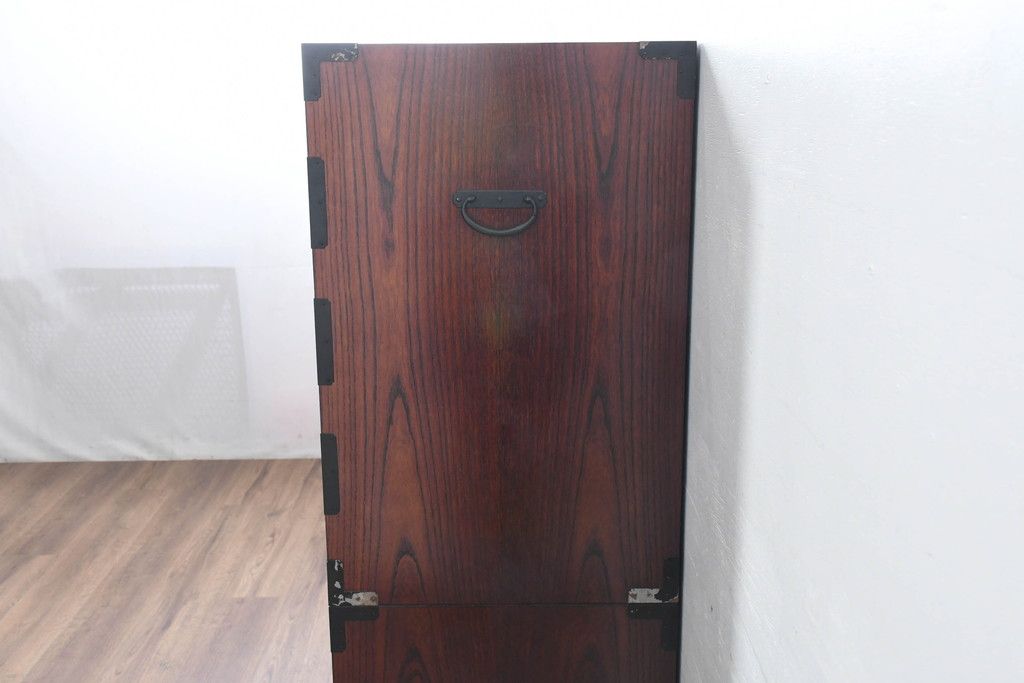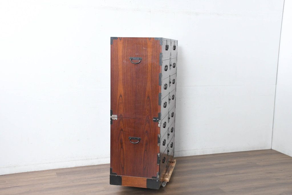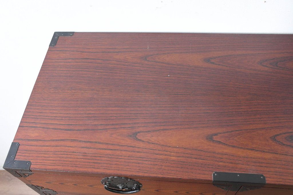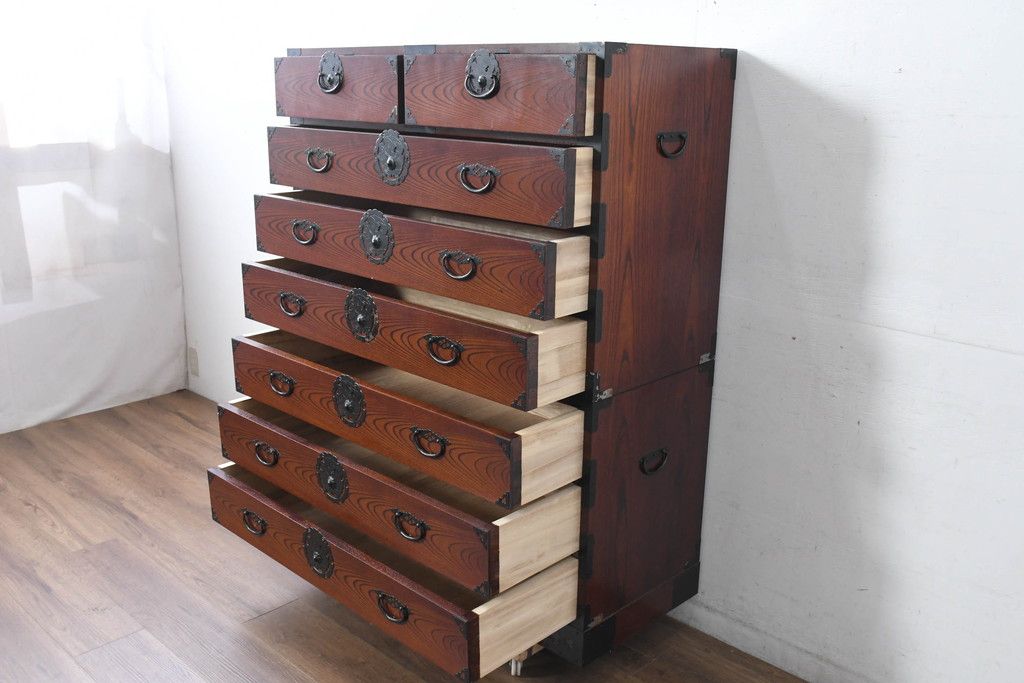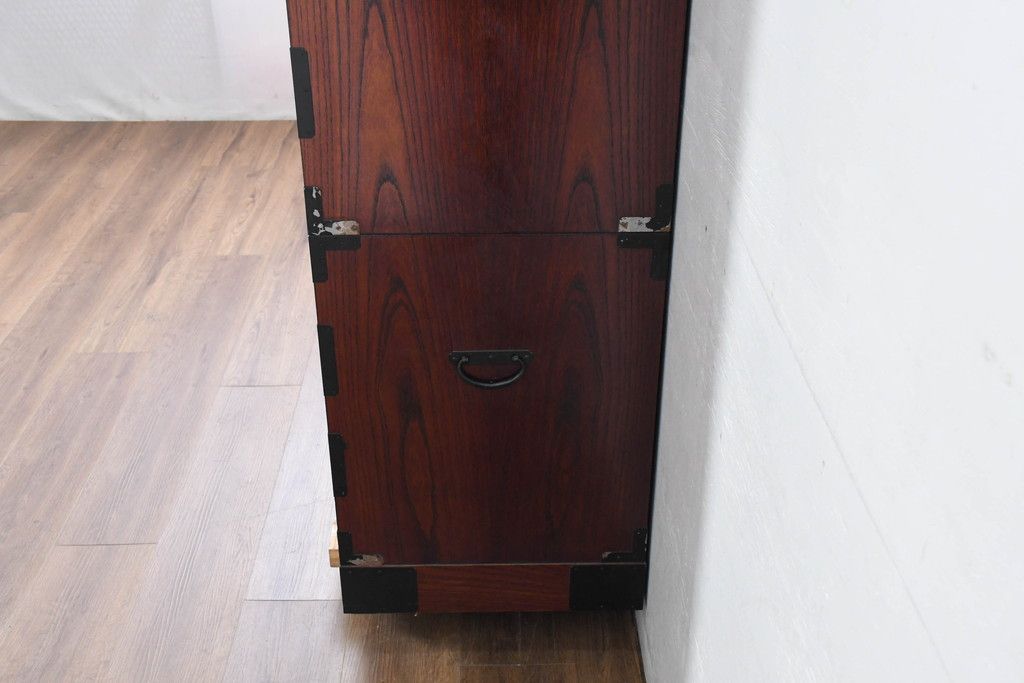 民芸家具 > 中古 美品 民芸家具 高級品!! 欅(ケヤキ)材 内部桐(キリ)材 蝶の図手打ち金具 伝統技術が息づく漆塗りの米沢箪笥(重ね箪笥、和タンス、収納箪笥、バラ売り可能)(R-084275)