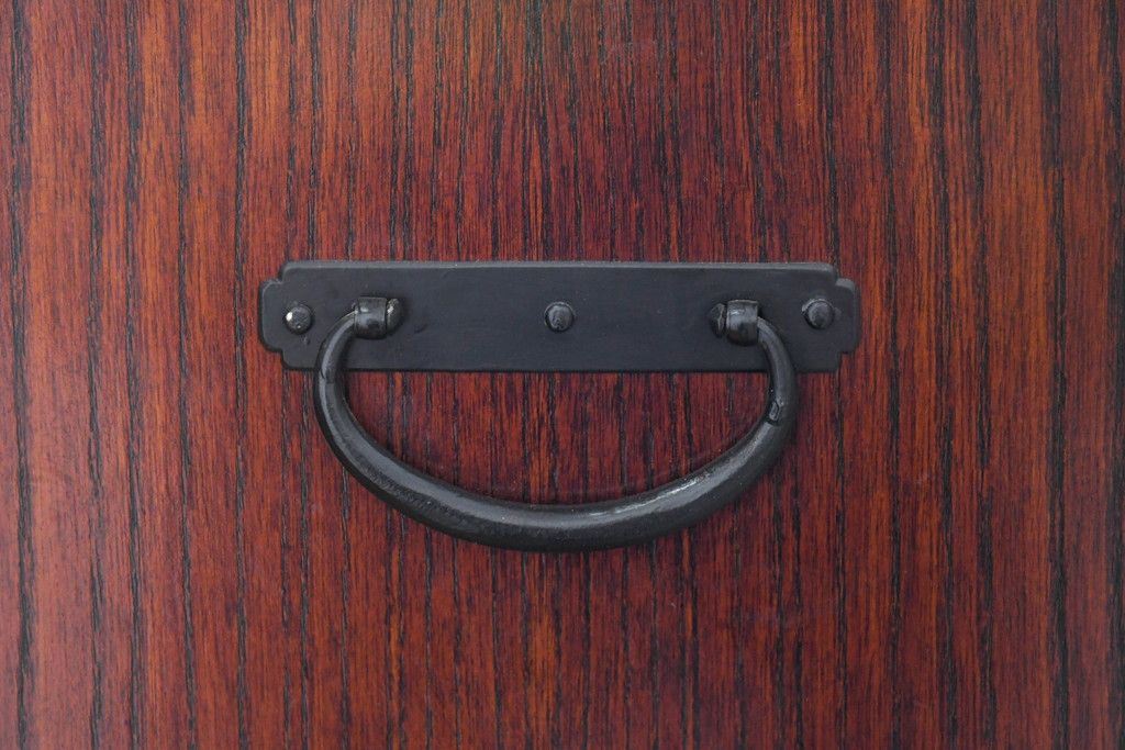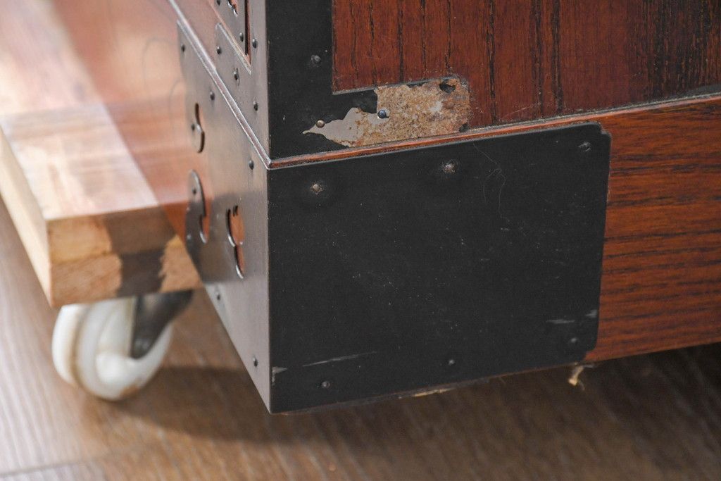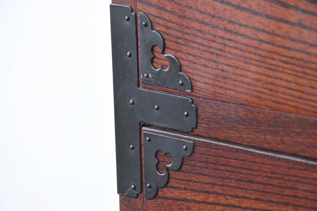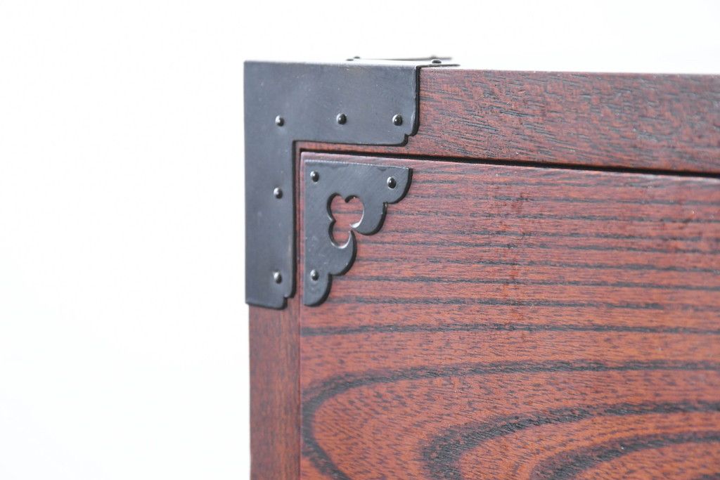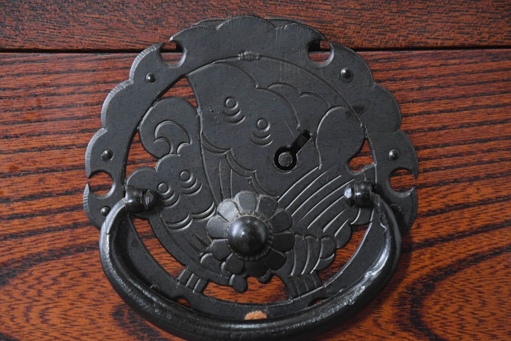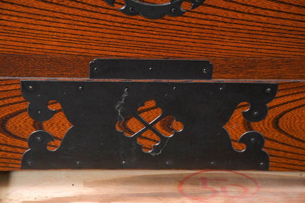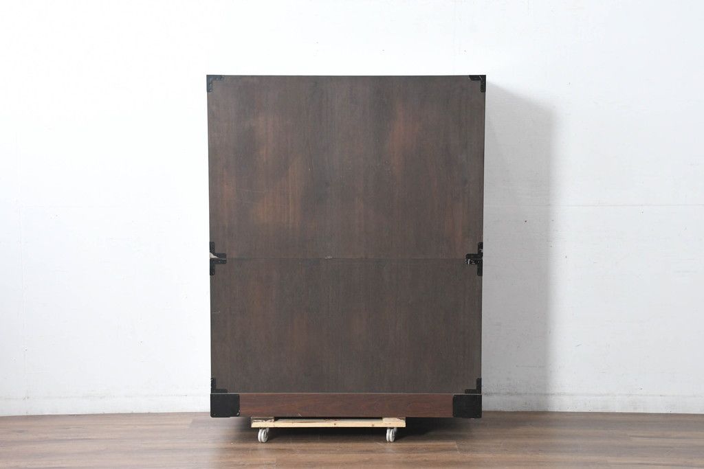 民芸家具 > 中古 美品 民芸家具 高級品!! 欅(ケヤキ)材 内部桐(キリ)材 蝶の図手打ち金具 伝統技術が息づく漆塗りの米沢箪笥(重ね箪笥、和タンス、収納箪笥、バラ売り可能)(R-084275)