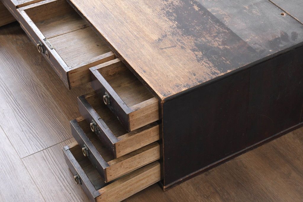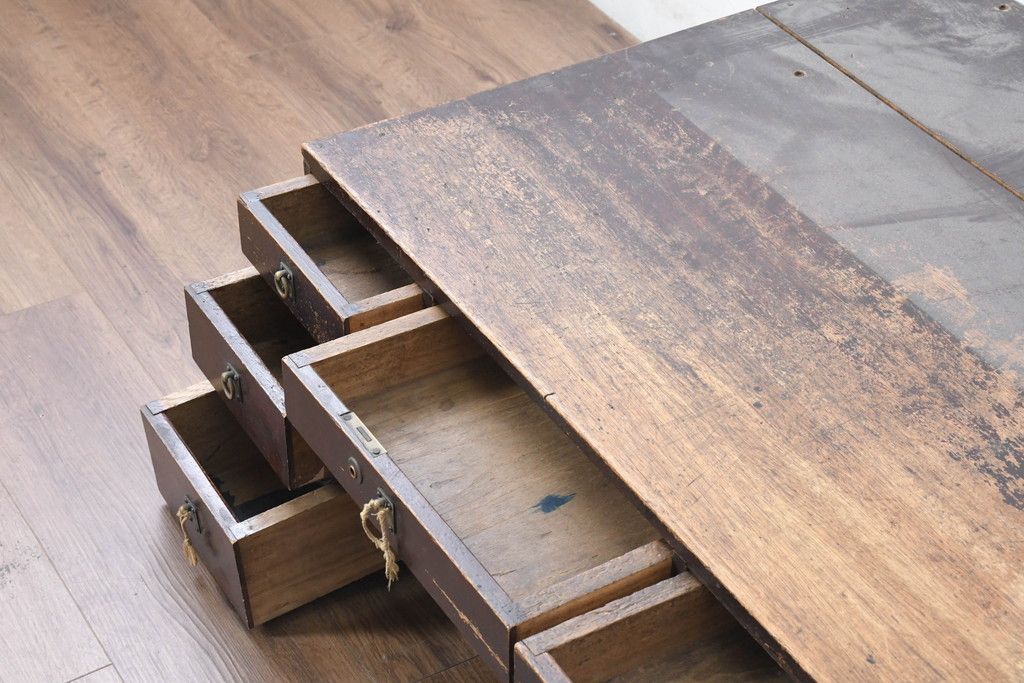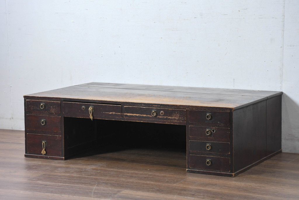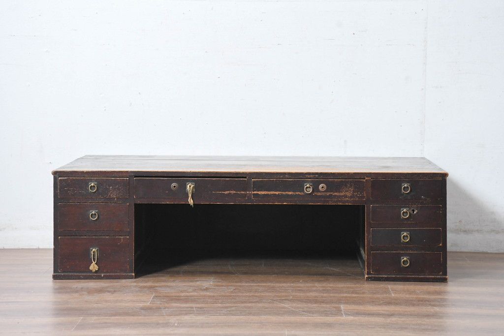 和製アンティーク 大振り 丸カン引手がいいね!使い込まれた風合いが味わい深い両袖机(文机、座卓、座机、ローテーブル、作業台、ワークデスク、在宅ワーク、在宅用)(R-084282)です。
