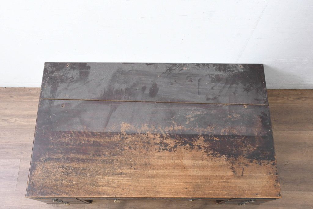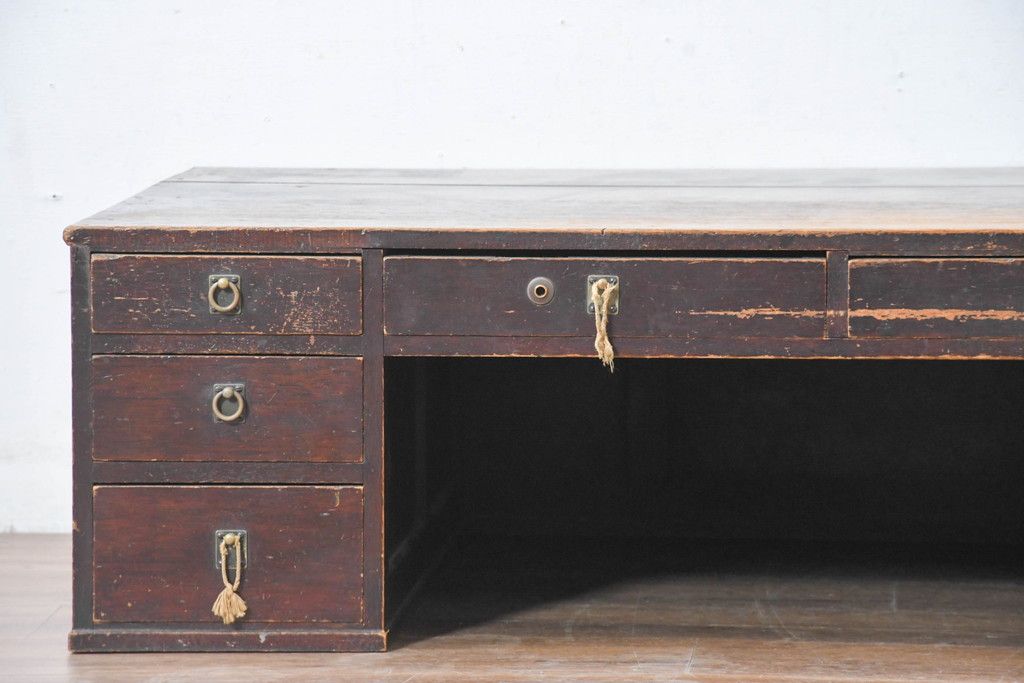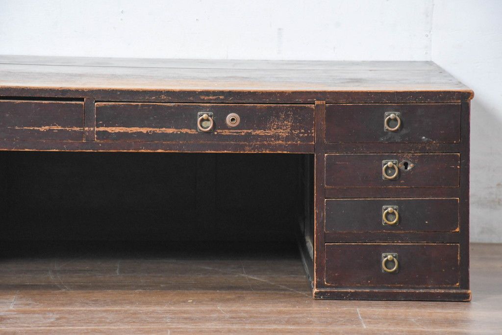デスク> ワークデスク > 和製アンティーク 大振り 丸カン引手がいいね!使い込まれた風合いが味わい深い両袖机(文机、座卓、座机、ローテーブル、作業台、ワークデスク、在宅ワーク、在宅用)(R-084282)