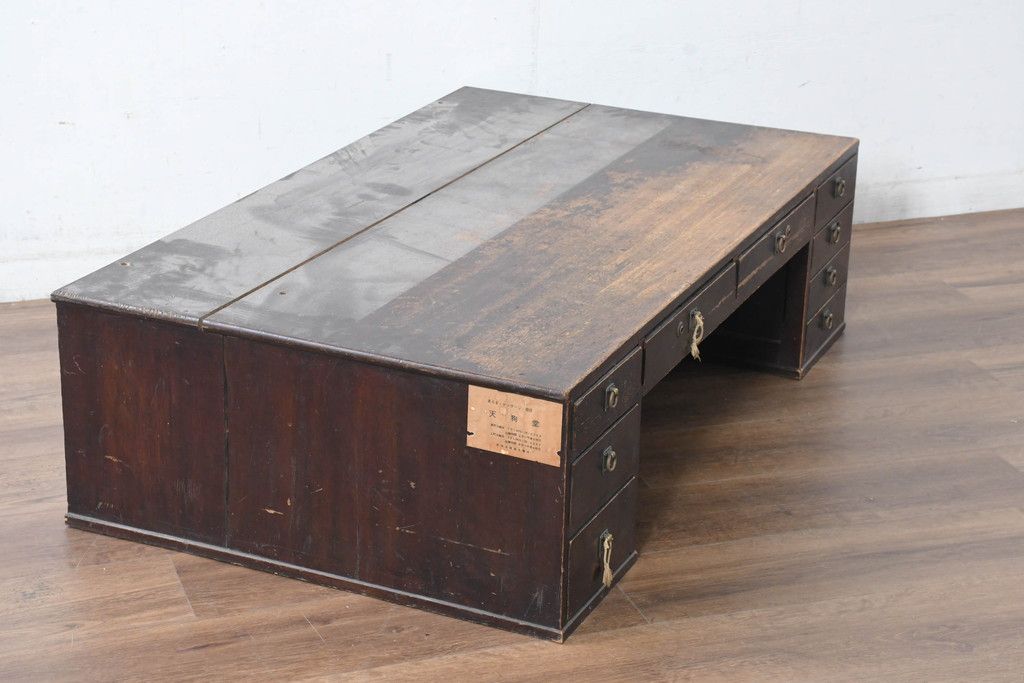 和製アンティーク 大振り 丸カン引手がいいね!使い込まれた風合いが味わい深い両袖机(文机、座卓、座机、ローテーブル、作業台、ワークデスク、在宅ワーク、在宅用)(R-084282)
