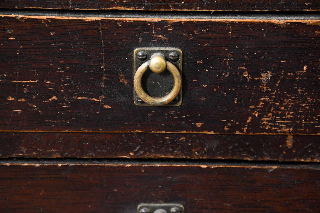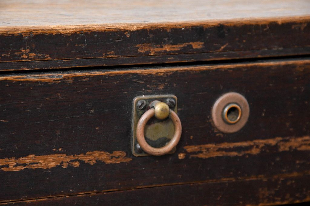 デスク> 片袖机・両袖机 > 和製アンティーク 大振り 丸カン引手がいいね!使い込まれた風合いが味わい深い両袖机(文机、座卓、座机、ローテーブル、作業台、ワークデスク、在宅ワーク、在宅用)(R-084282)