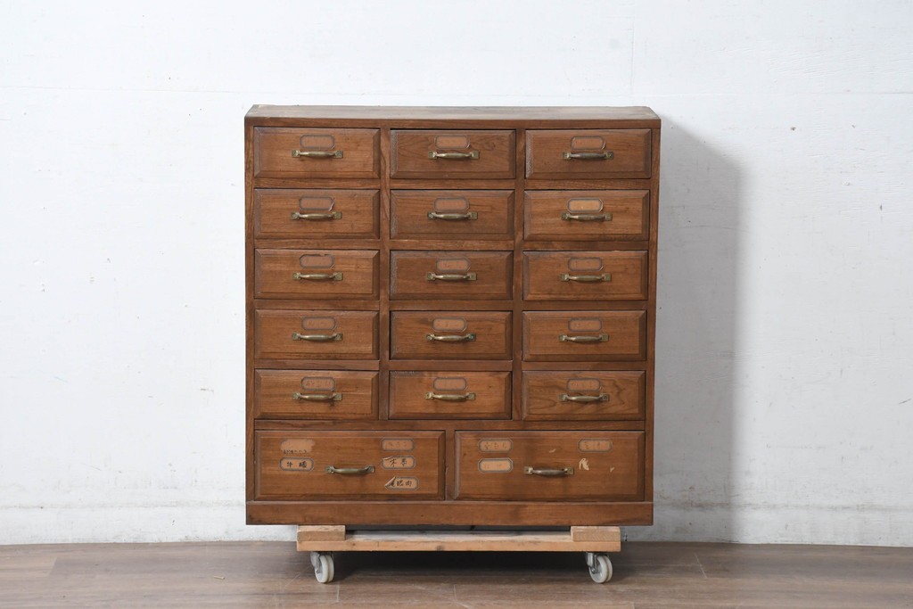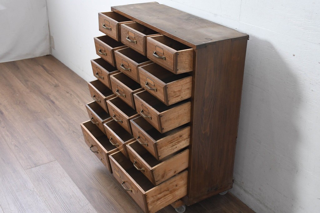 【簡易リペア限定品】 和製アンティーク 引き出し17杯で大容量の小振りなチェスト (R-084288)
