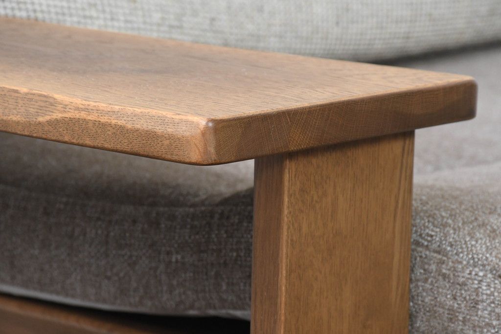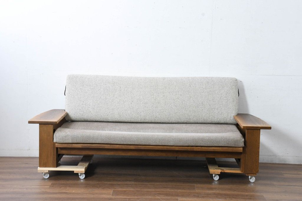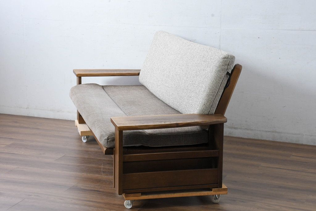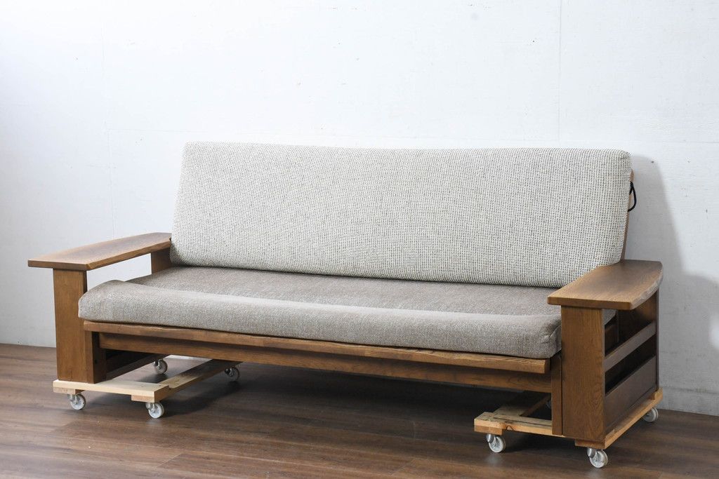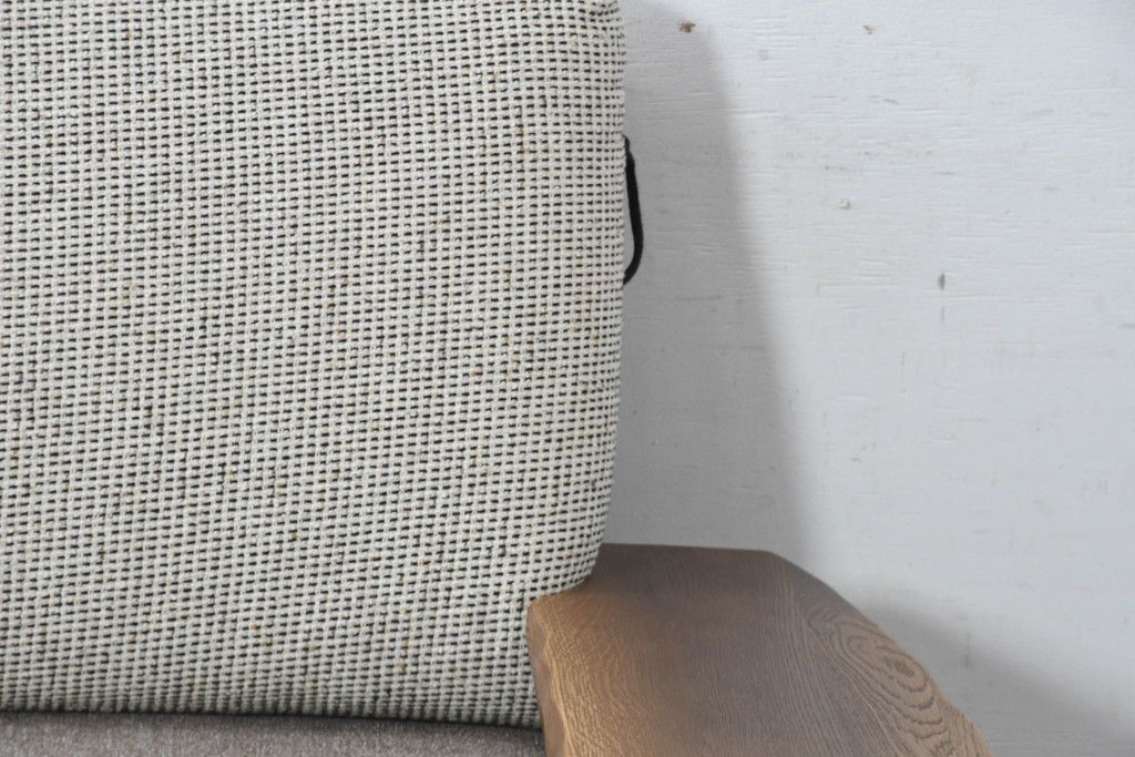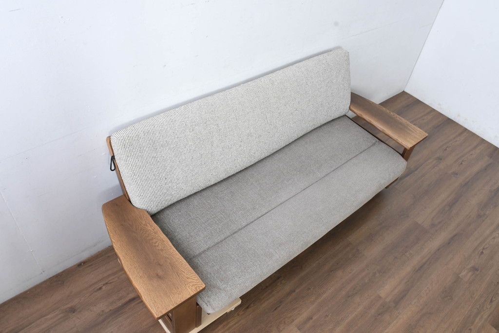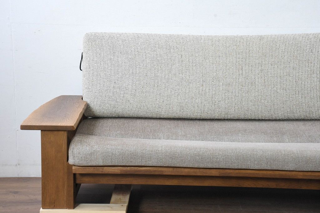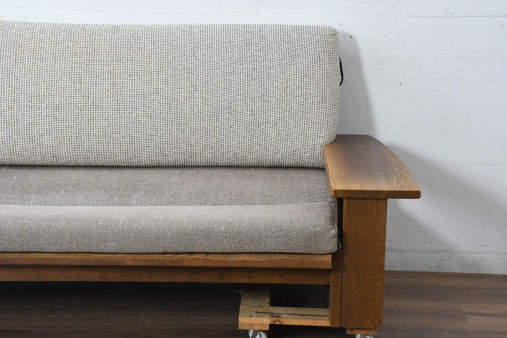 中古 希少な廃番品!! ナラ材の浮造り仕上げ!イバタインテリアのマガジンラックが付いた3人掛けソファ(三人掛け、アームソファ)(定価約27万円)(R-084295)です。