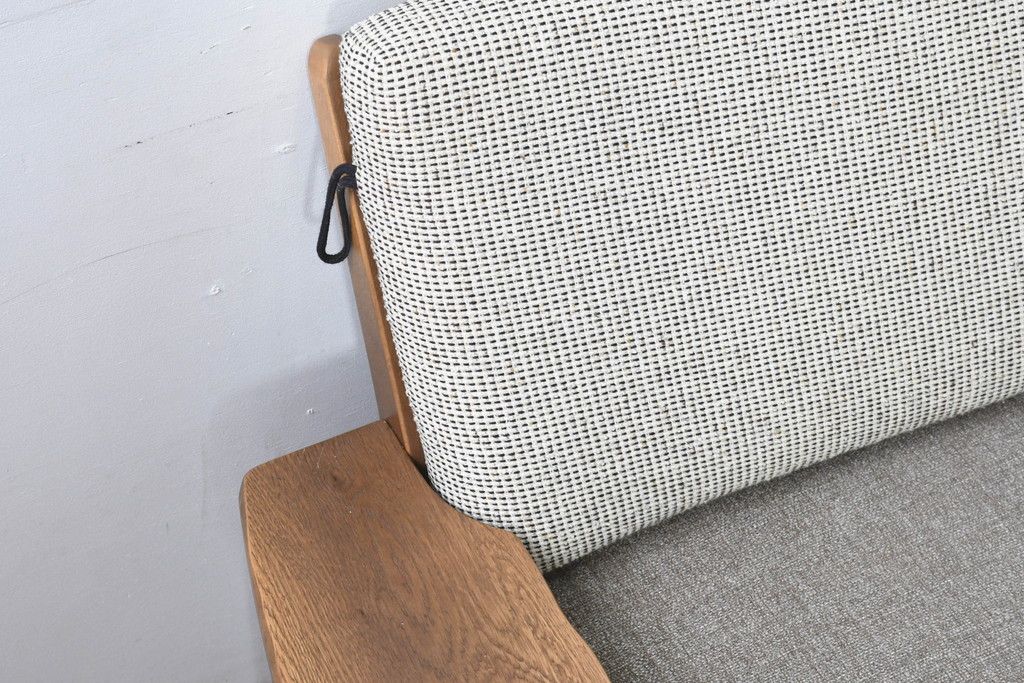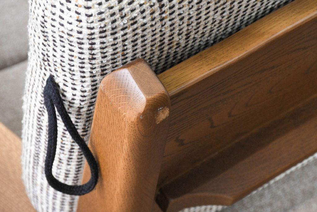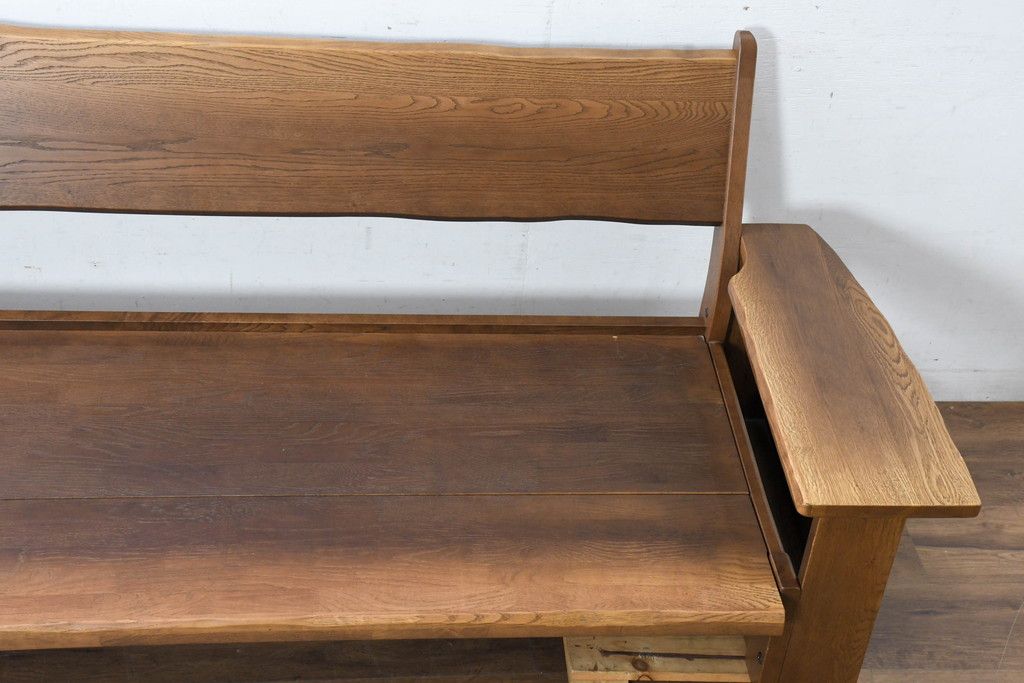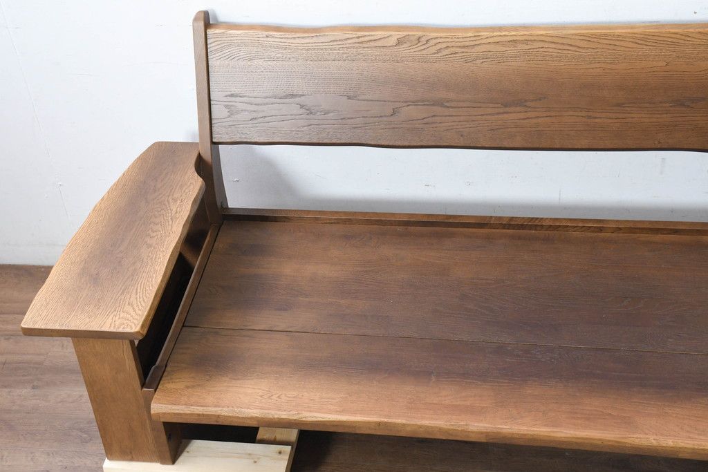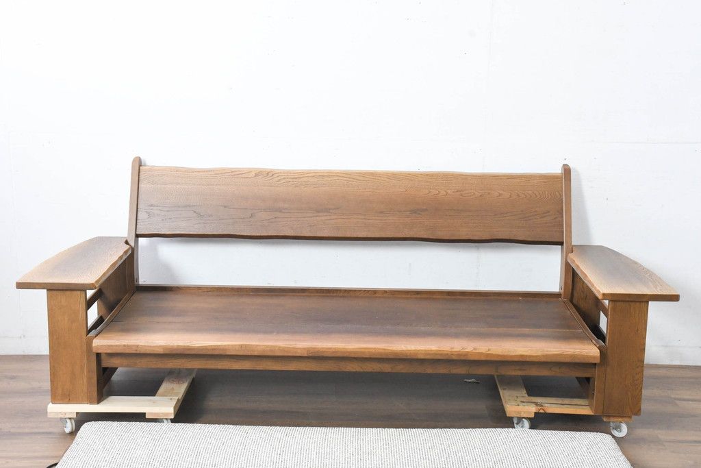 中古 希少な廃番品!! ナラ材の浮造り仕上げ!イバタインテリアのマガジンラックが付いた3人掛けソファ(三人掛け、アームソファ)(定価約27万円)(R-084295)