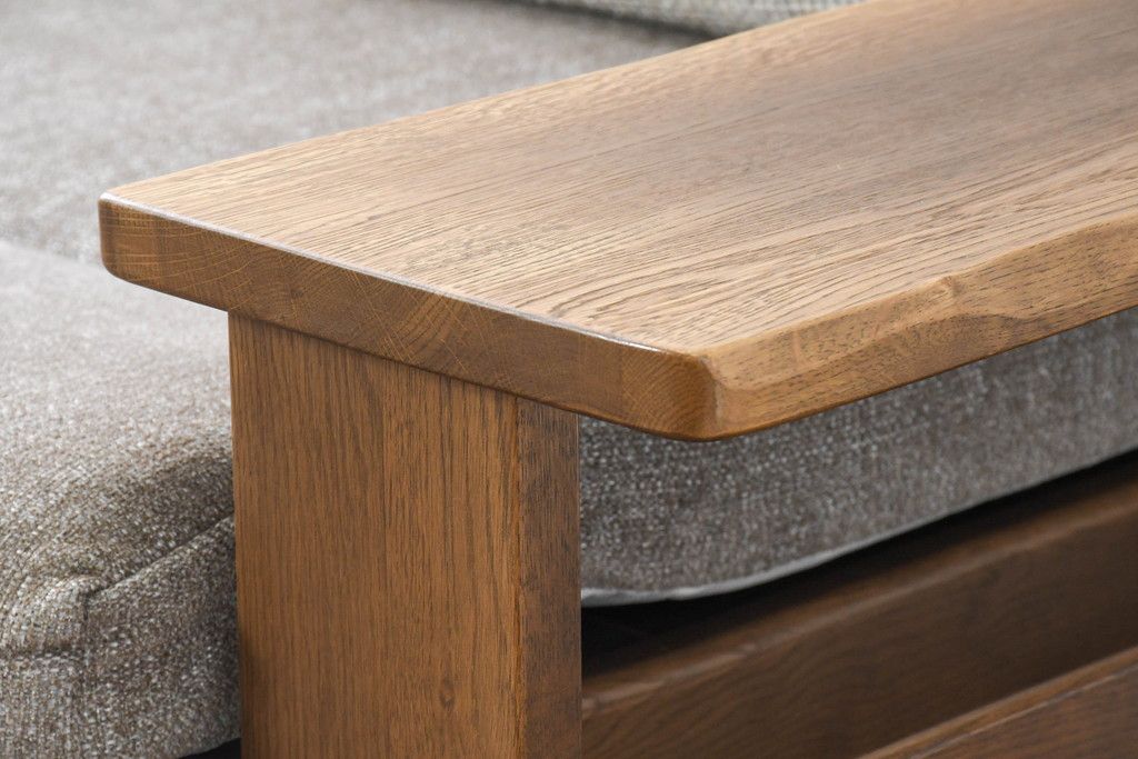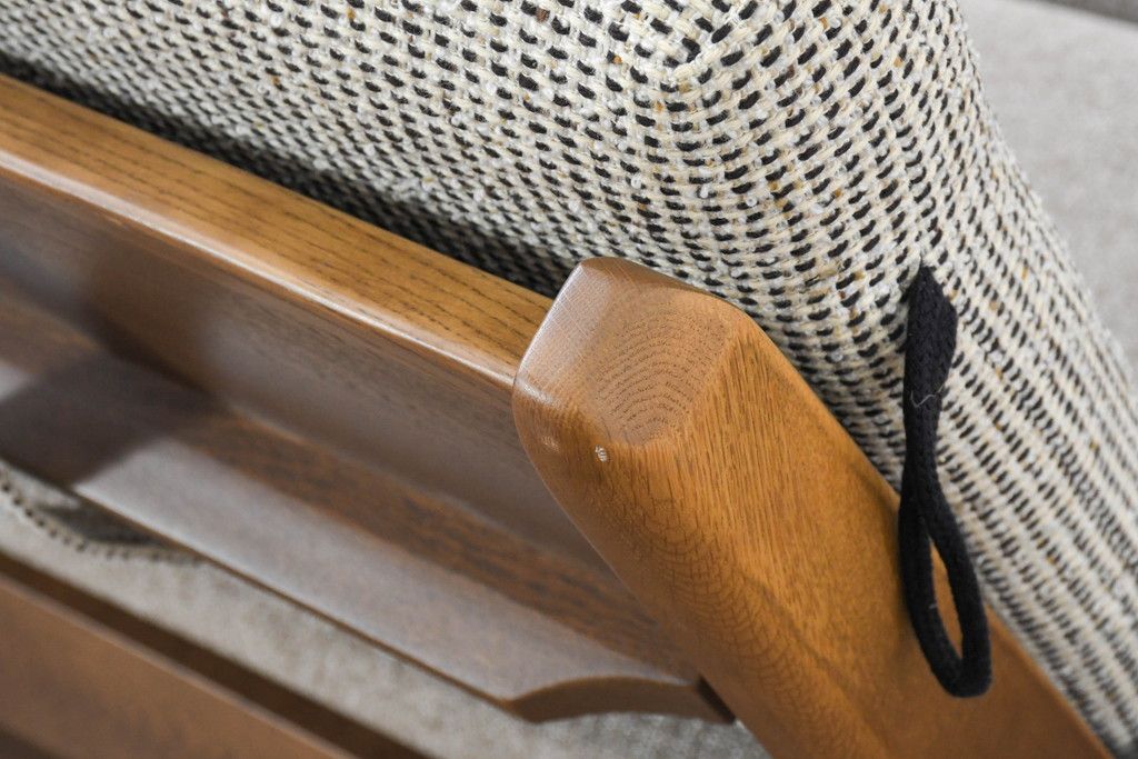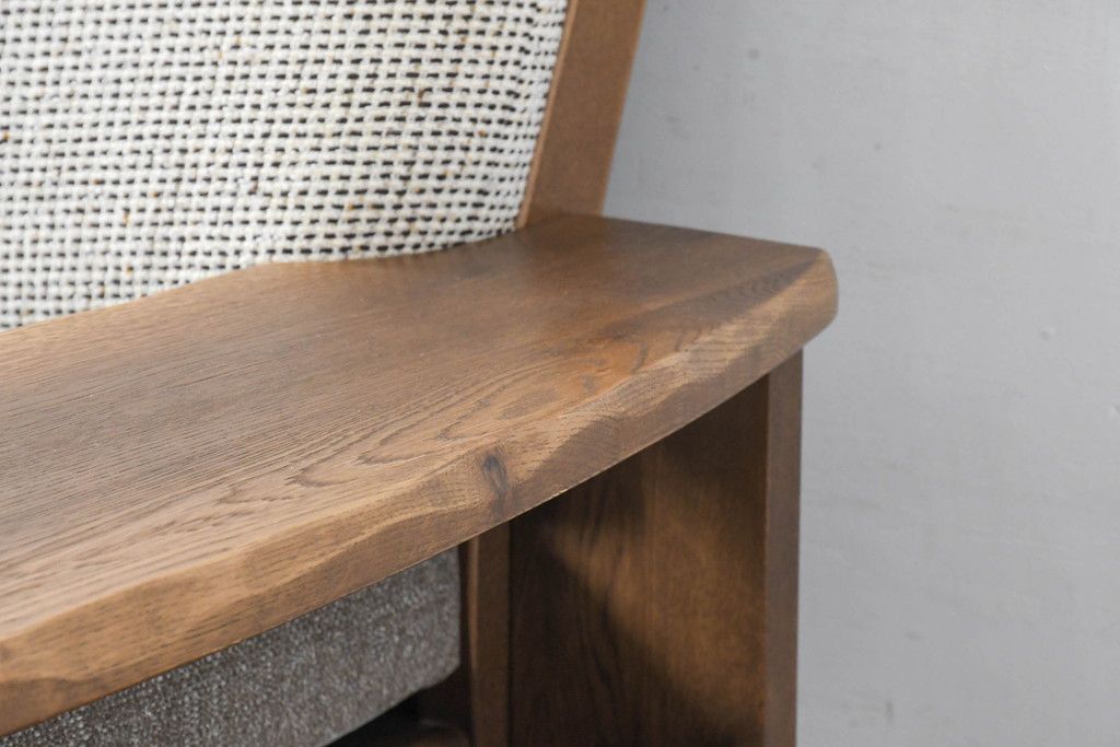 ソファ> 3人掛けソファ > 中古 希少な廃番品!! ナラ材の浮造り仕上げ!イバタインテリアのマガジンラックが付いた3人掛けソファ(三人掛け、アームソファ)(定価約27万円)(R-084295)