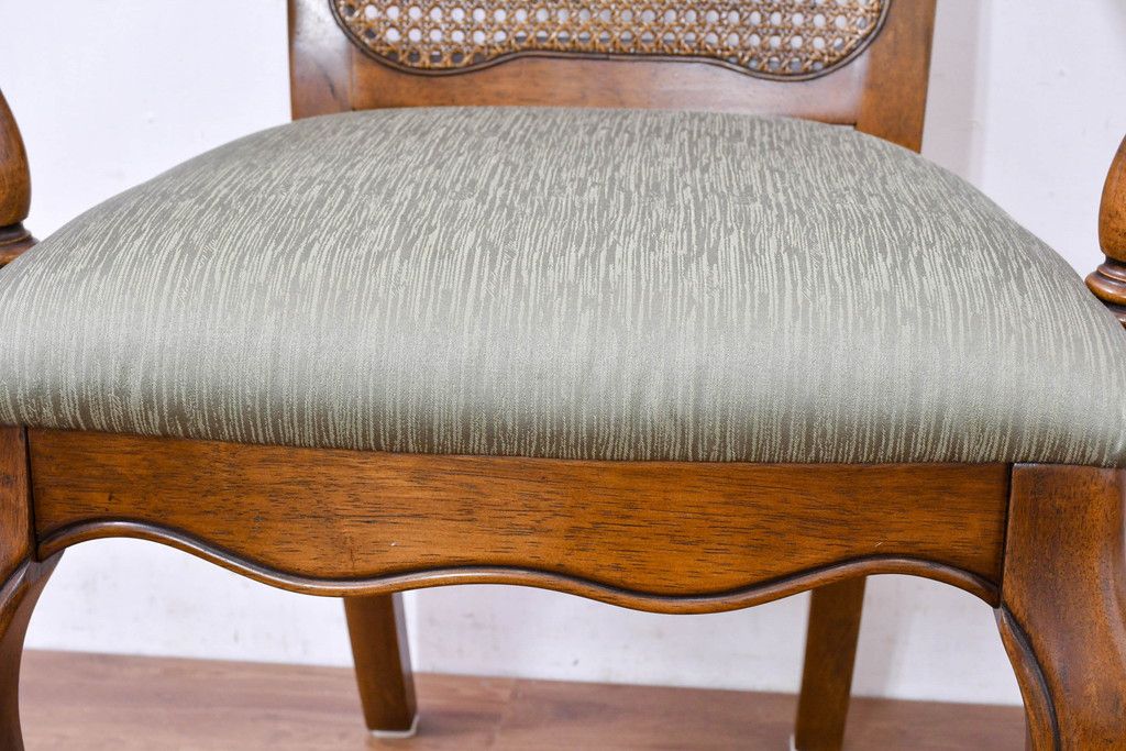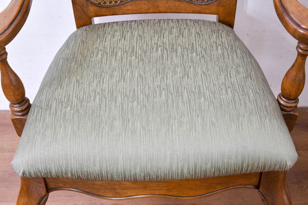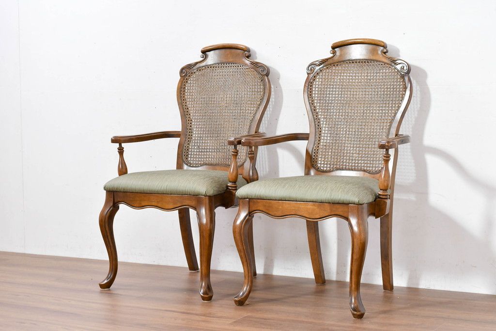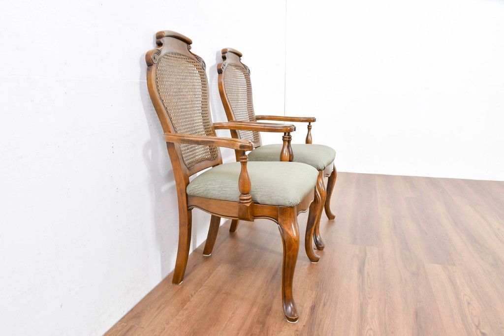 椅子・ベンチ> アームチェア > 中古 アメリカ 落ち着いた色合いとクラシカルな装飾が調和した高級感あふれるアームチェア2脚セット(ダイニングチェア、椅子、イス、バラ売り可能)(R-084299)