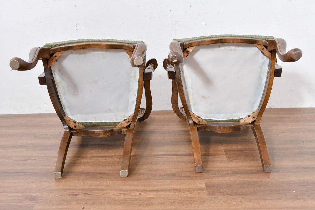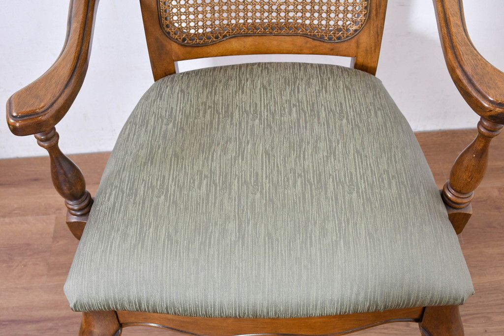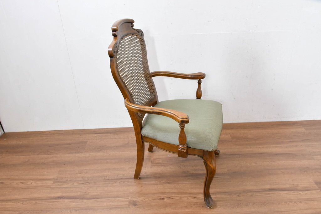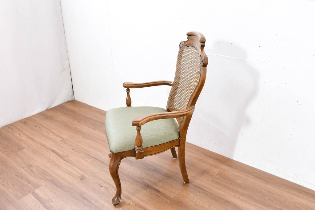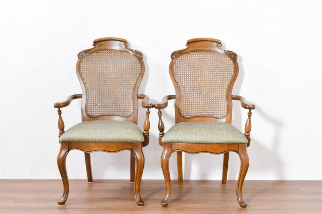 椅子・ベンチ> アームチェア > 中古 アメリカ 落ち着いた色合いとクラシカルな装飾が調和した高級感あふれるアームチェア2脚セット(ダイニングチェア、椅子、イス、バラ売り可能)(R-084299)