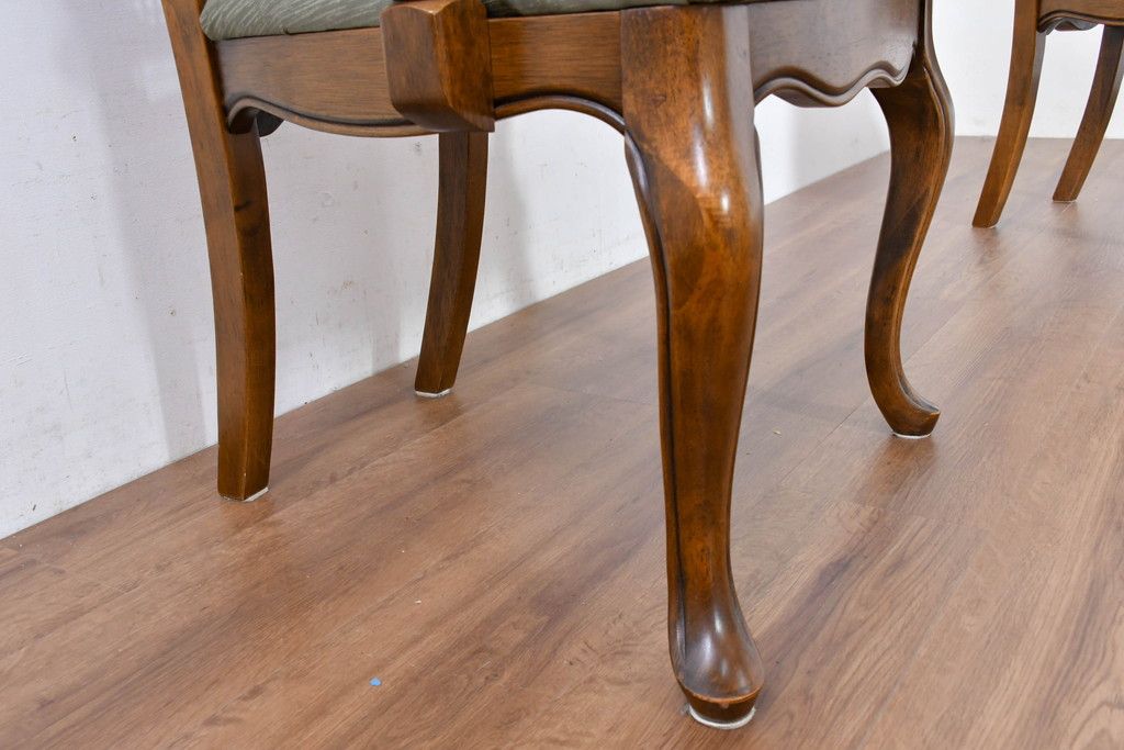 椅子・ベンチ> ダイニングチェア > 中古 アメリカ 落ち着いた色合いとクラシカルな装飾が調和した高級感あふれるアームチェア2脚セット(ダイニングチェア、椅子、イス、バラ売り可能)(R-084299)