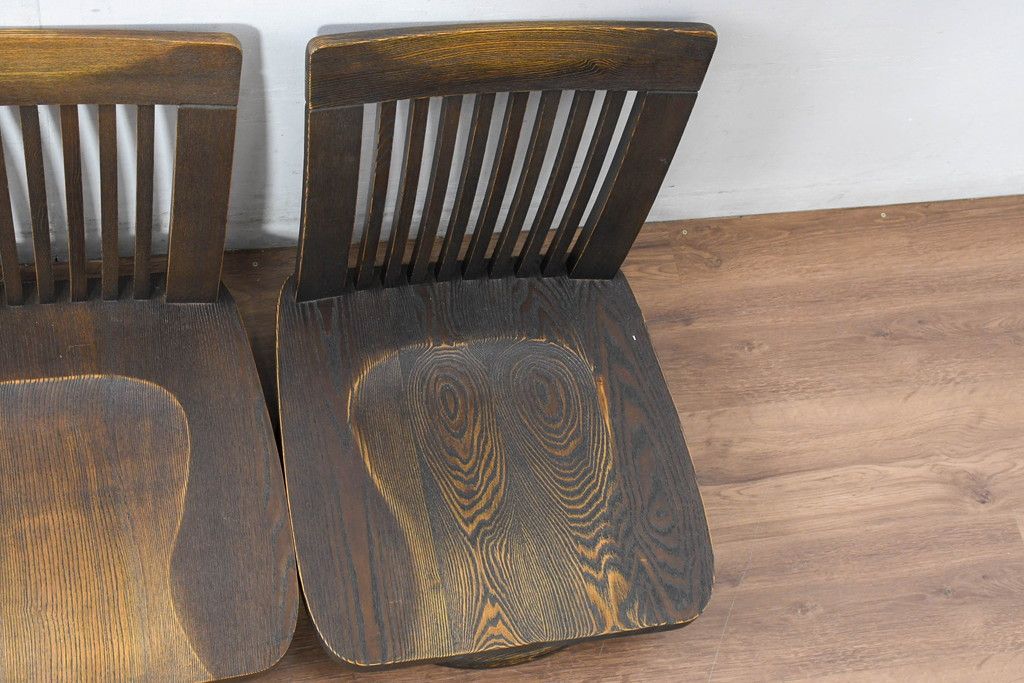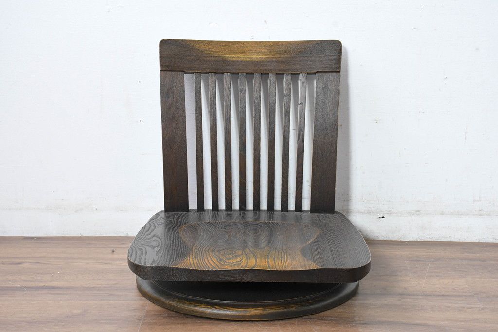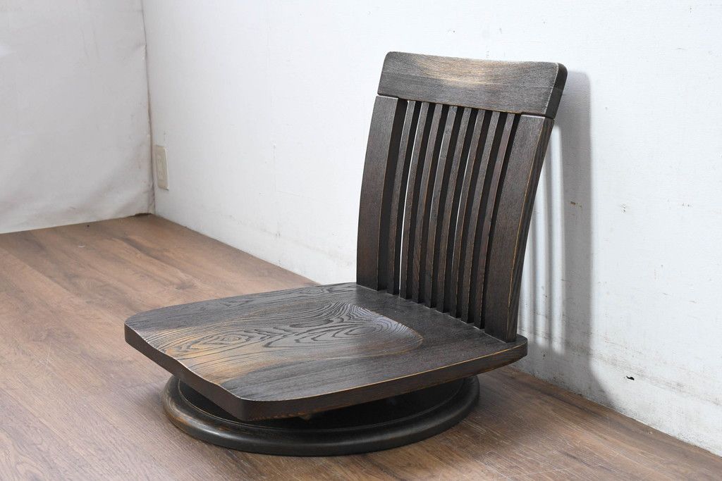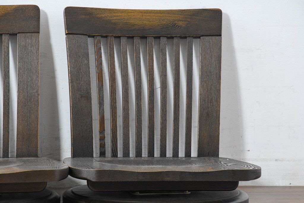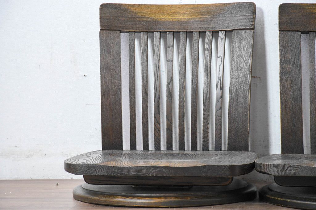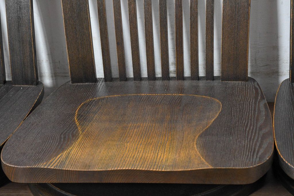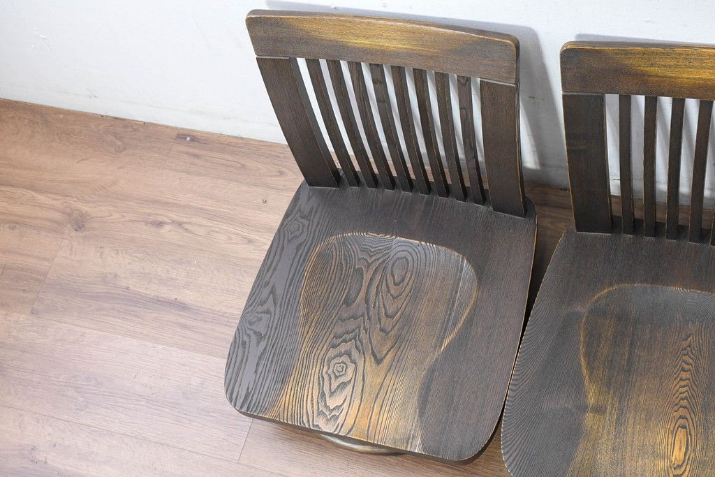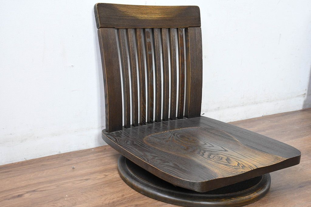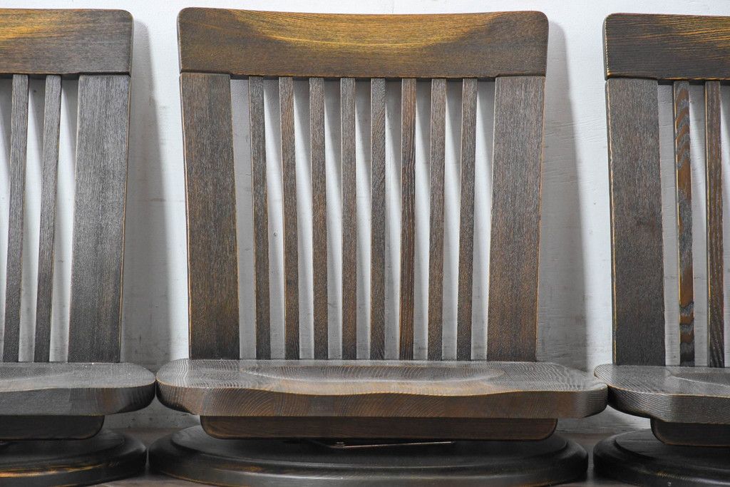 ラフジュ工房> 椅子・ベンチ> 座椅子 > 中古 希少な廃番品!! 葉山ガーデン取り扱い 国産 職人手作り品 タモ材 アンティーク調の回転座椅子4台セット(回転チェア、囲炉裏チェア、イス、椅子、バラ売り可能)(R-084300)
