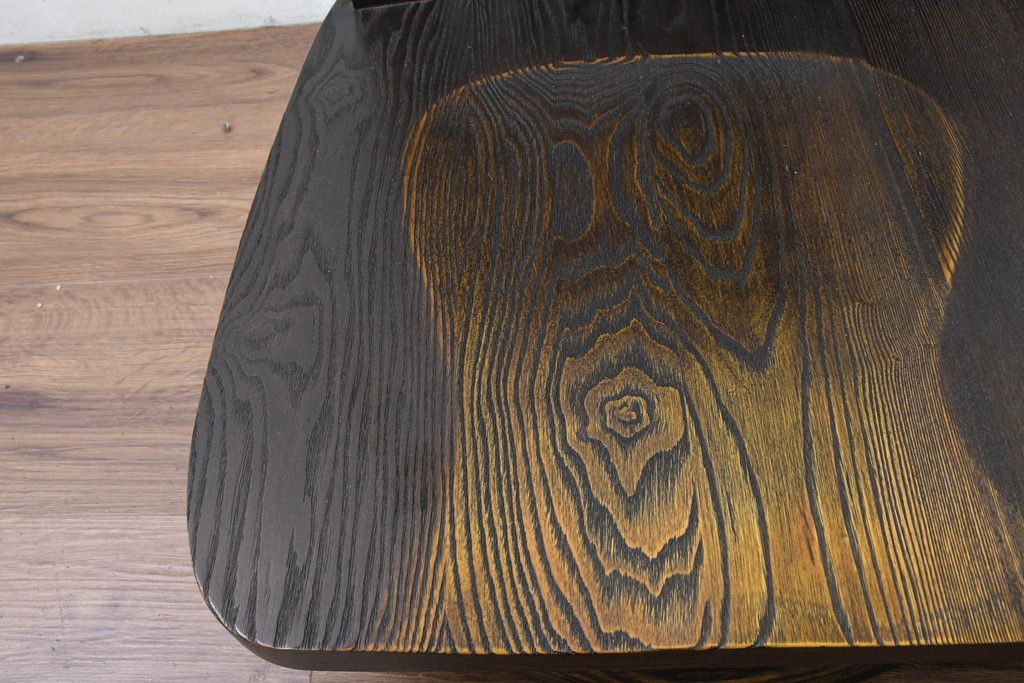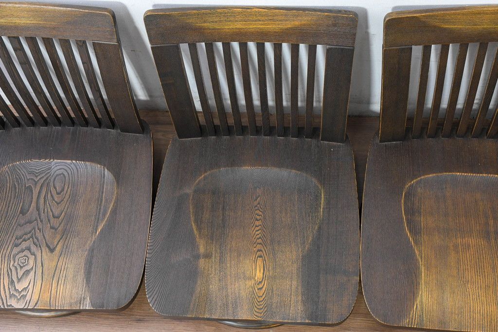 中古 希少な廃番品!! 葉山ガーデン取り扱い 国産 職人手作り品 タモ材 アンティーク調の回転座椅子4台セット(回転チェア、囲炉裏チェア、イス、椅子、バラ売り可能)(R-084300)