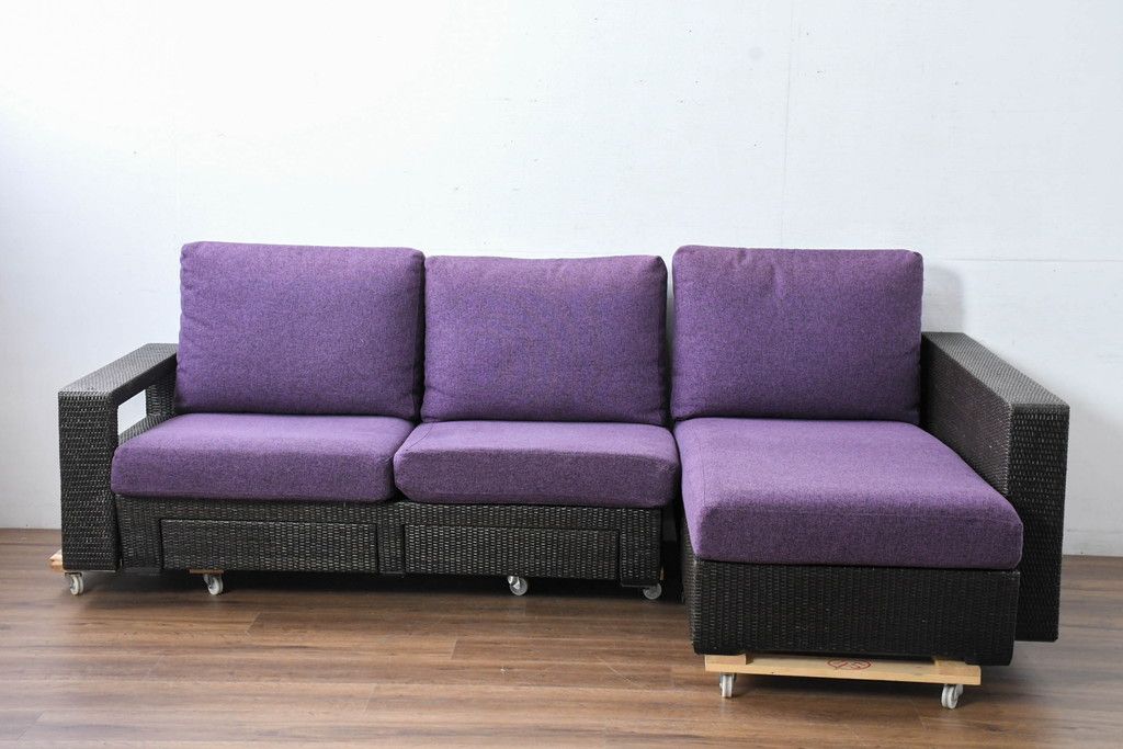 中古 美品 展示品 名門藤家具 カザマ(Kazama) Ventura New Frag(ベンチュラニューフラーグ) ラタン 大人の空間を演出する引き出し付き3人掛けソファ(三人掛け、システムソファ、カウチソファ、コーナーソファ、)(定価約53万円)(R-084301)です。