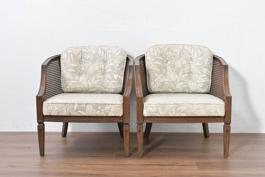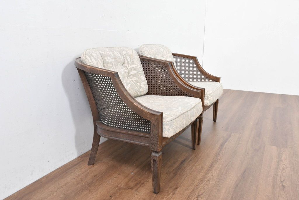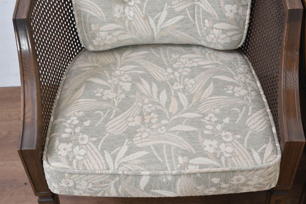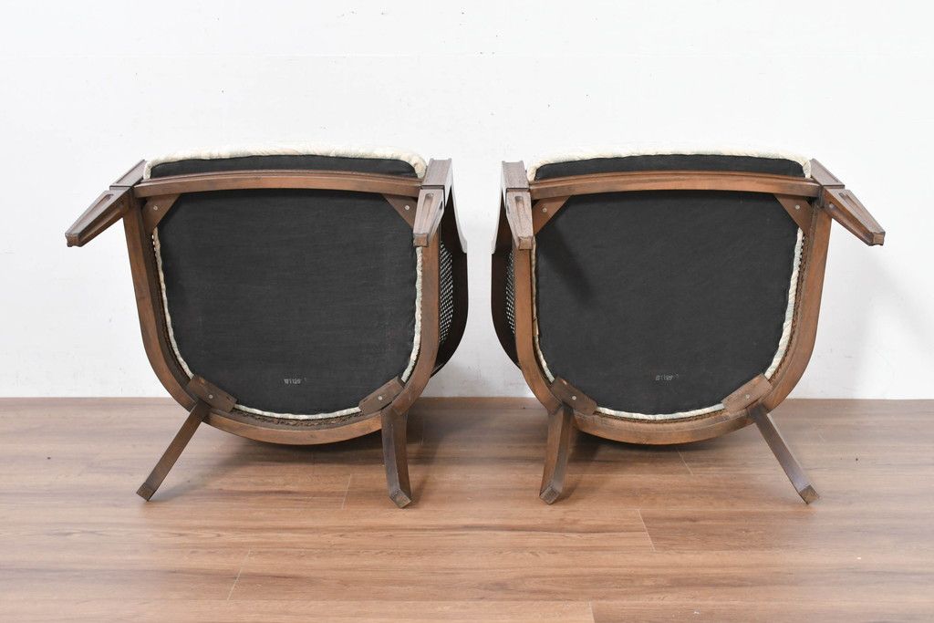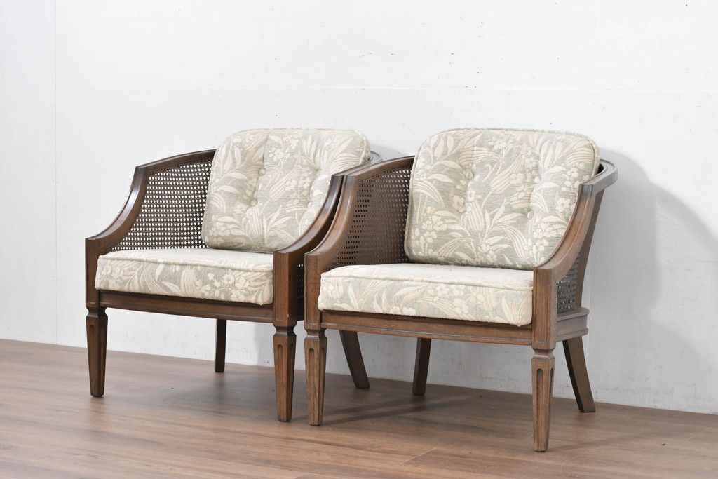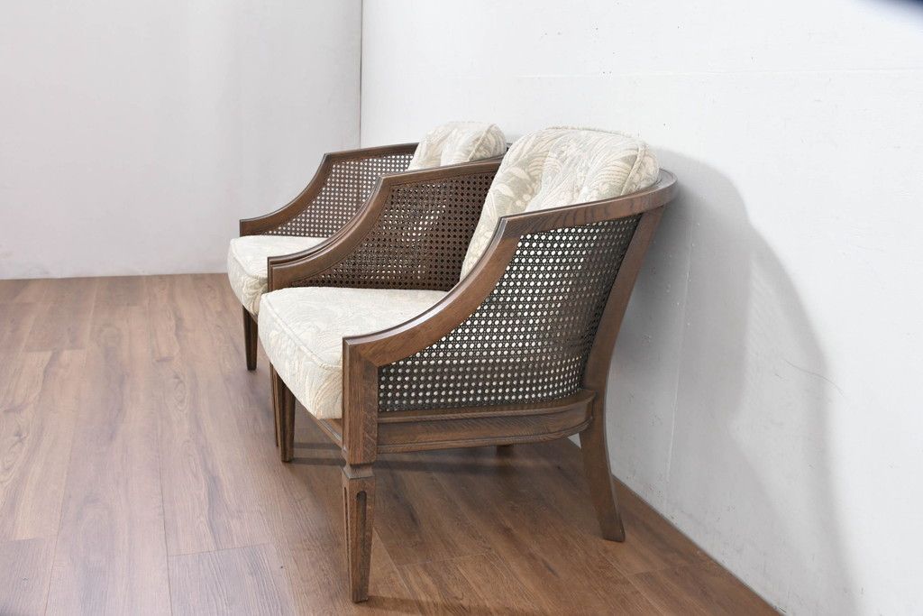 中古 展示品 美品 カリモク家具(karimoku) domani(ドマーニ) QUEENS LIFE(クイーンズライフ) 優雅なフォルムと柔らかな色合いでどんな空間にも馴染む!クラシカルな1人掛けソファ2脚セット(1Pソファ、一人掛けソファ、バラ売り可能)(定価2脚で約36万円)(R-084303)