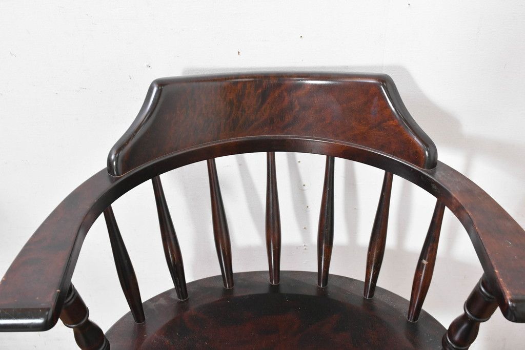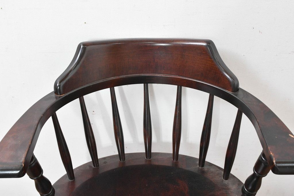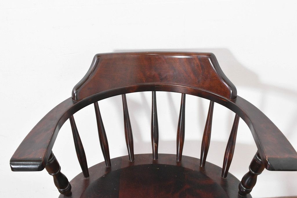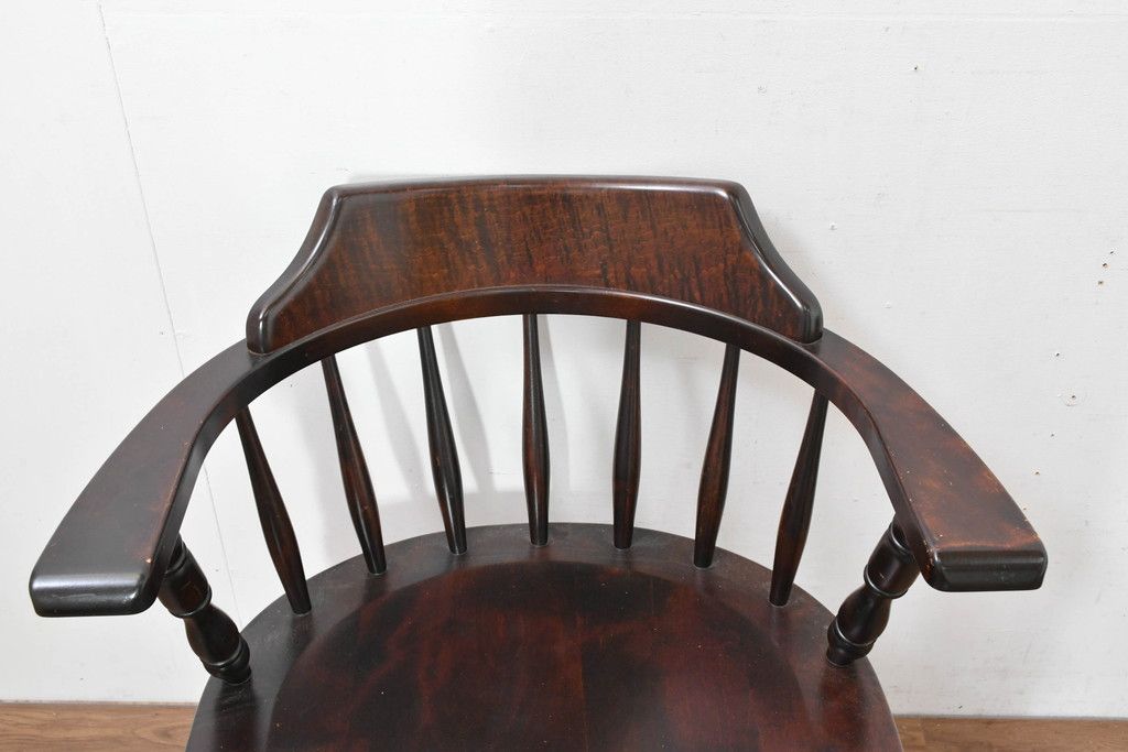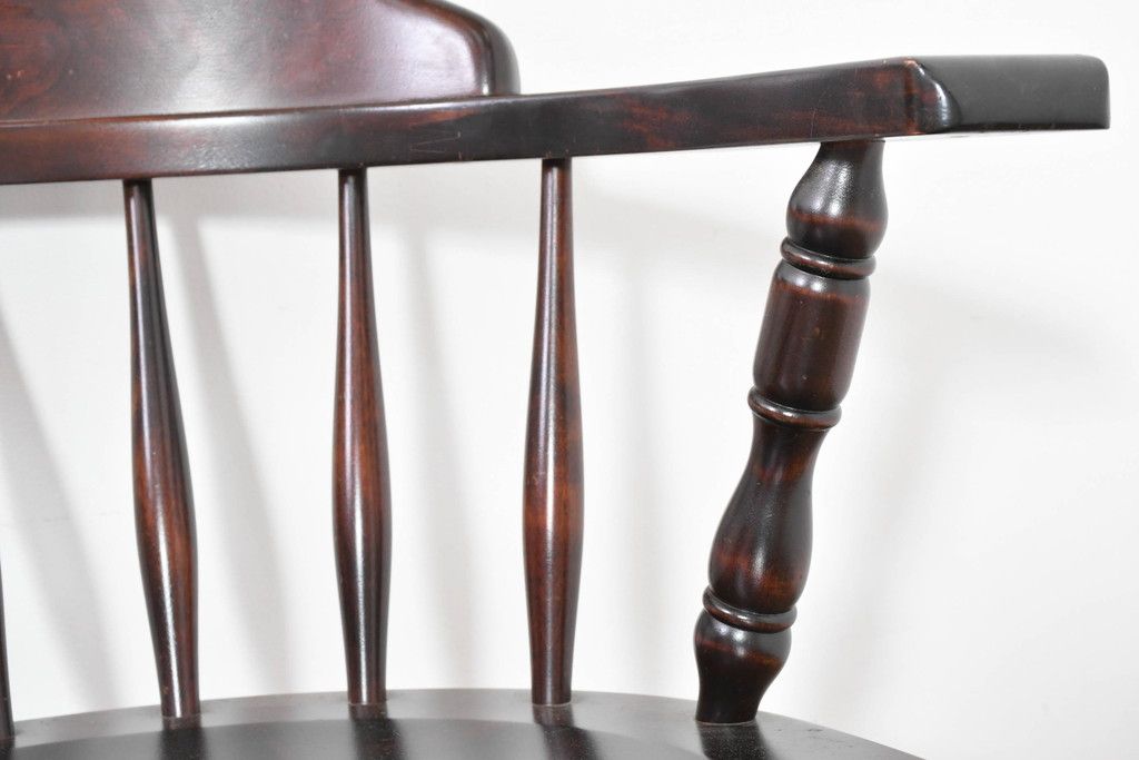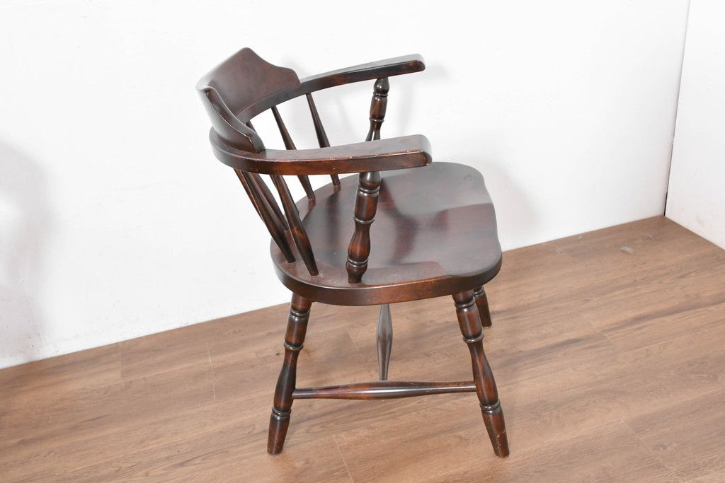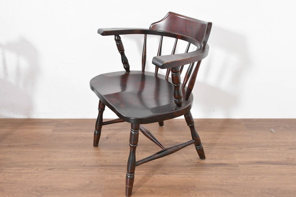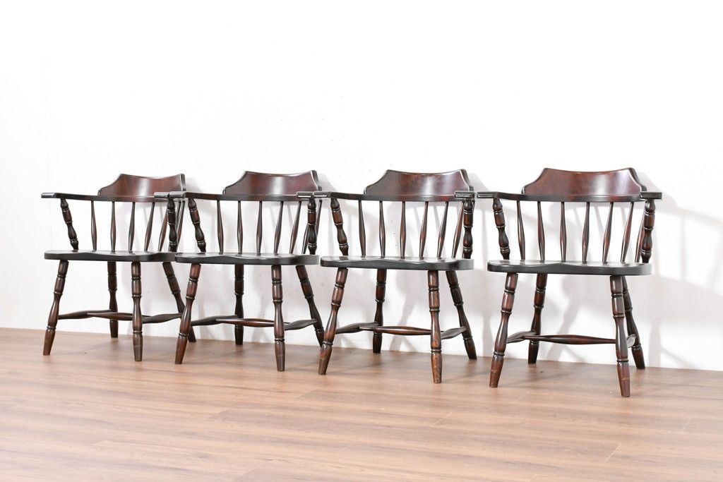 中古 北海道民芸家具 希少な廃番品 HM630 格好良い佇まいが魅力のキャプテンチェア4脚セット(肘掛け椅子、アームチェア、イス、板座チェア、ダイニングチェア、バラ売り可能)(R-084306)です。